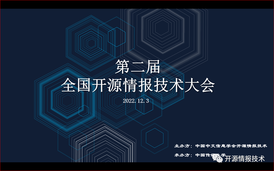 由中国中文信息学会开源情报技术专业委员会(筹)主办、中国传媒大学承办的第二届全国开源情报技术大会于2022年12月3日线上举办。