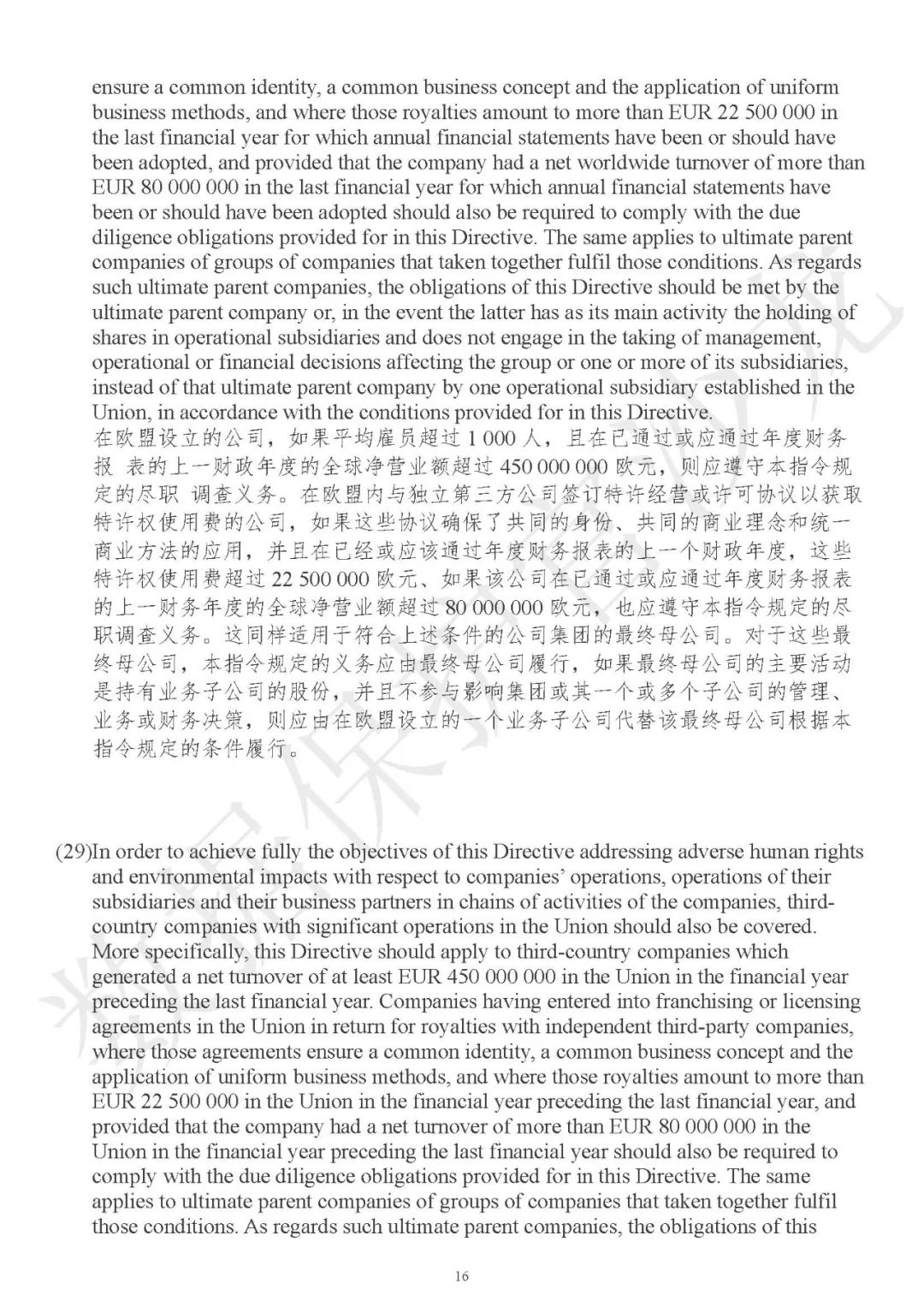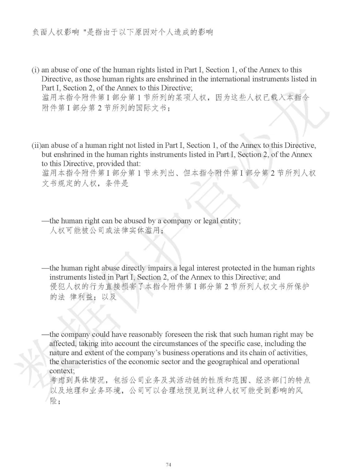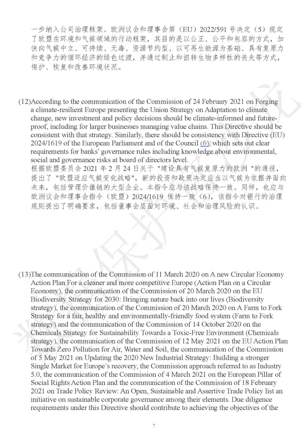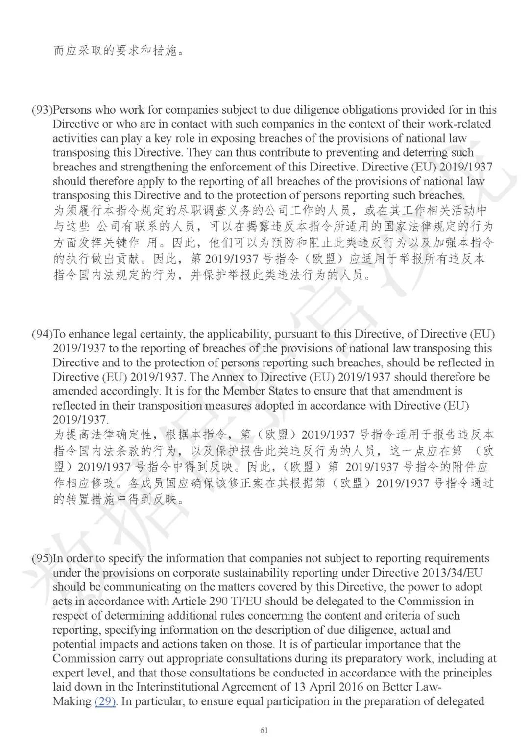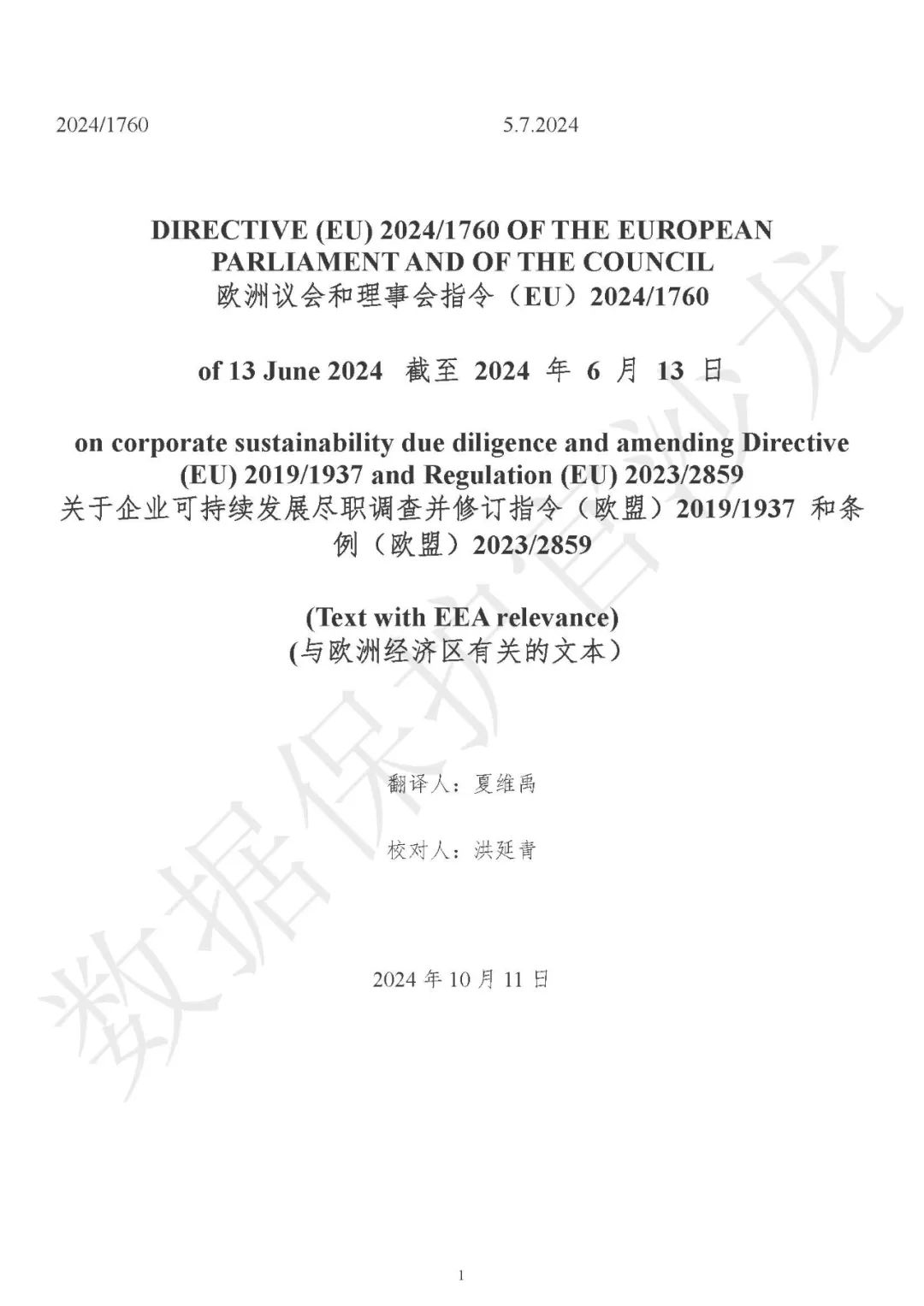 今天和大家分享的是欧盟《企业可持续发展尽职调查指令》生效版本的全文翻译。