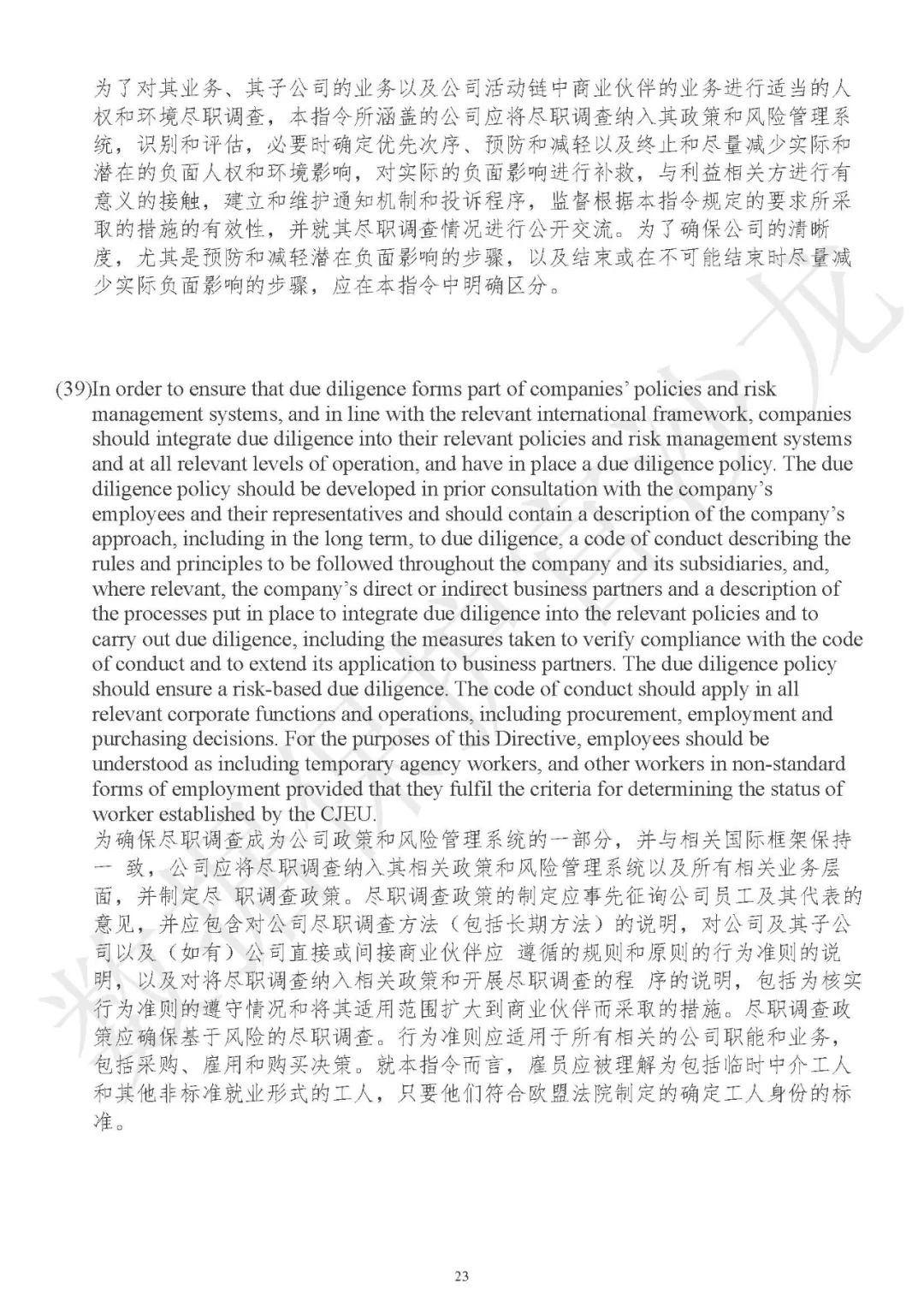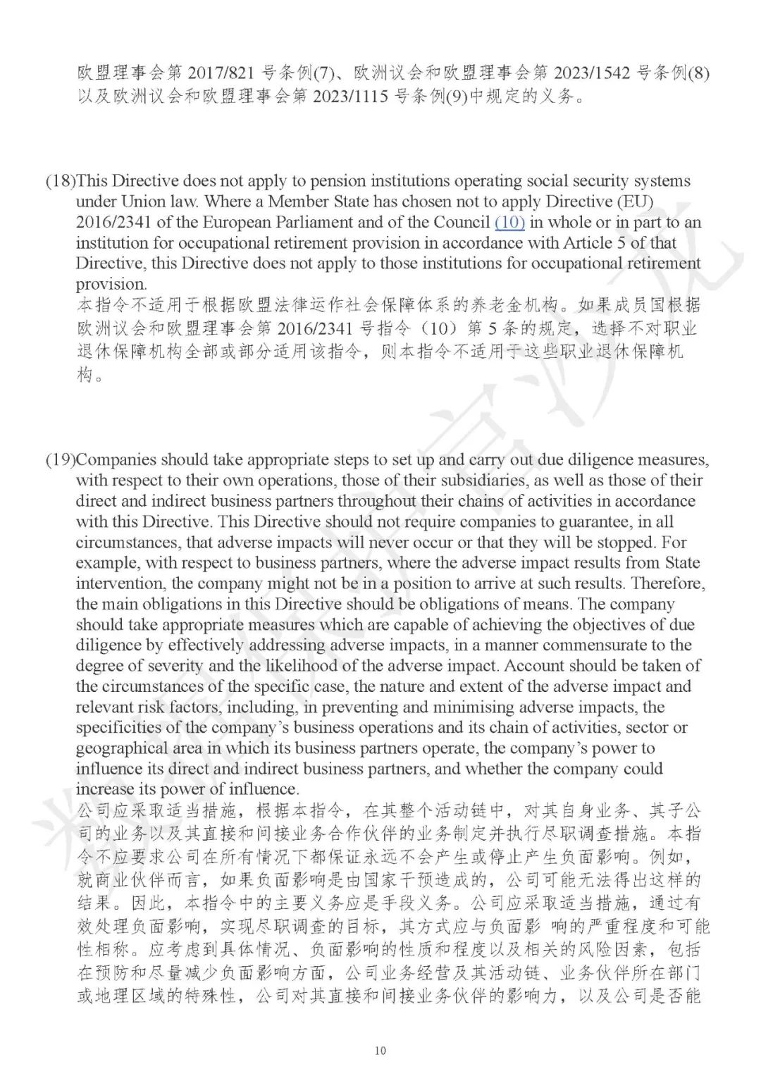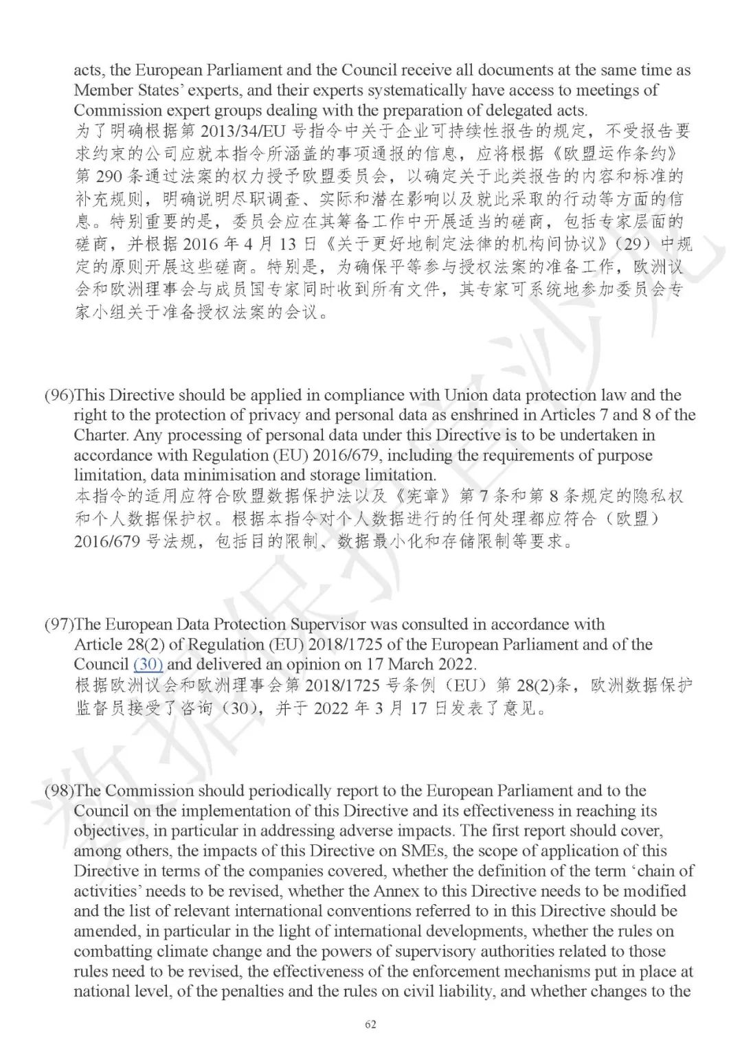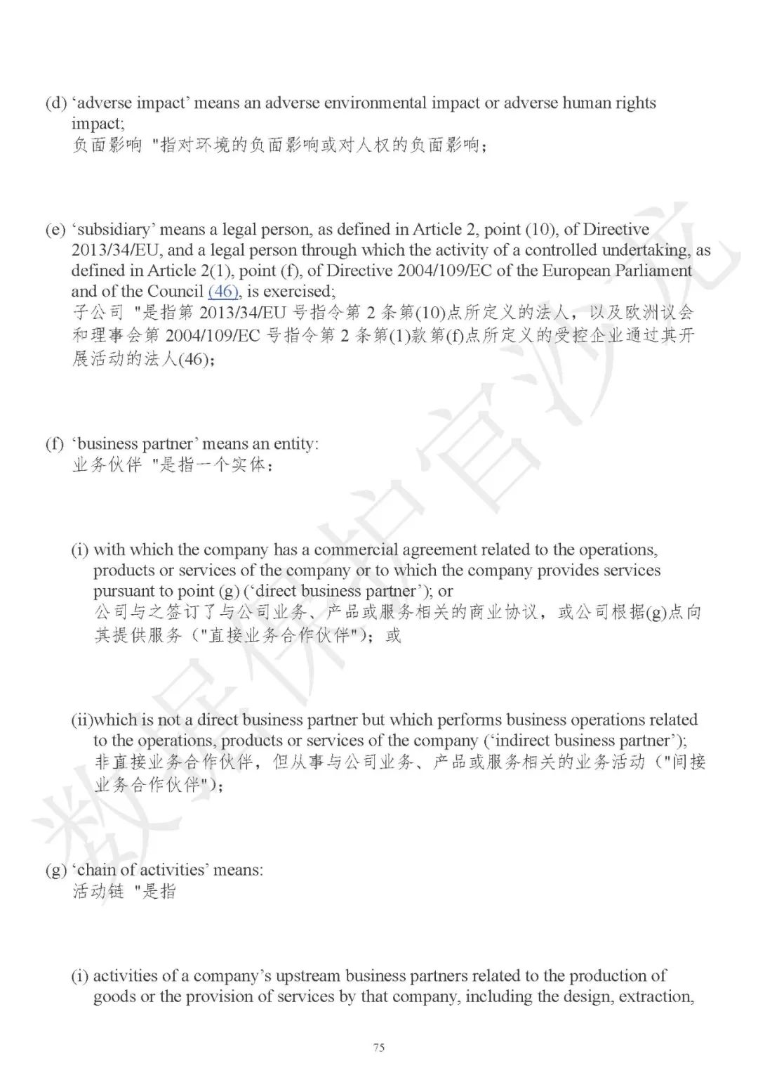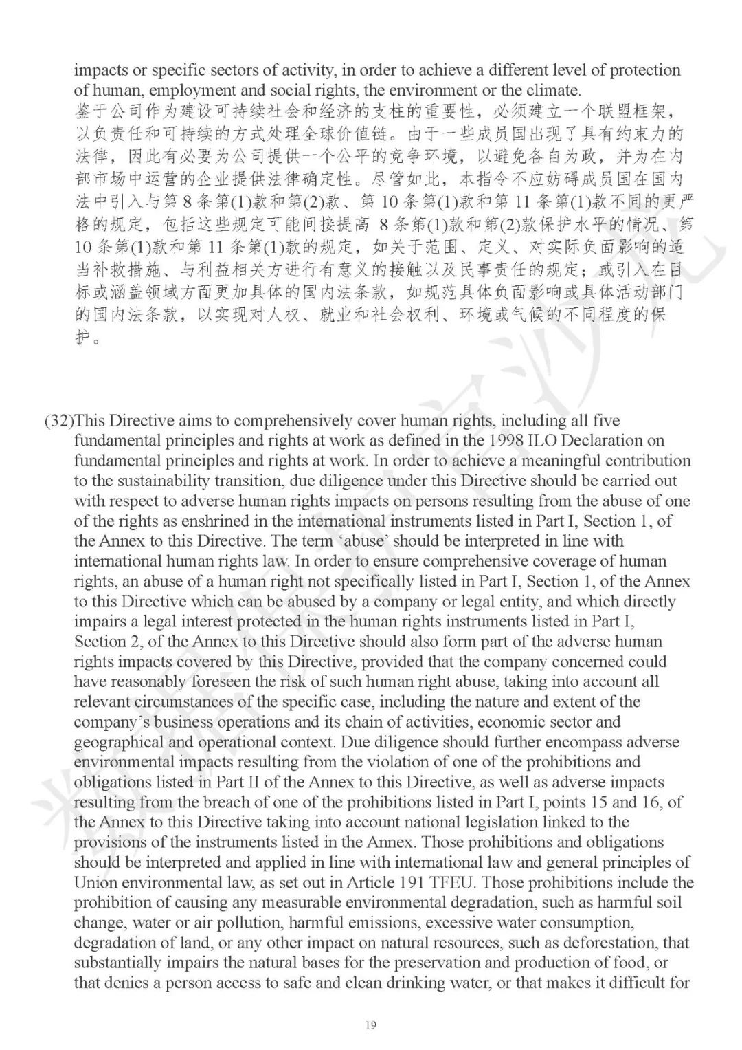 今天和大家分享的是欧盟《企业可持续发展尽职调查指令》生效版本的全文翻译。