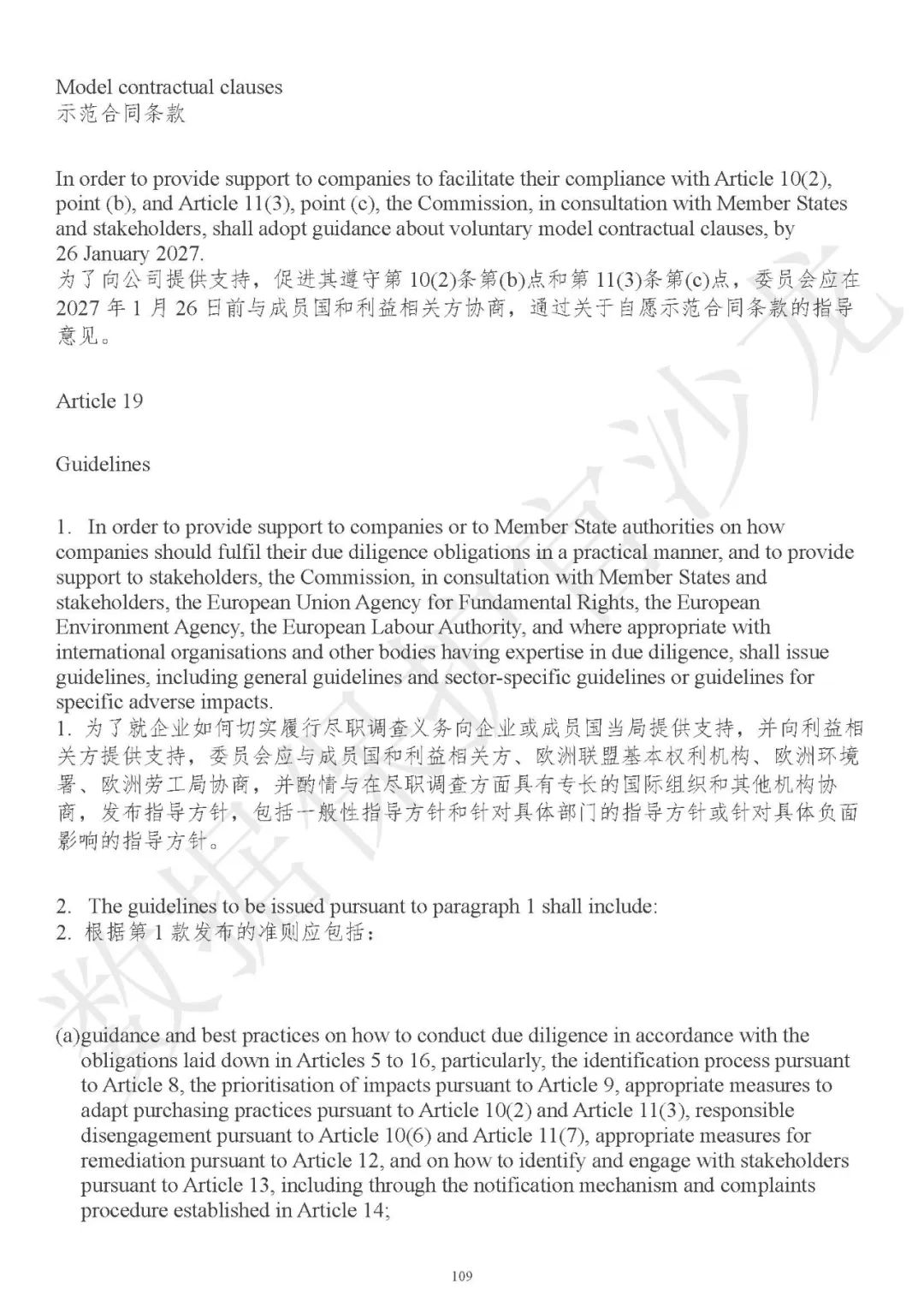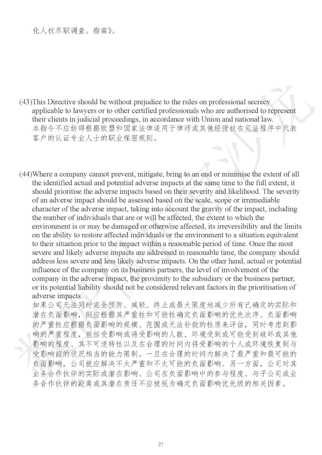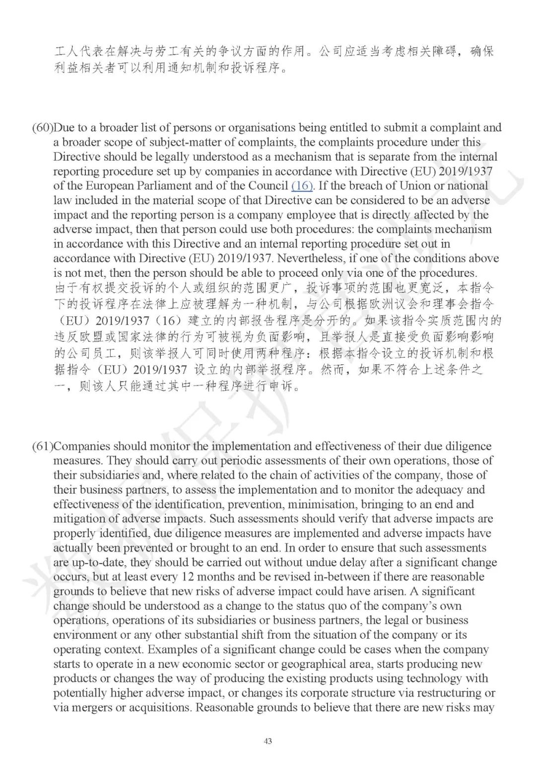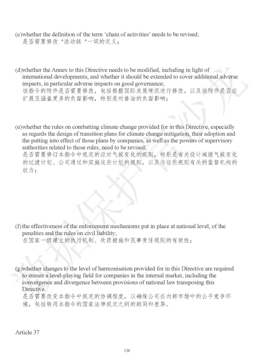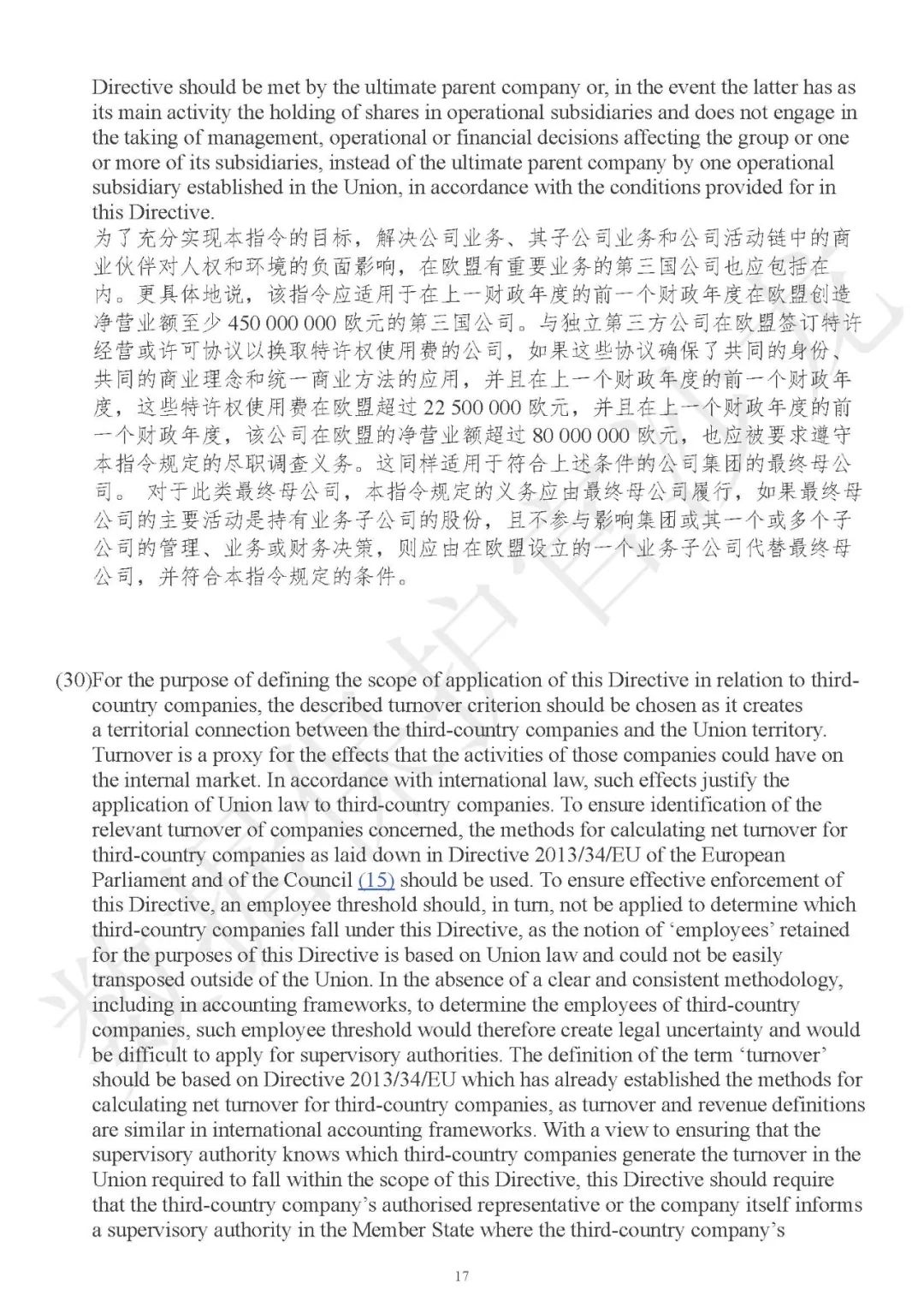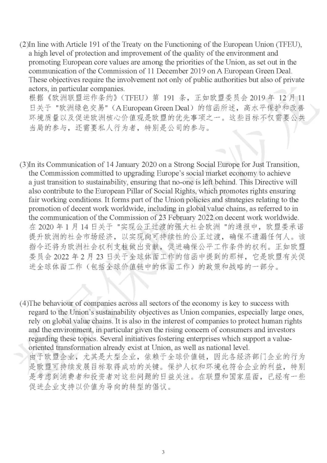 今天和大家分享的是欧盟《企业可持续发展尽职调查指令》生效版本的全文翻译。
