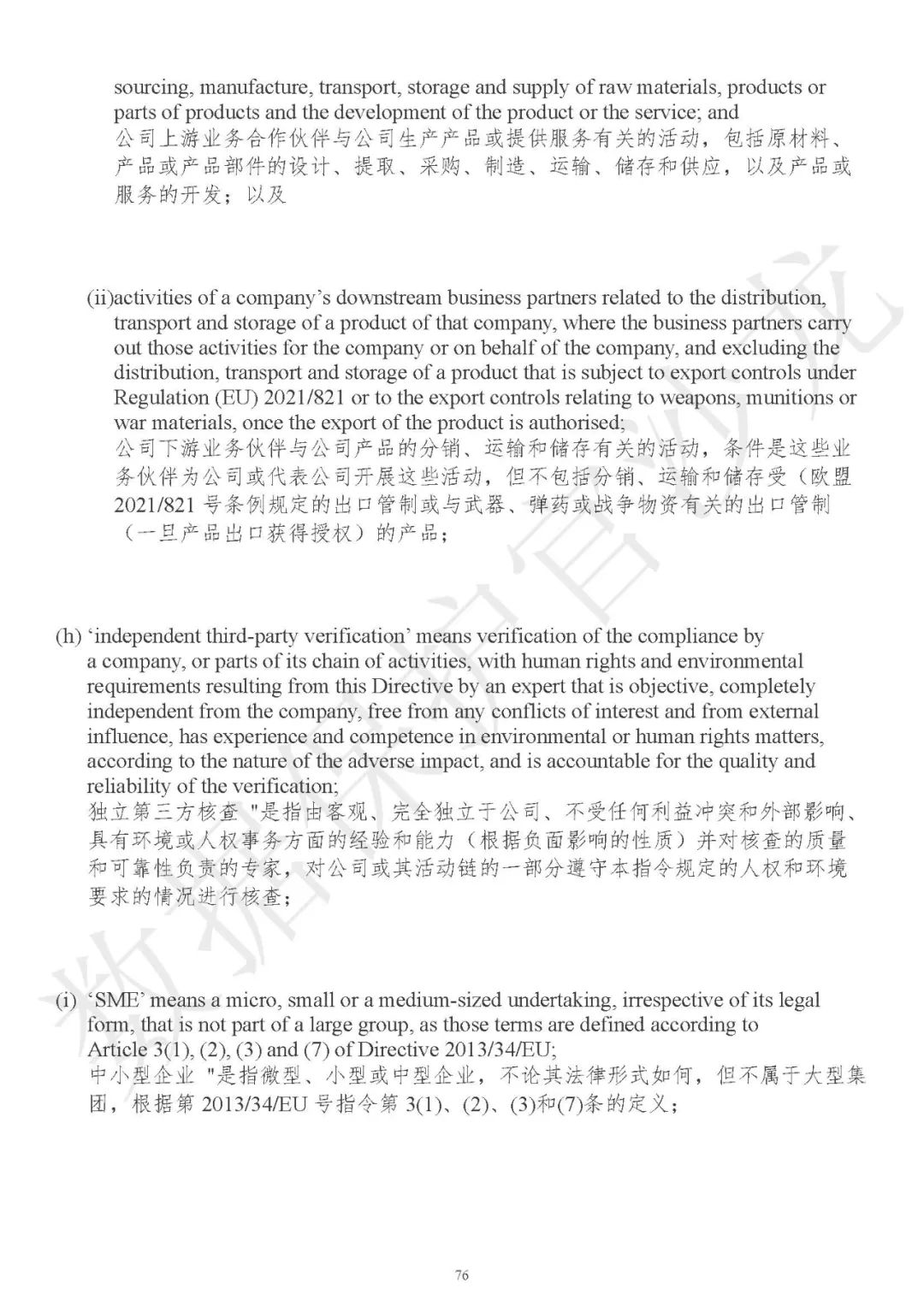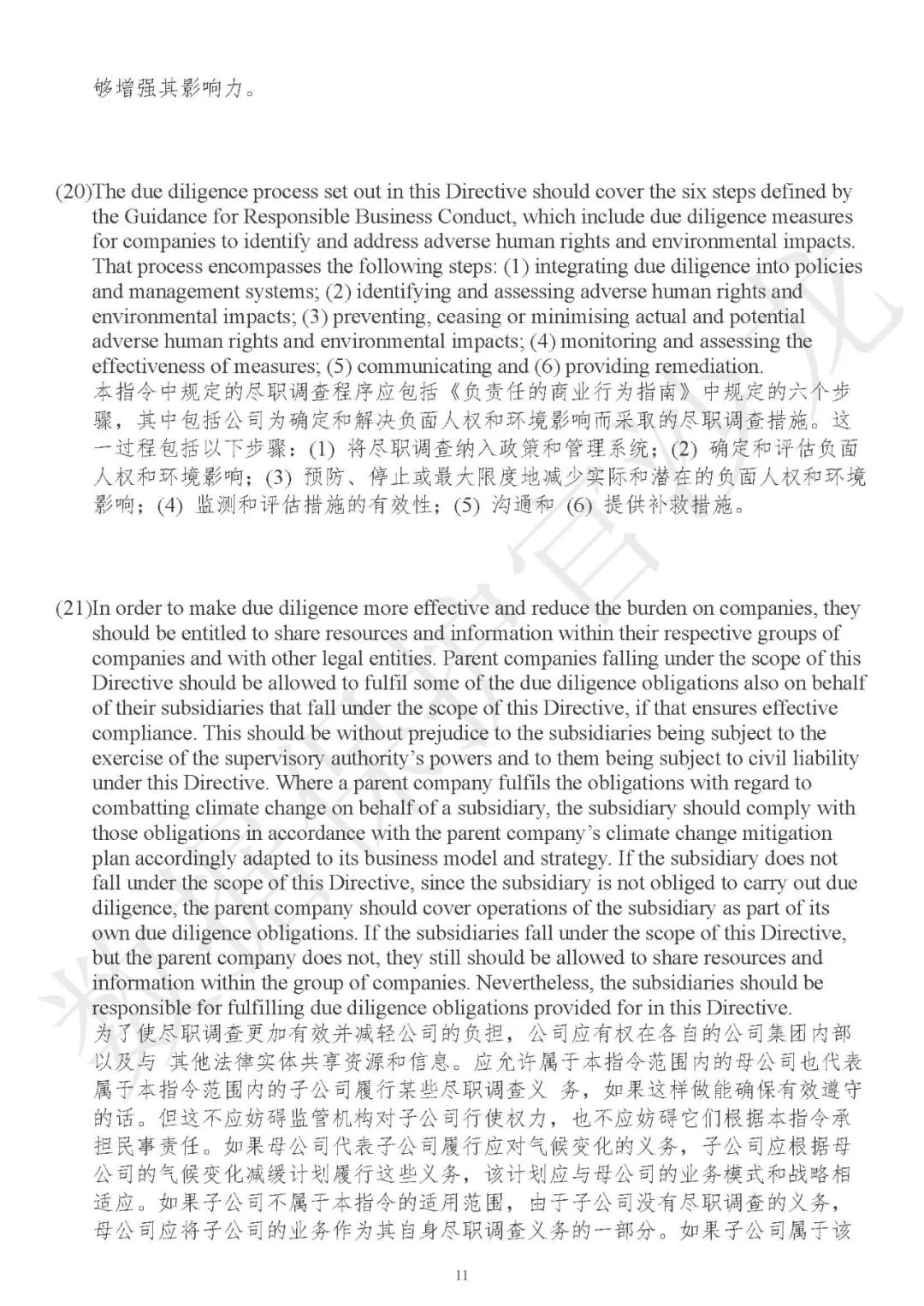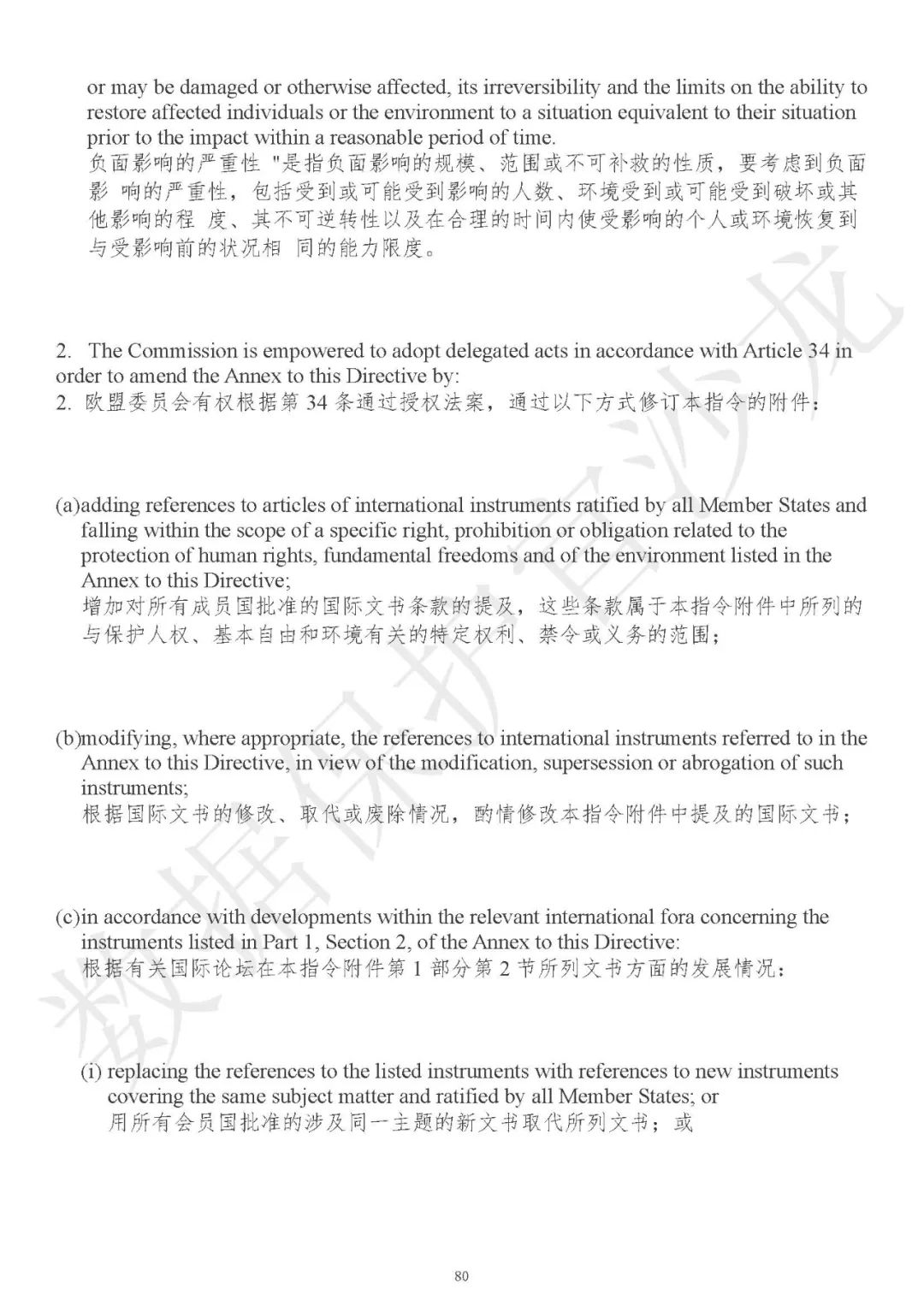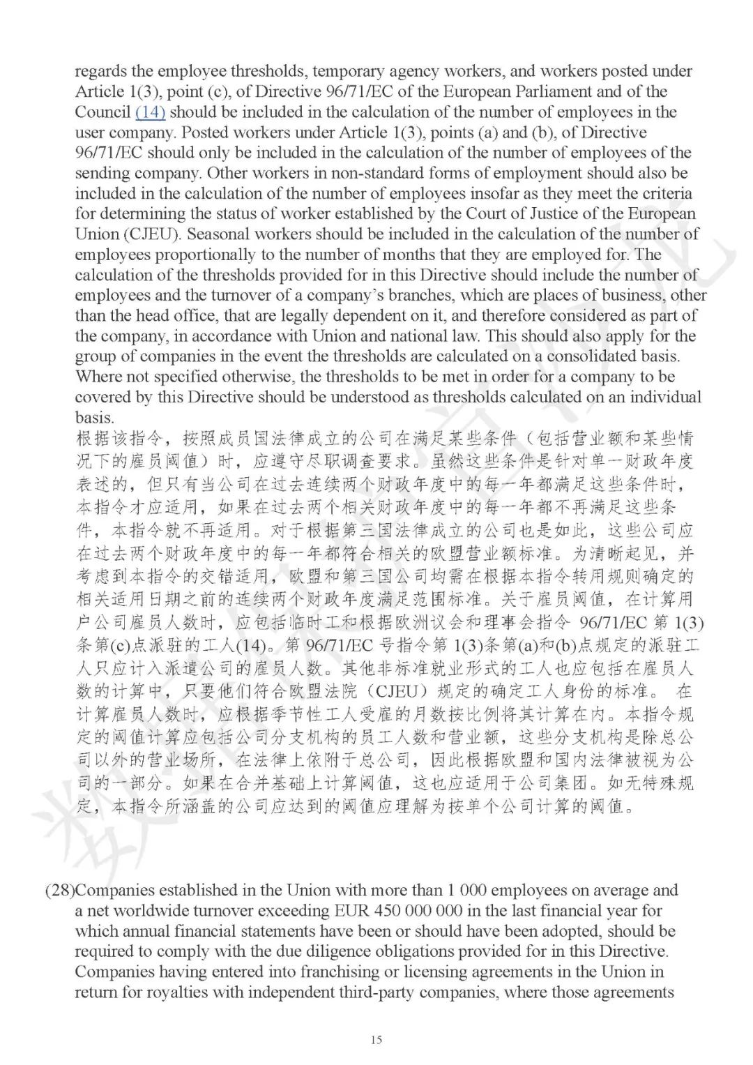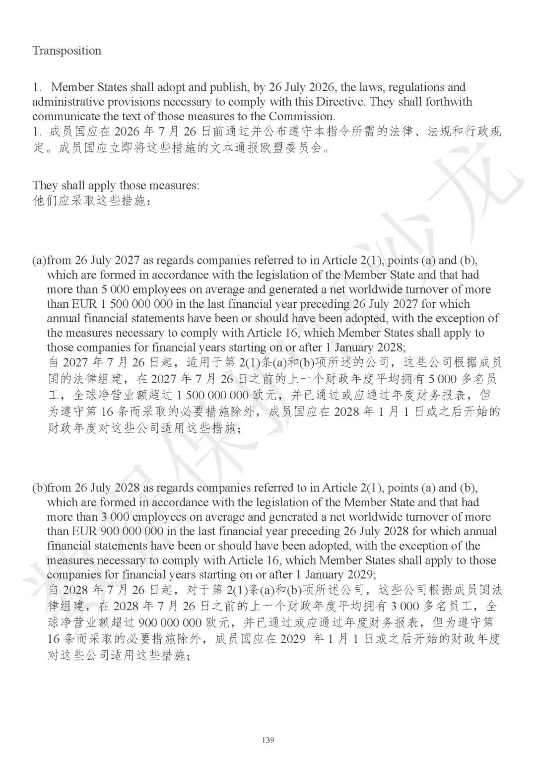 今天和大家分享的是欧盟《企业可持续发展尽职调查指令》生效版本的全文翻译。