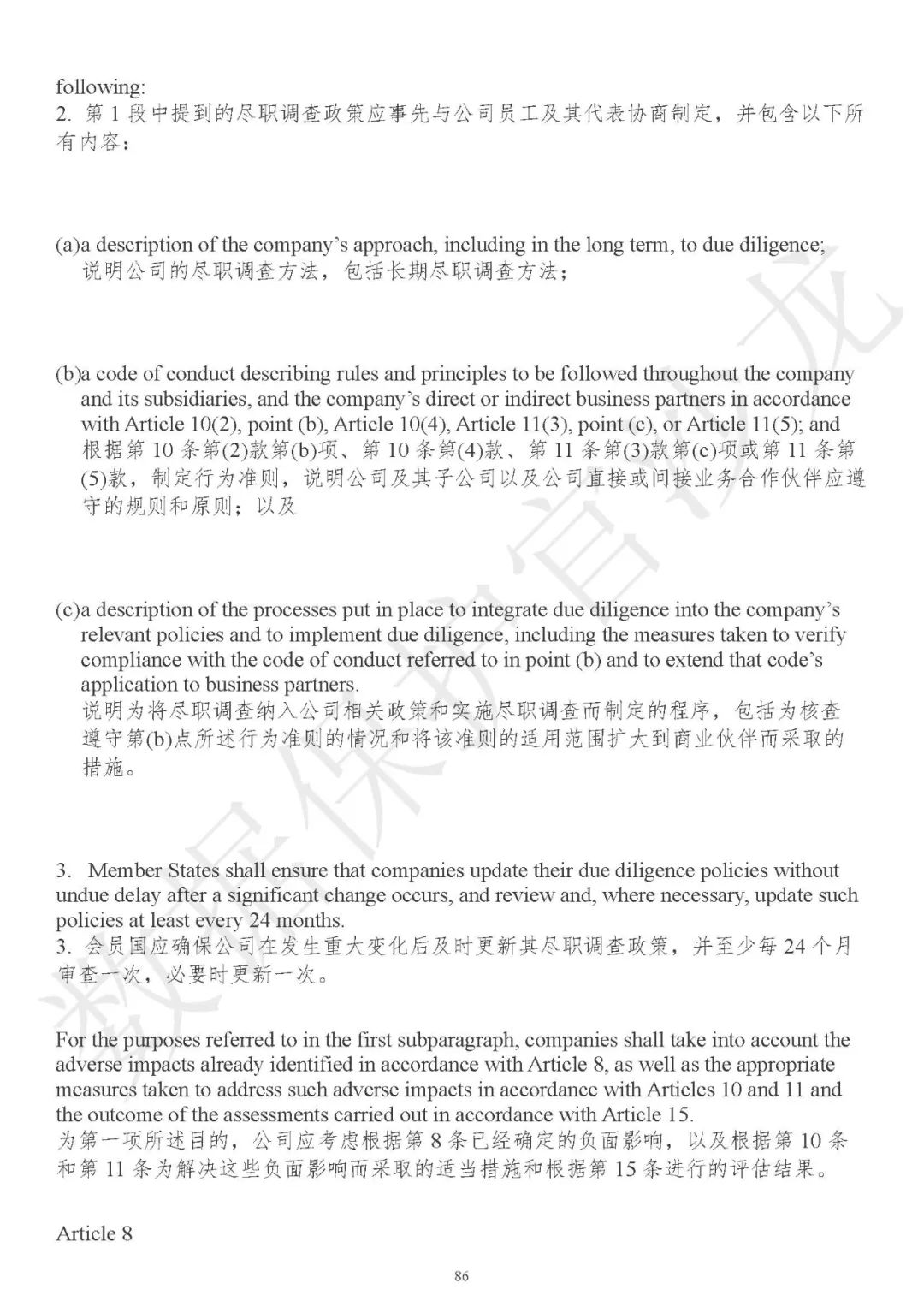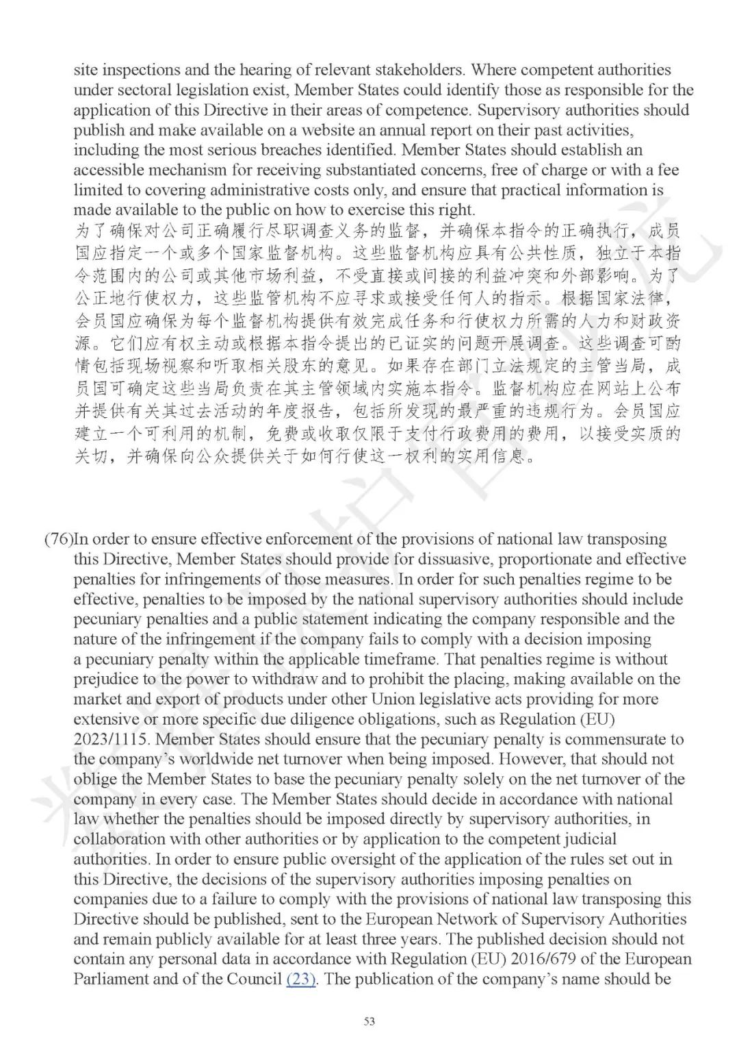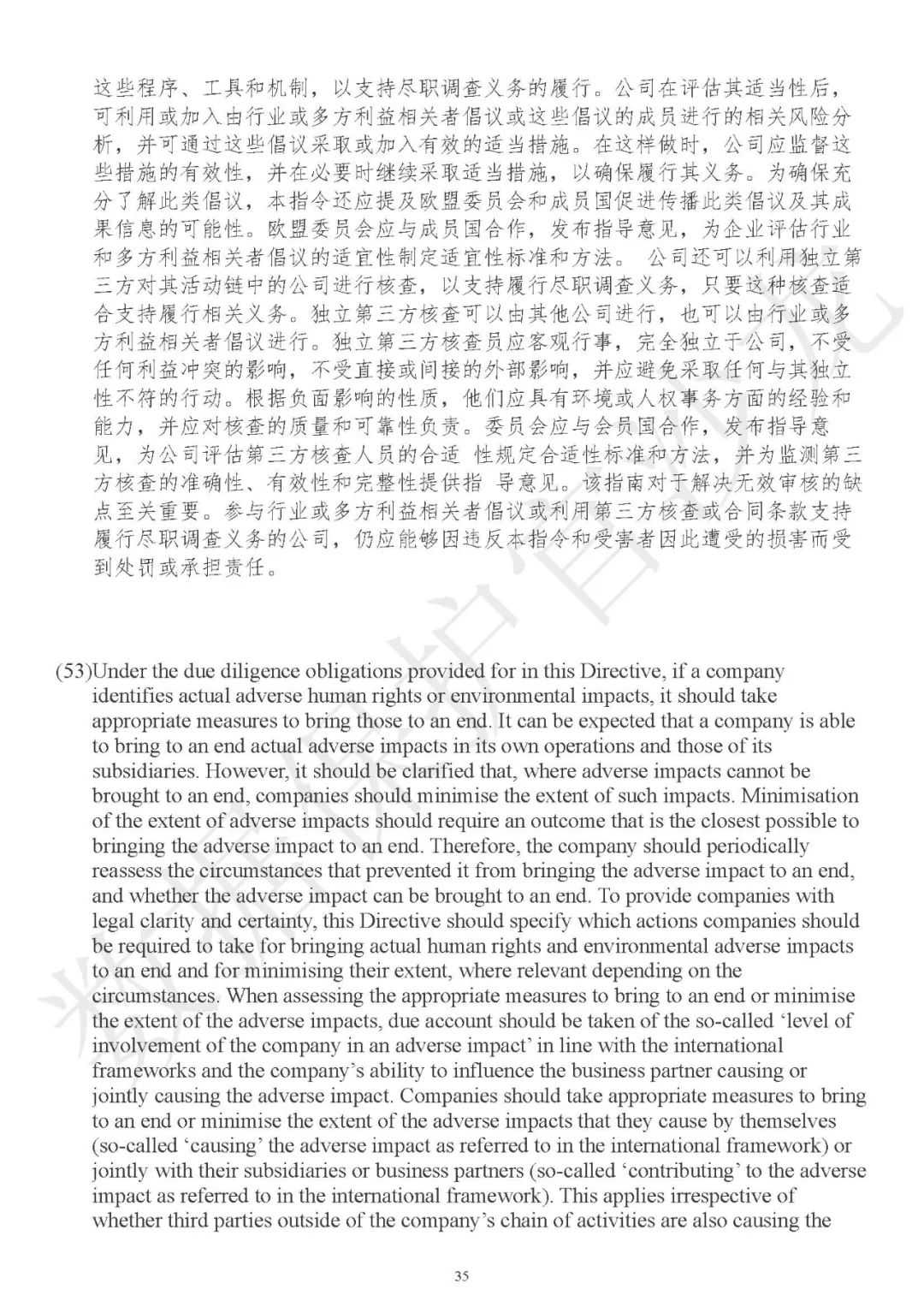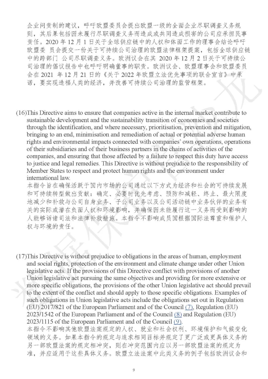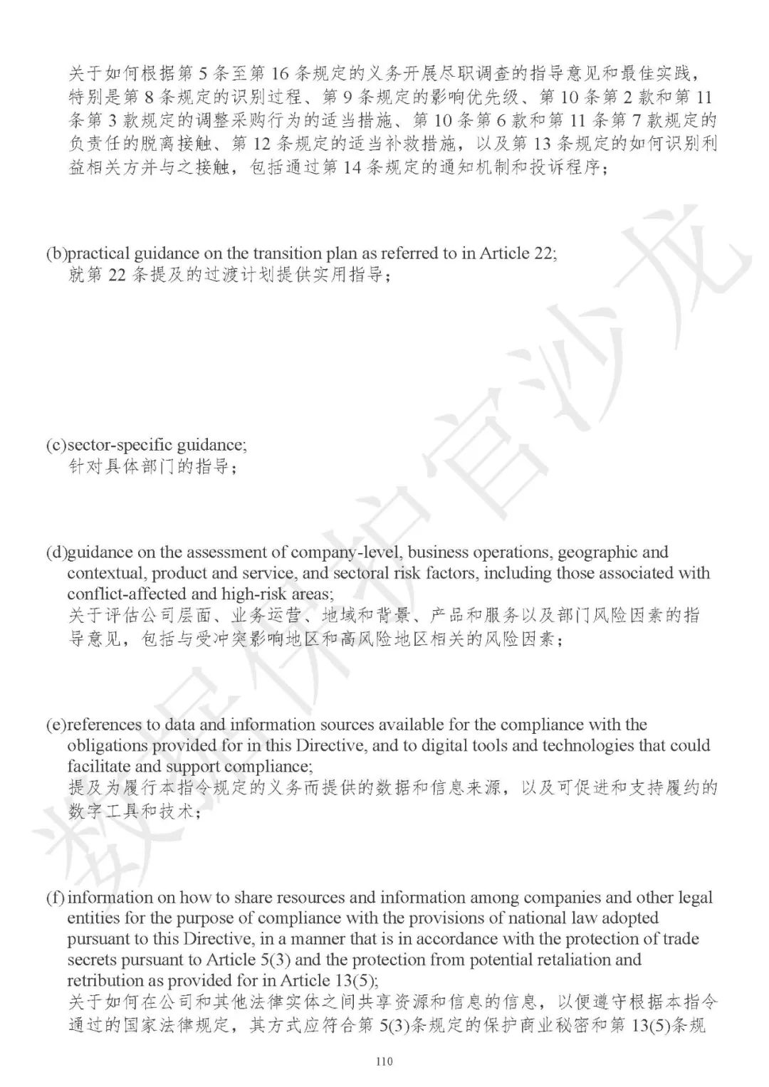 今天和大家分享的是欧盟《企业可持续发展尽职调查指令》生效版本的全文翻译。