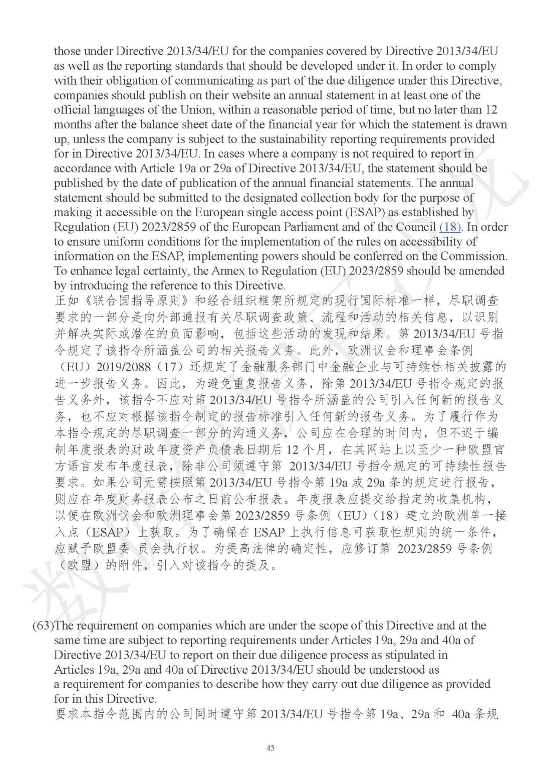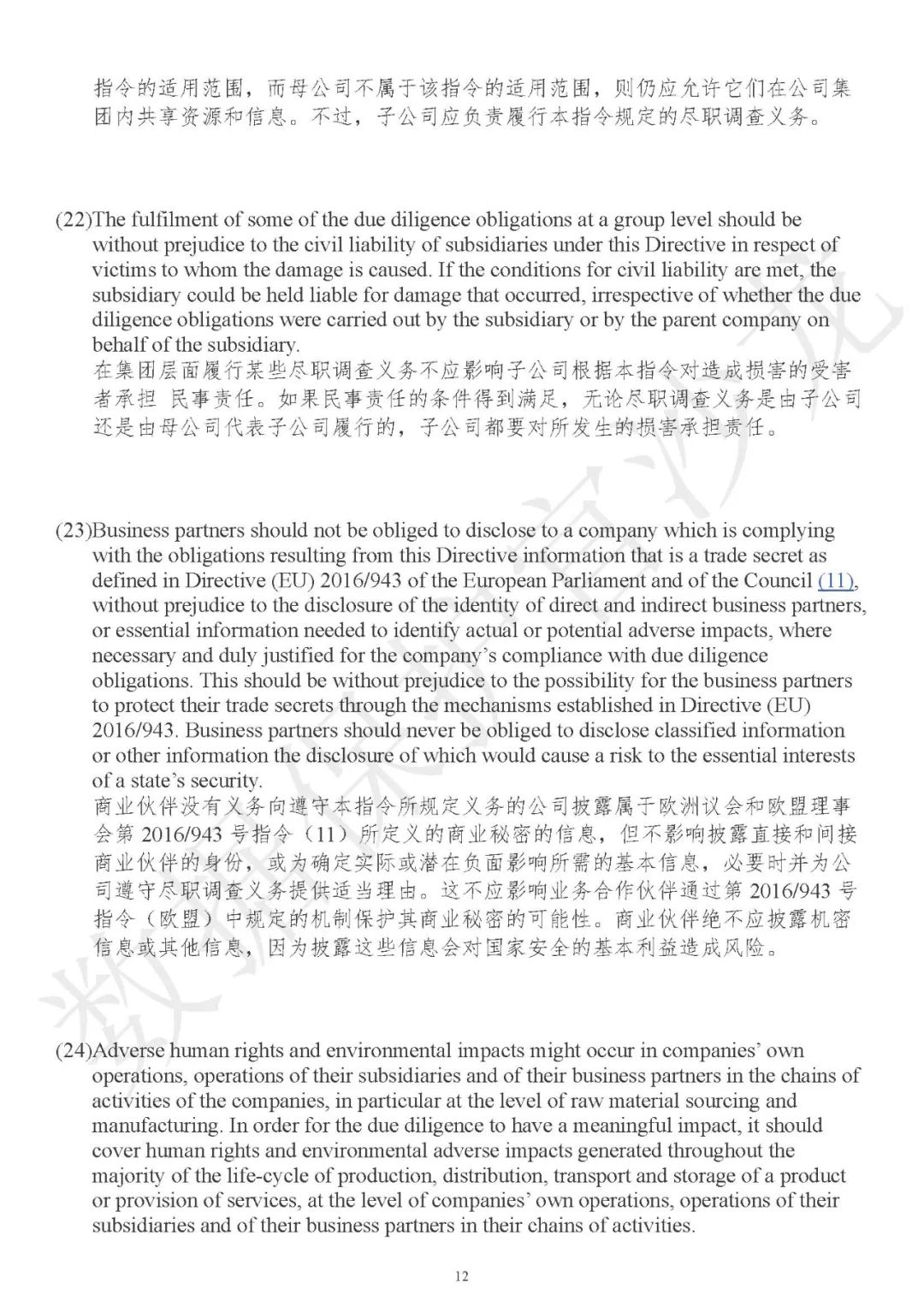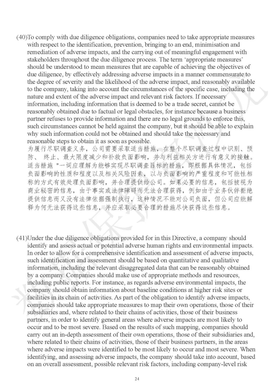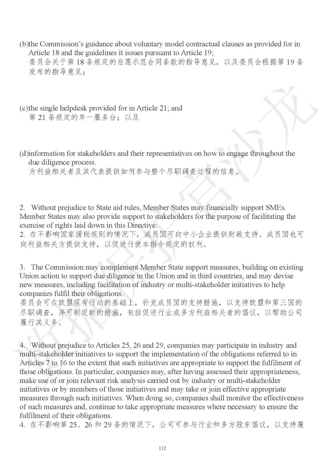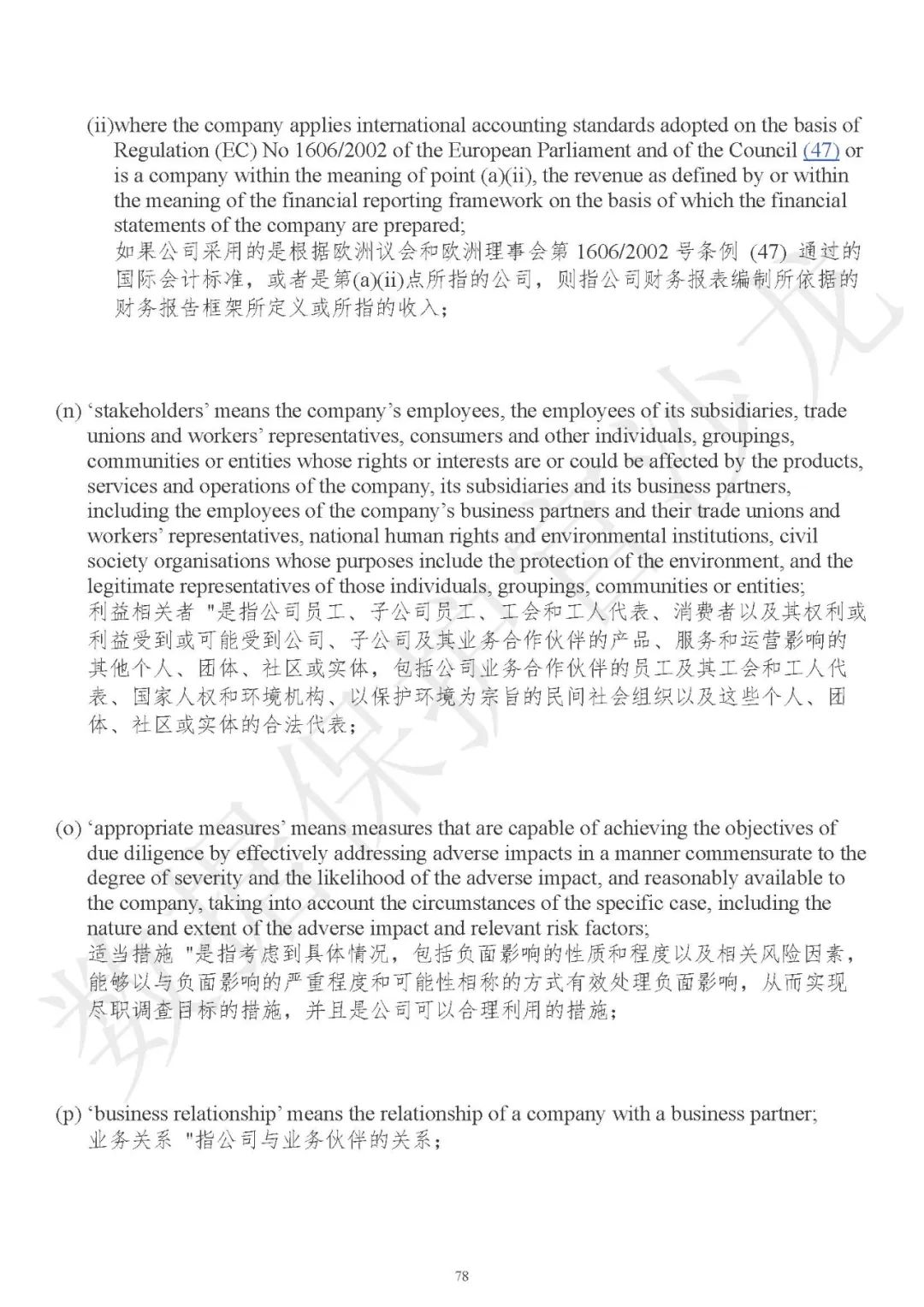 今天和大家分享的是欧盟《企业可持续发展尽职调查指令》生效版本的全文翻译。