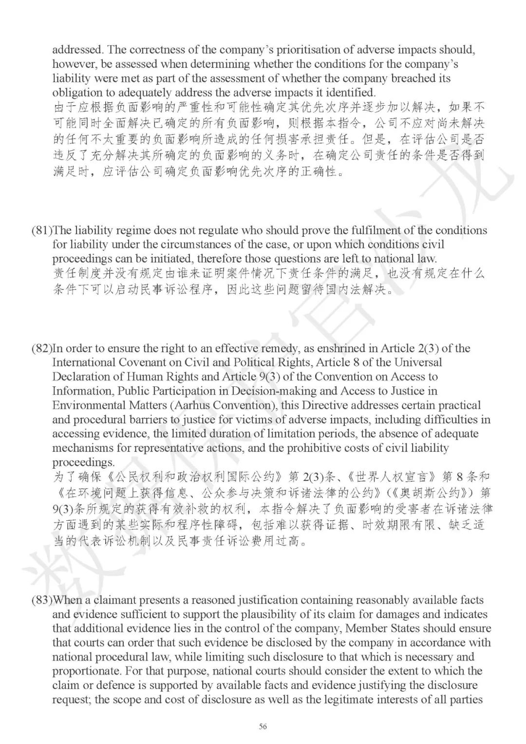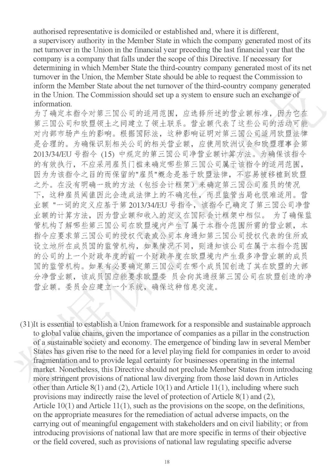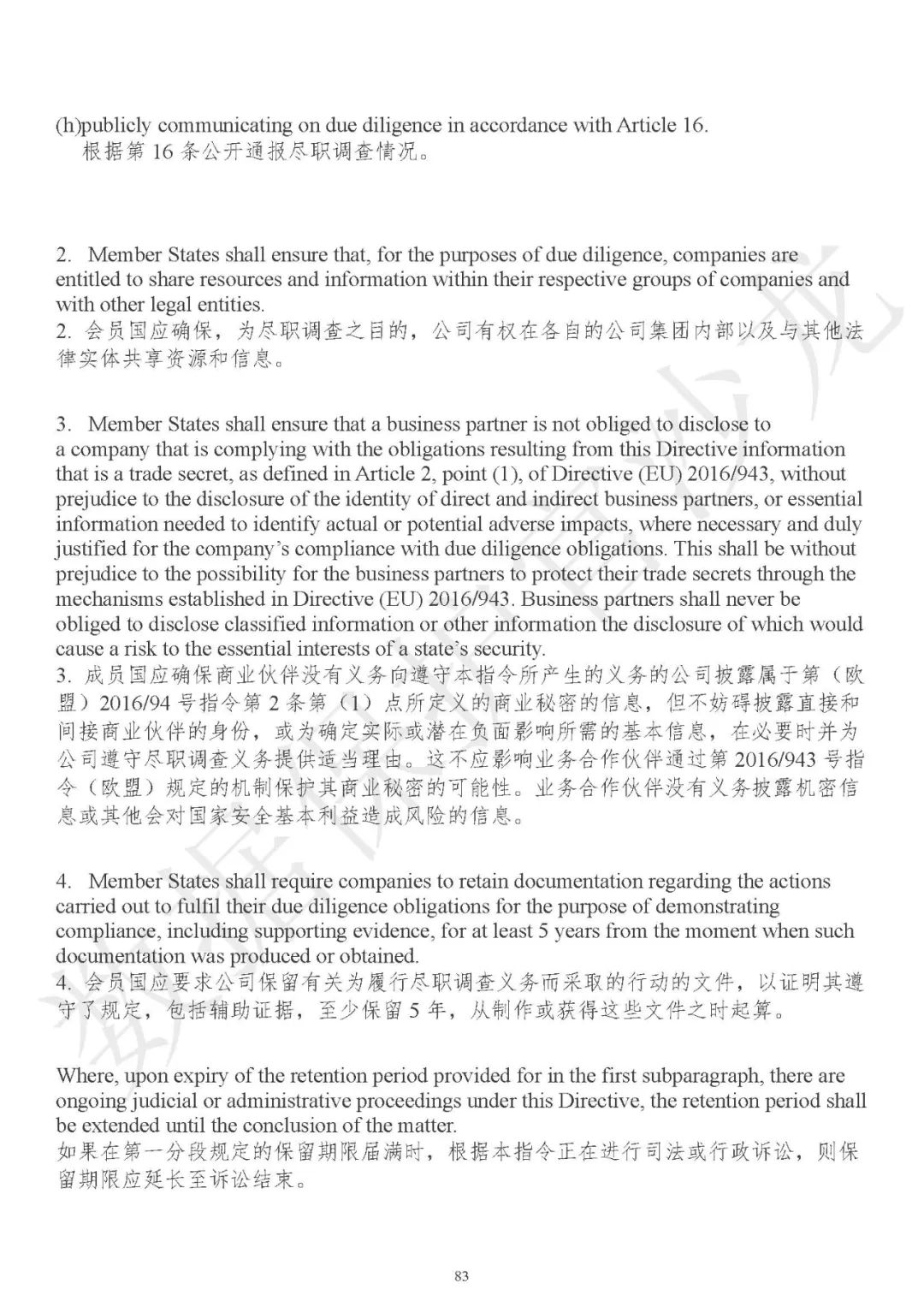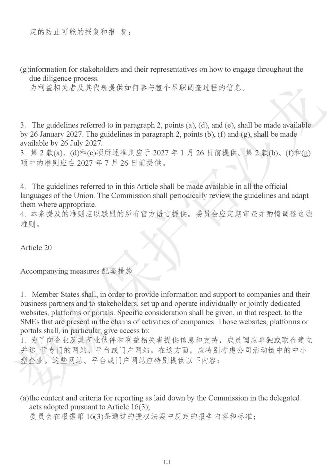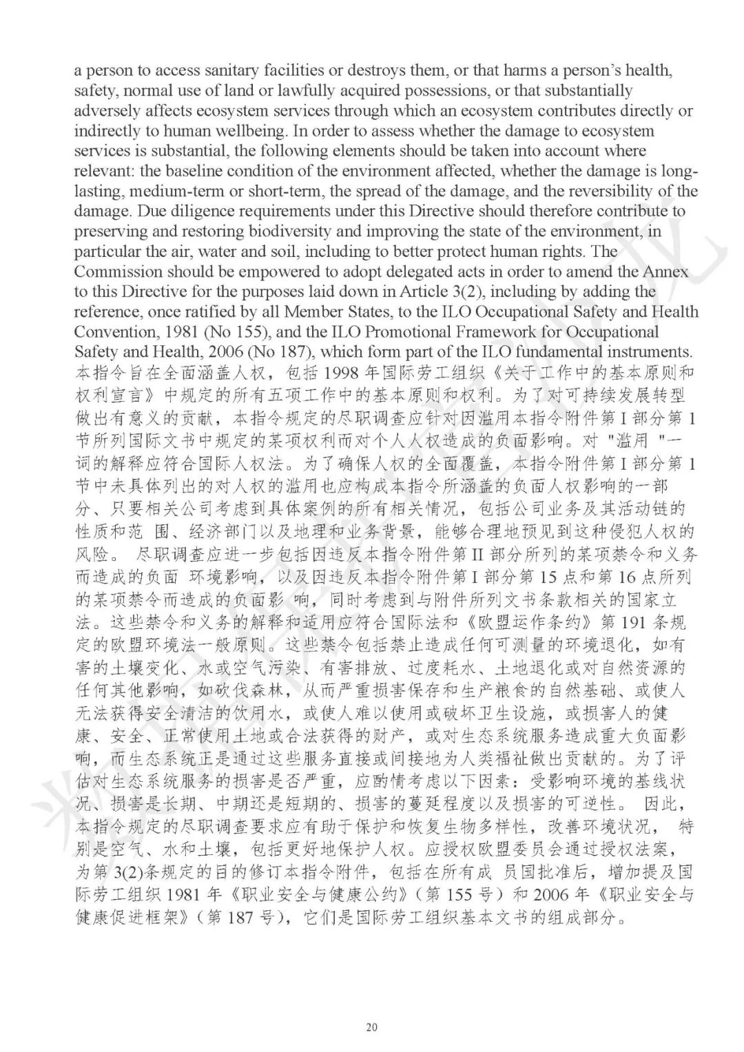今天和大家分享的是欧盟《企业可持续发展尽职调查指令》生效版本的全文翻译。