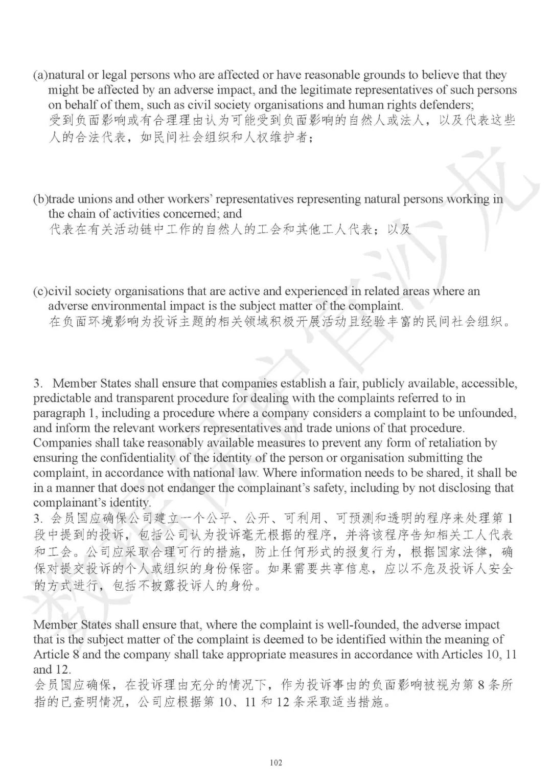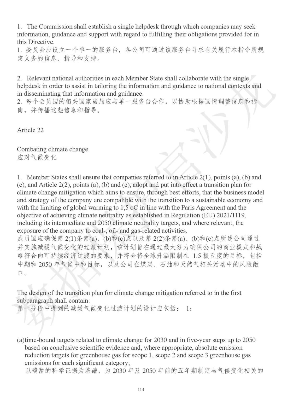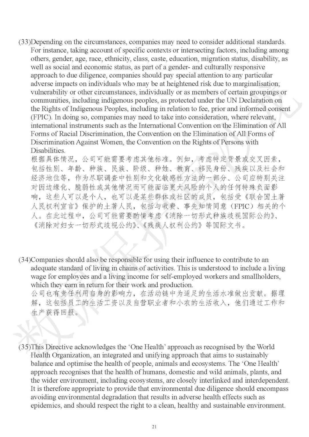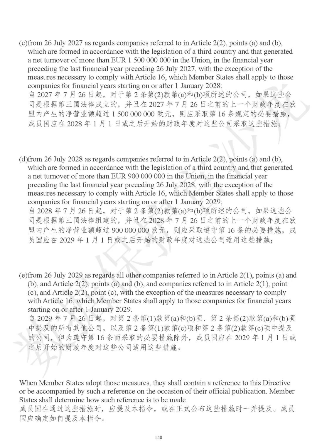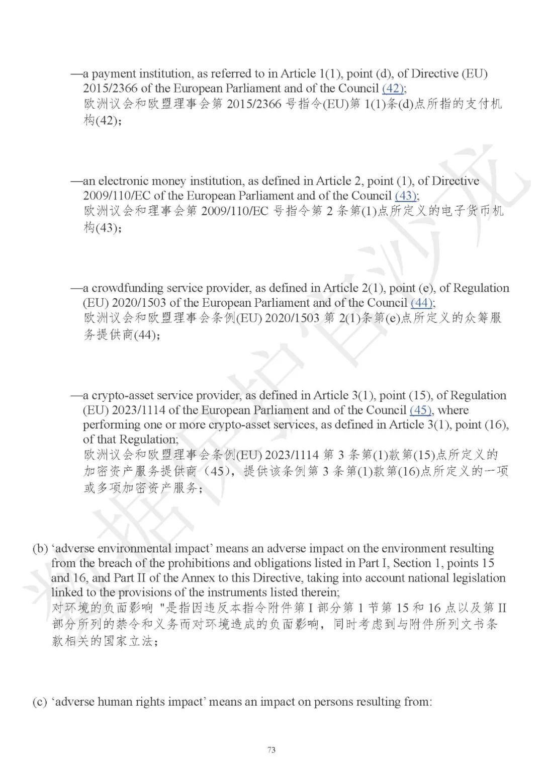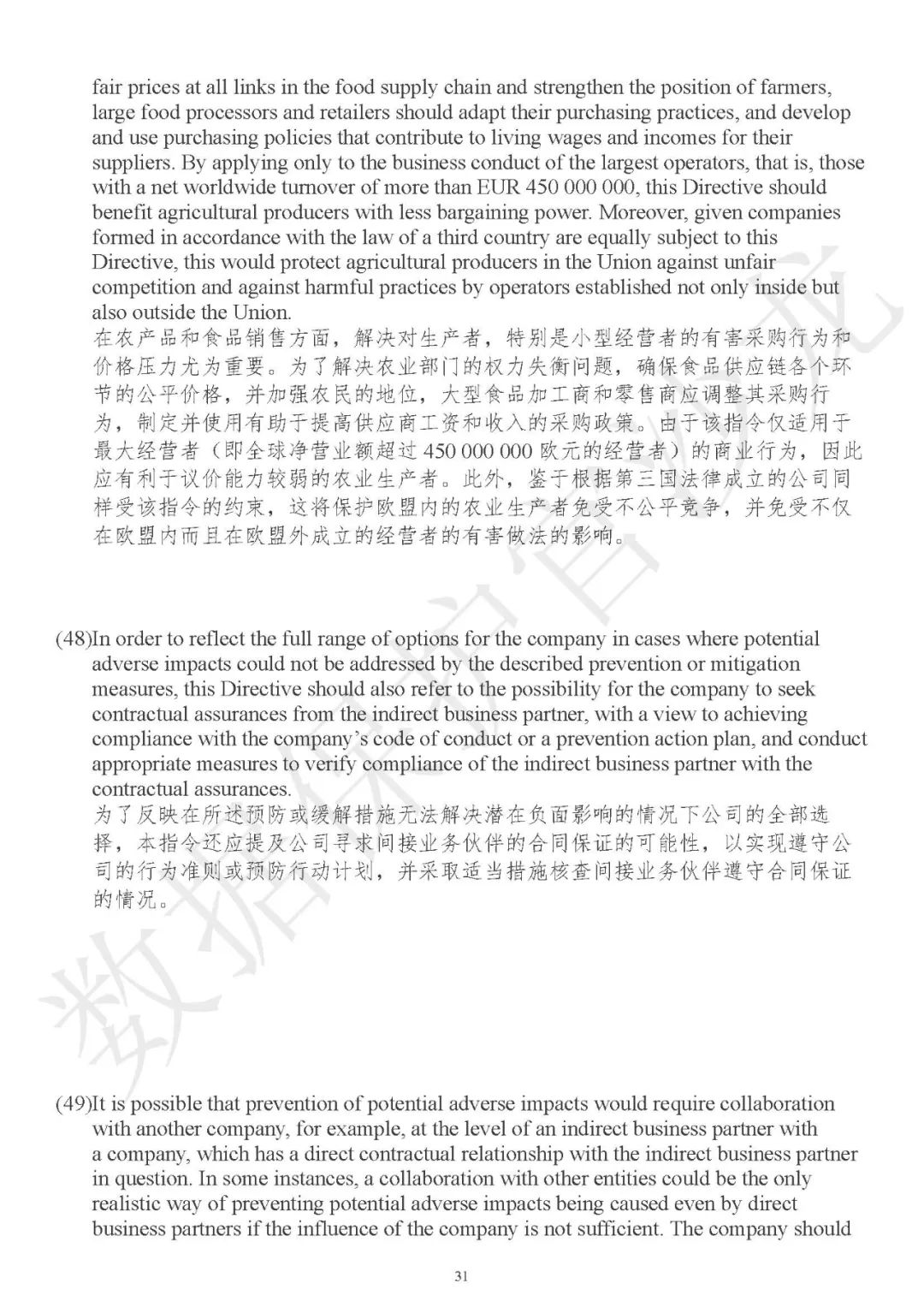 今天和大家分享的是欧盟《企业可持续发展尽职调查指令》生效版本的全文翻译。