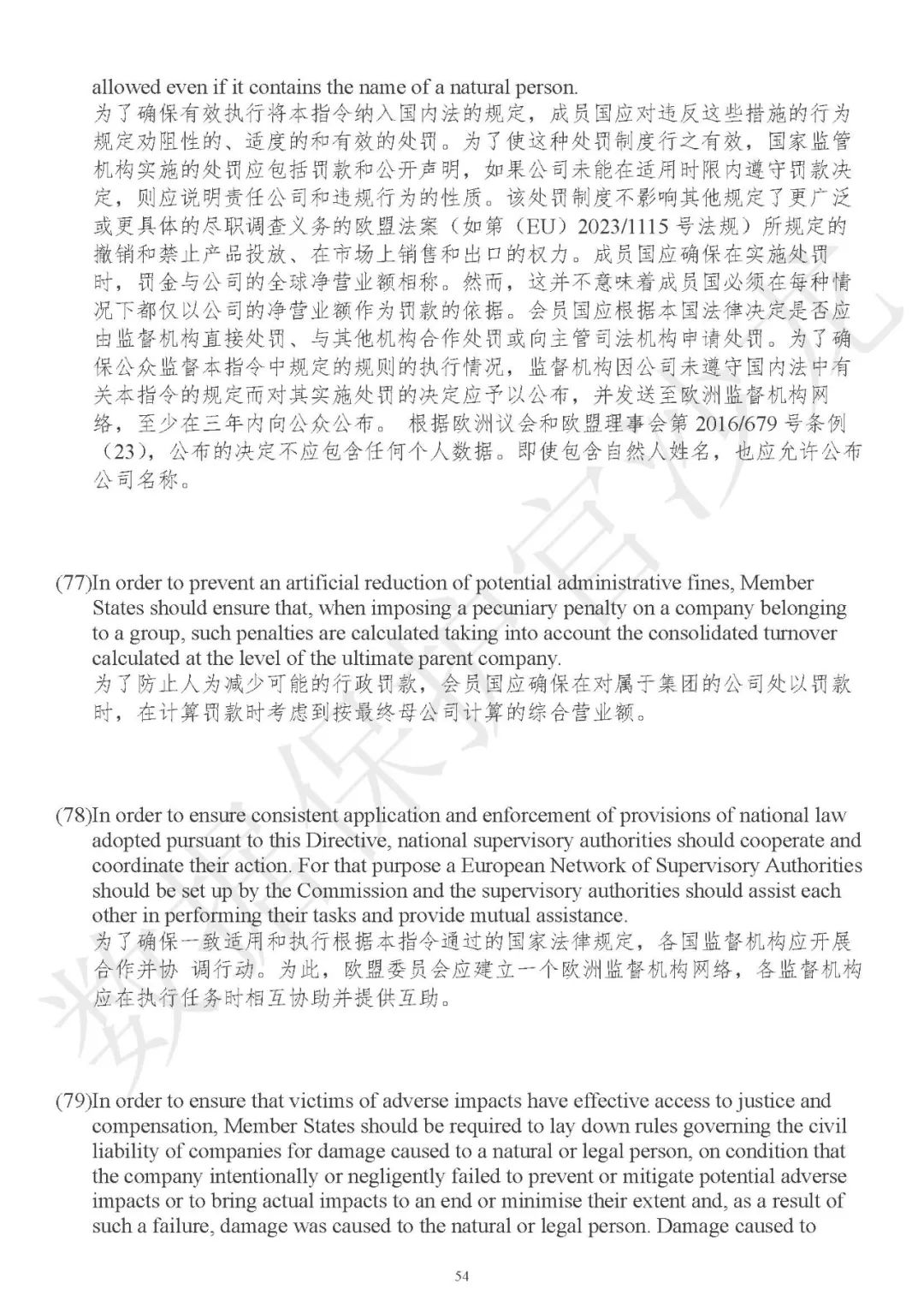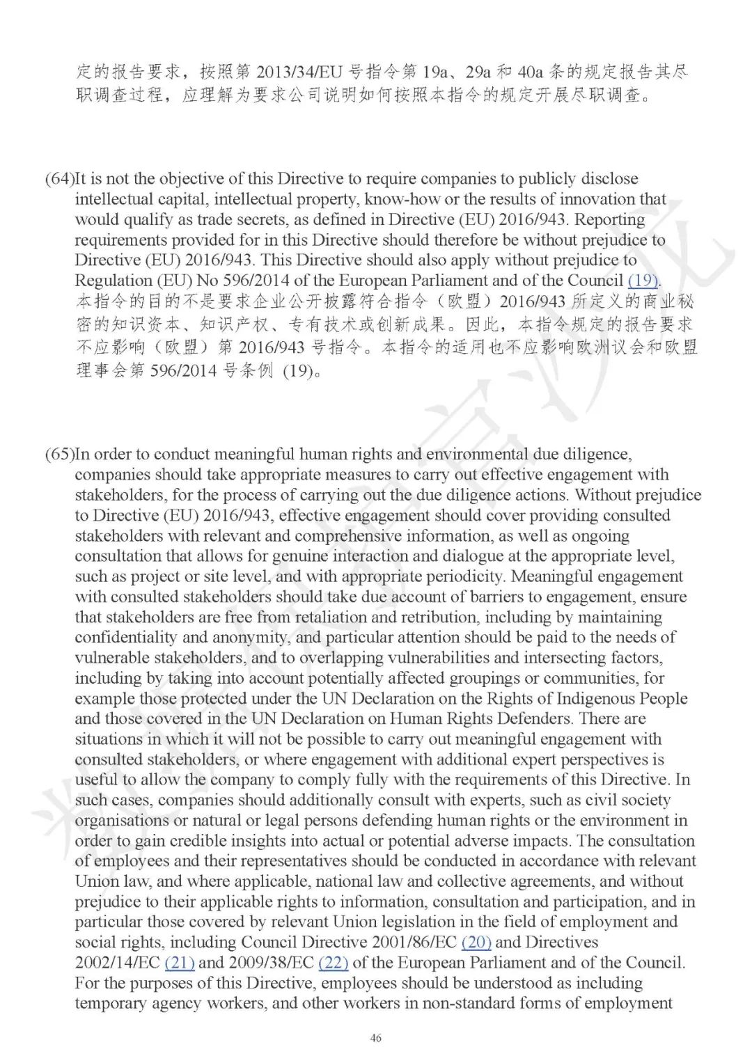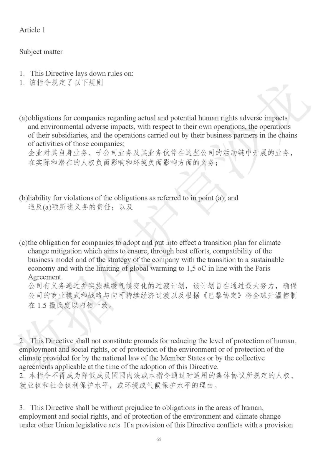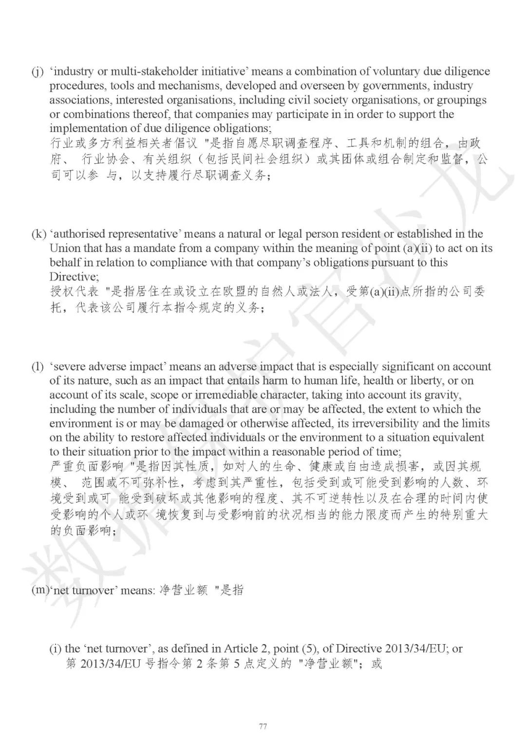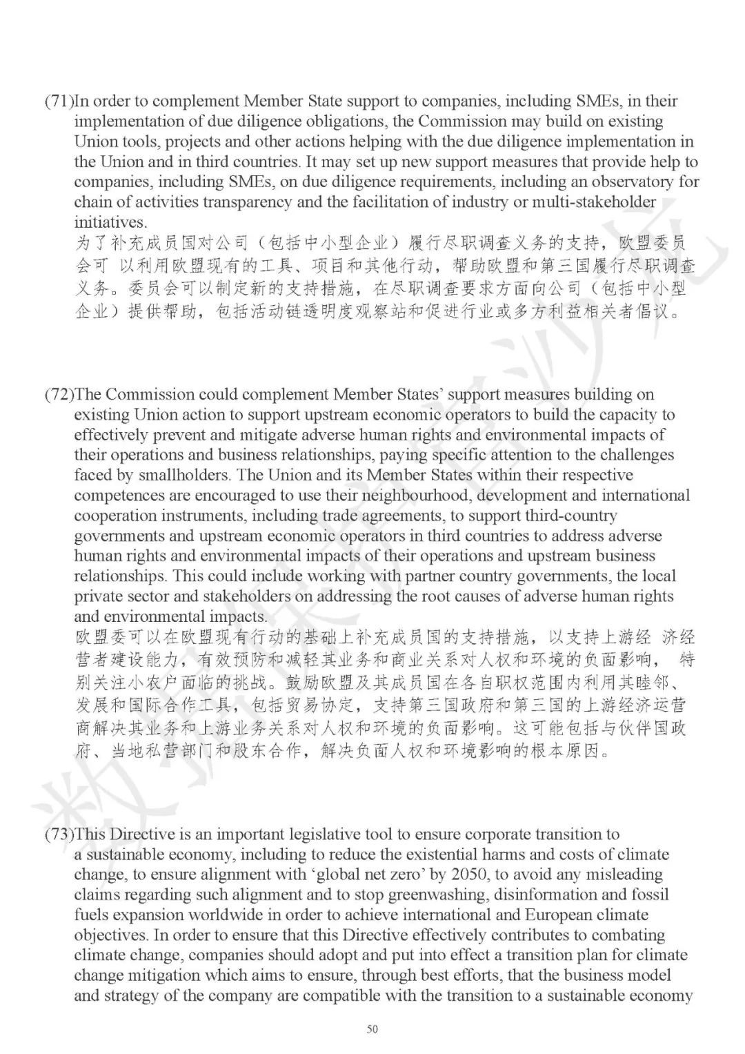 今天和大家分享的是欧盟《企业可持续发展尽职调查指令》生效版本的全文翻译。