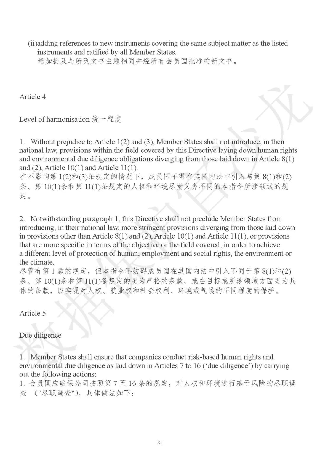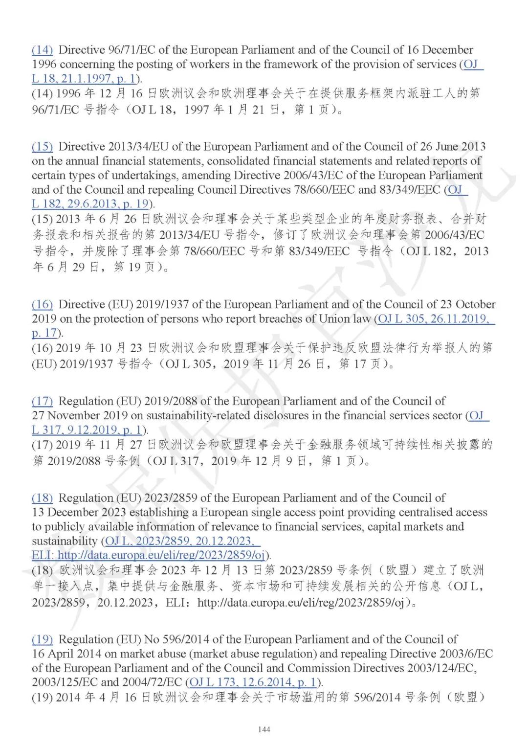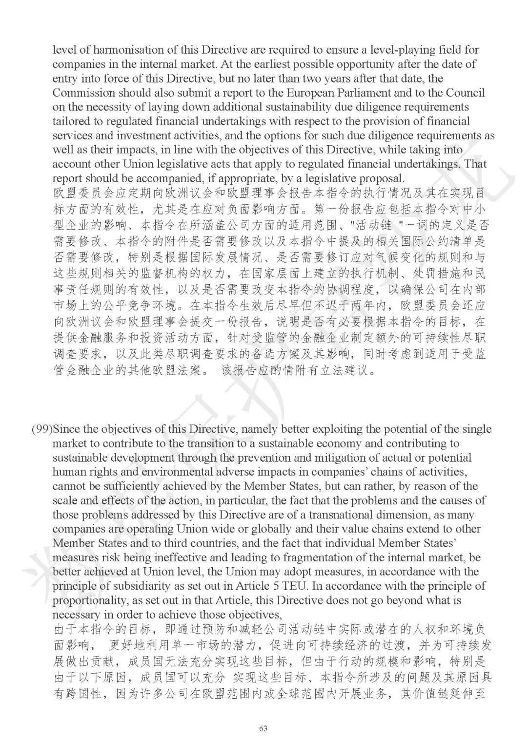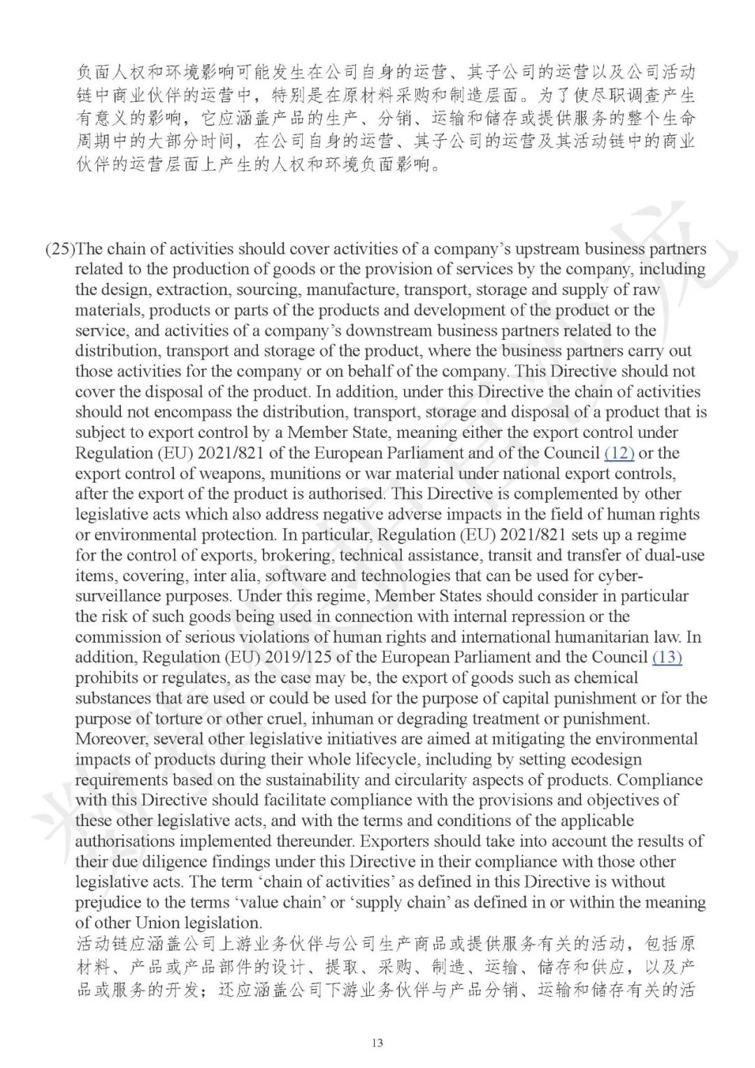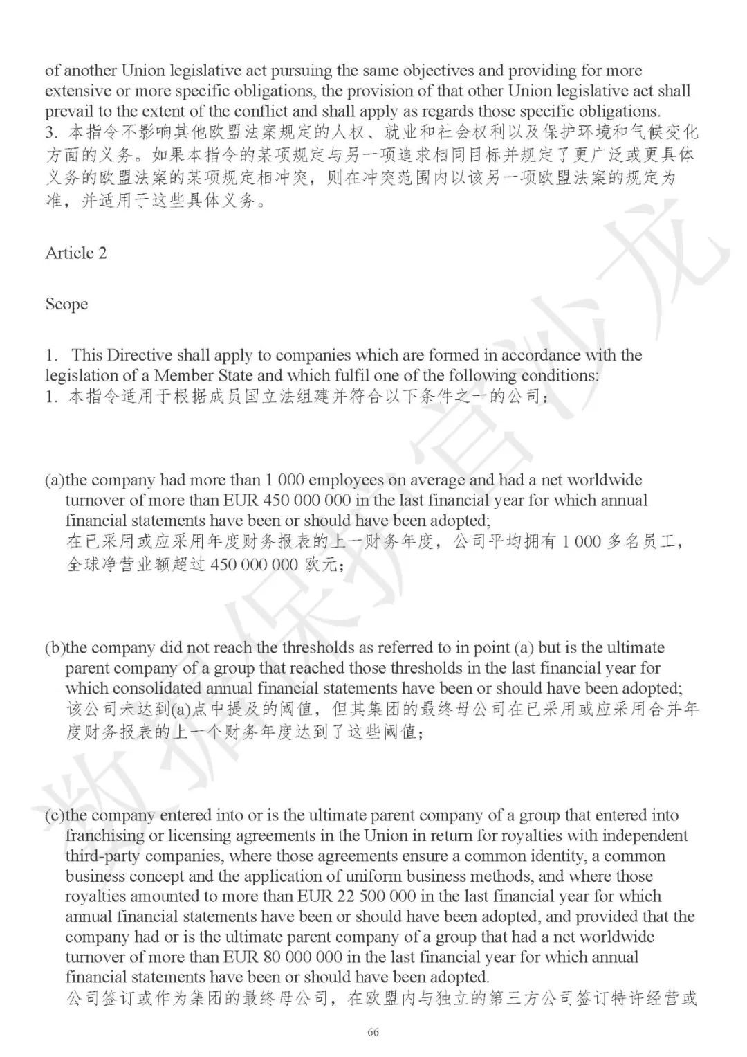 今天和大家分享的是欧盟《企业可持续发展尽职调查指令》生效版本的全文翻译。