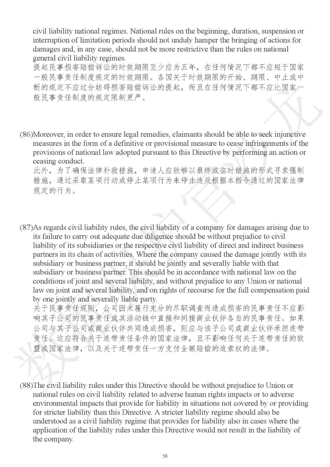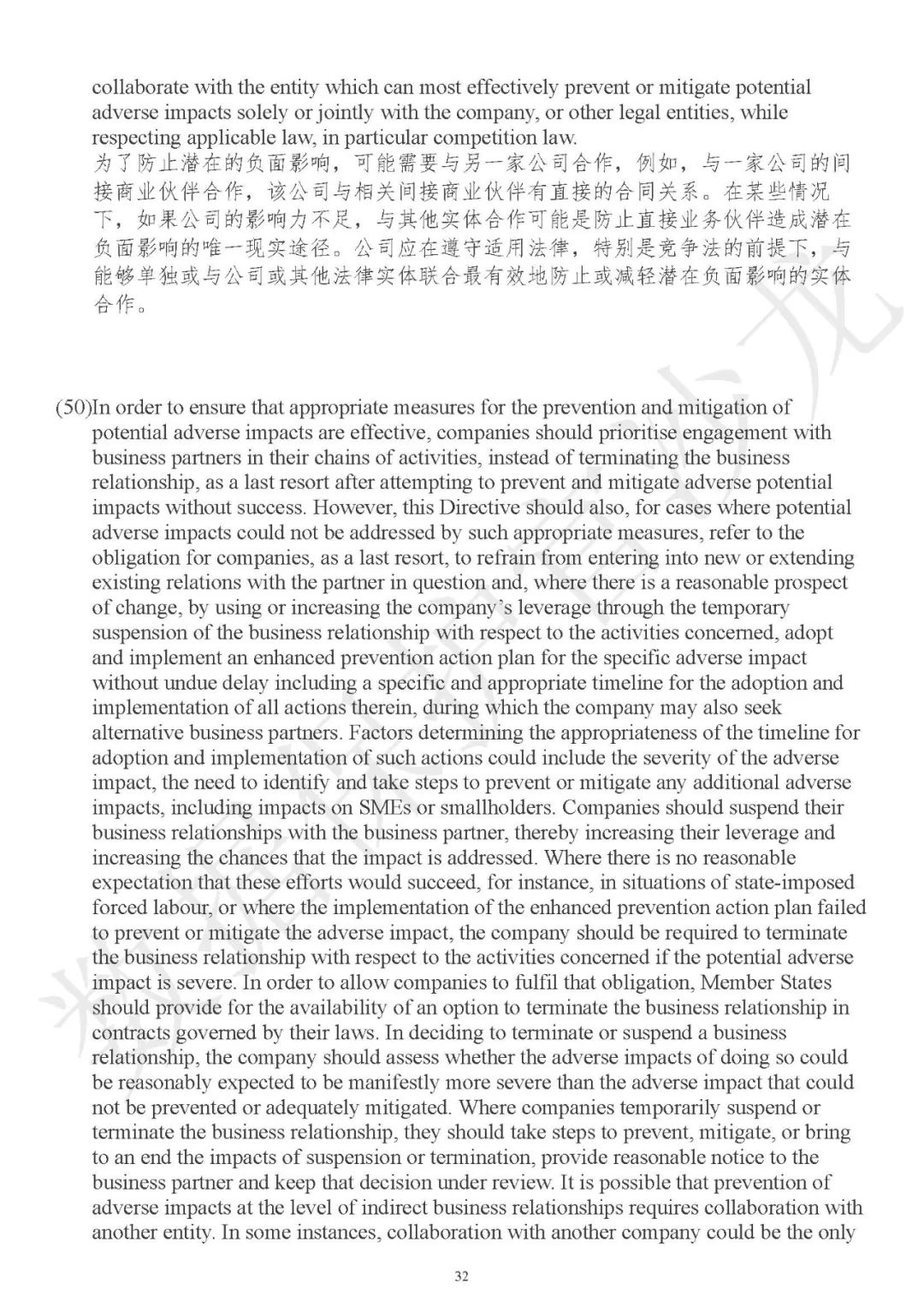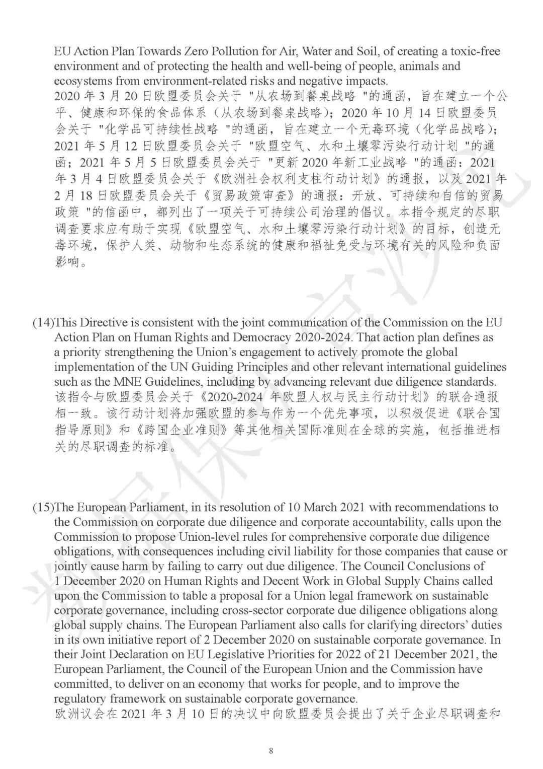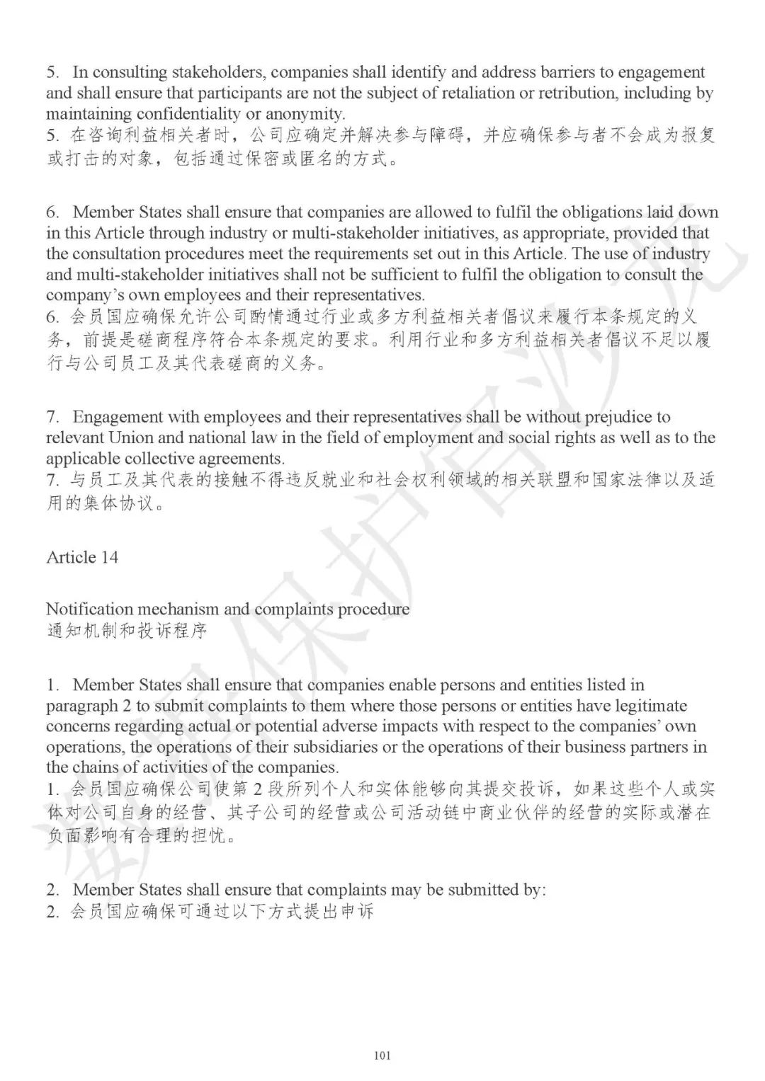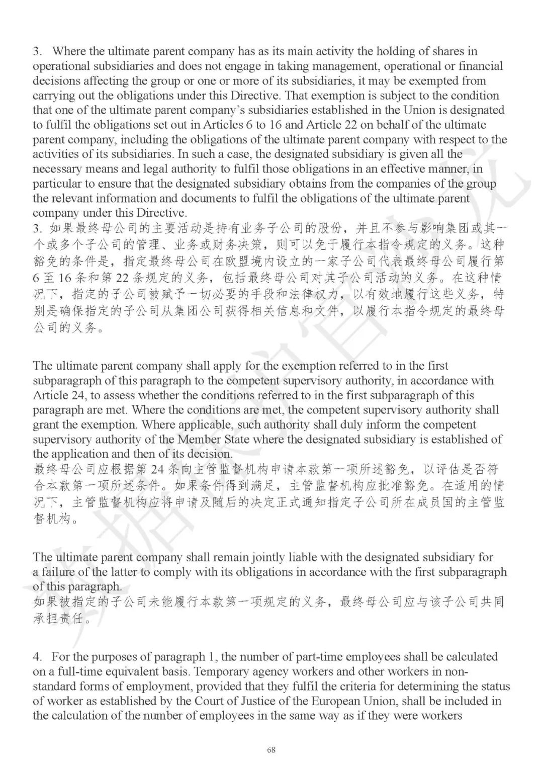 今天和大家分享的是欧盟《企业可持续发展尽职调查指令》生效版本的全文翻译。