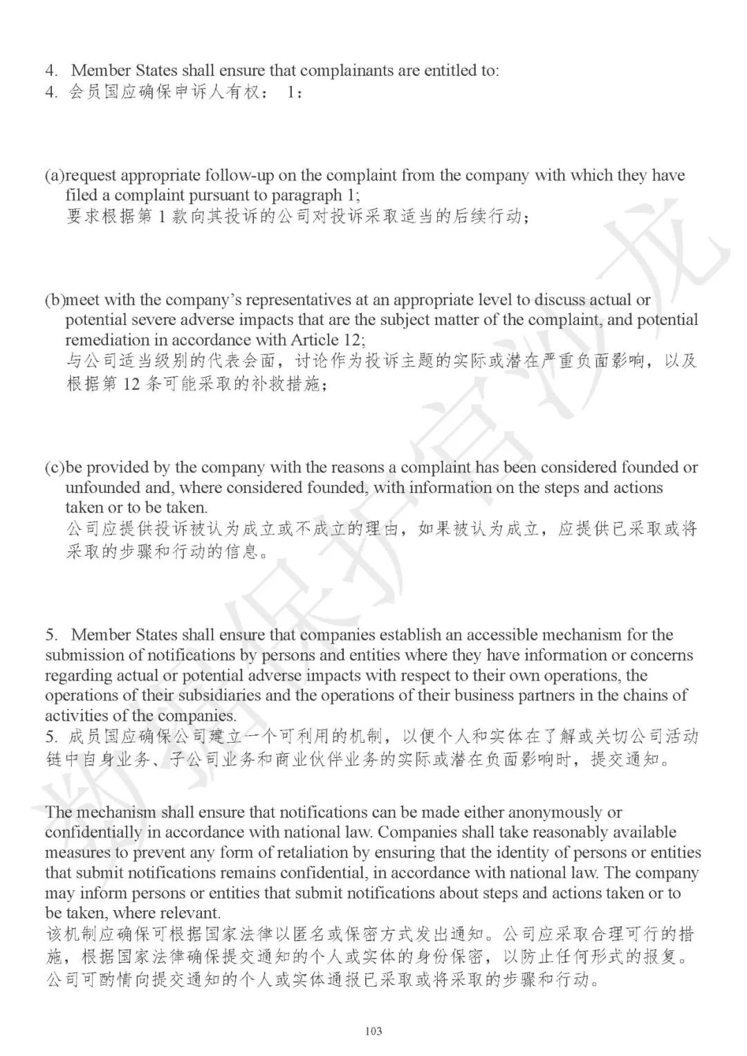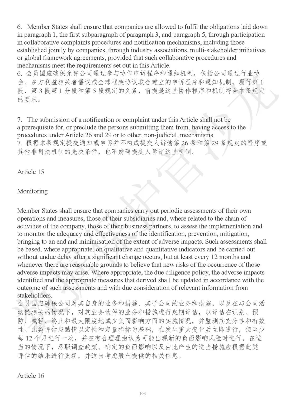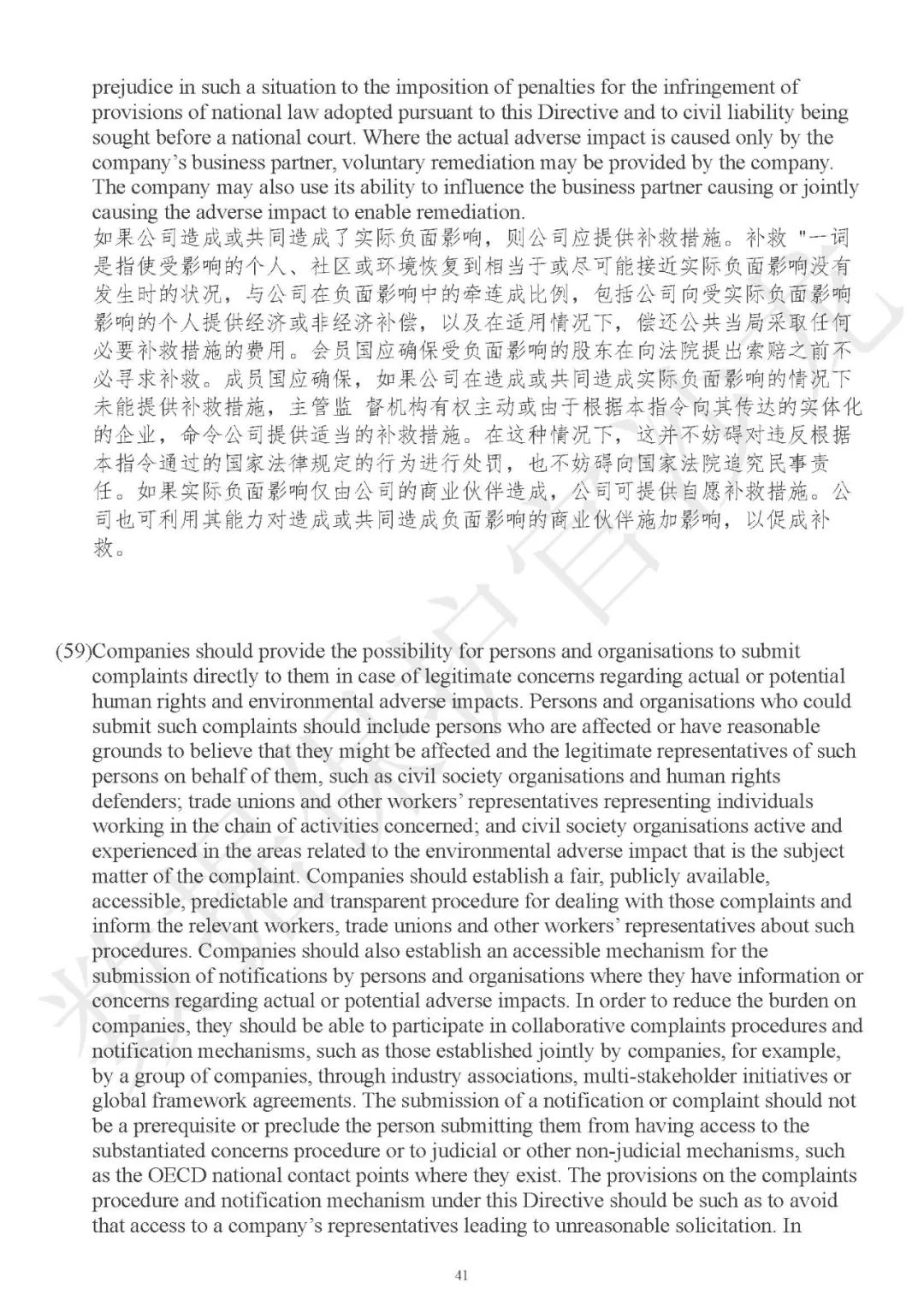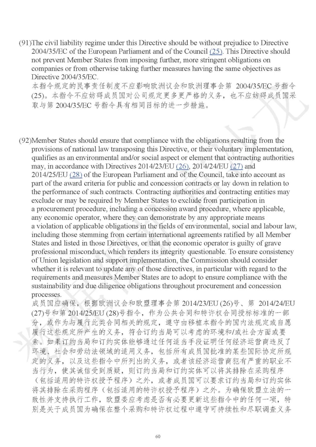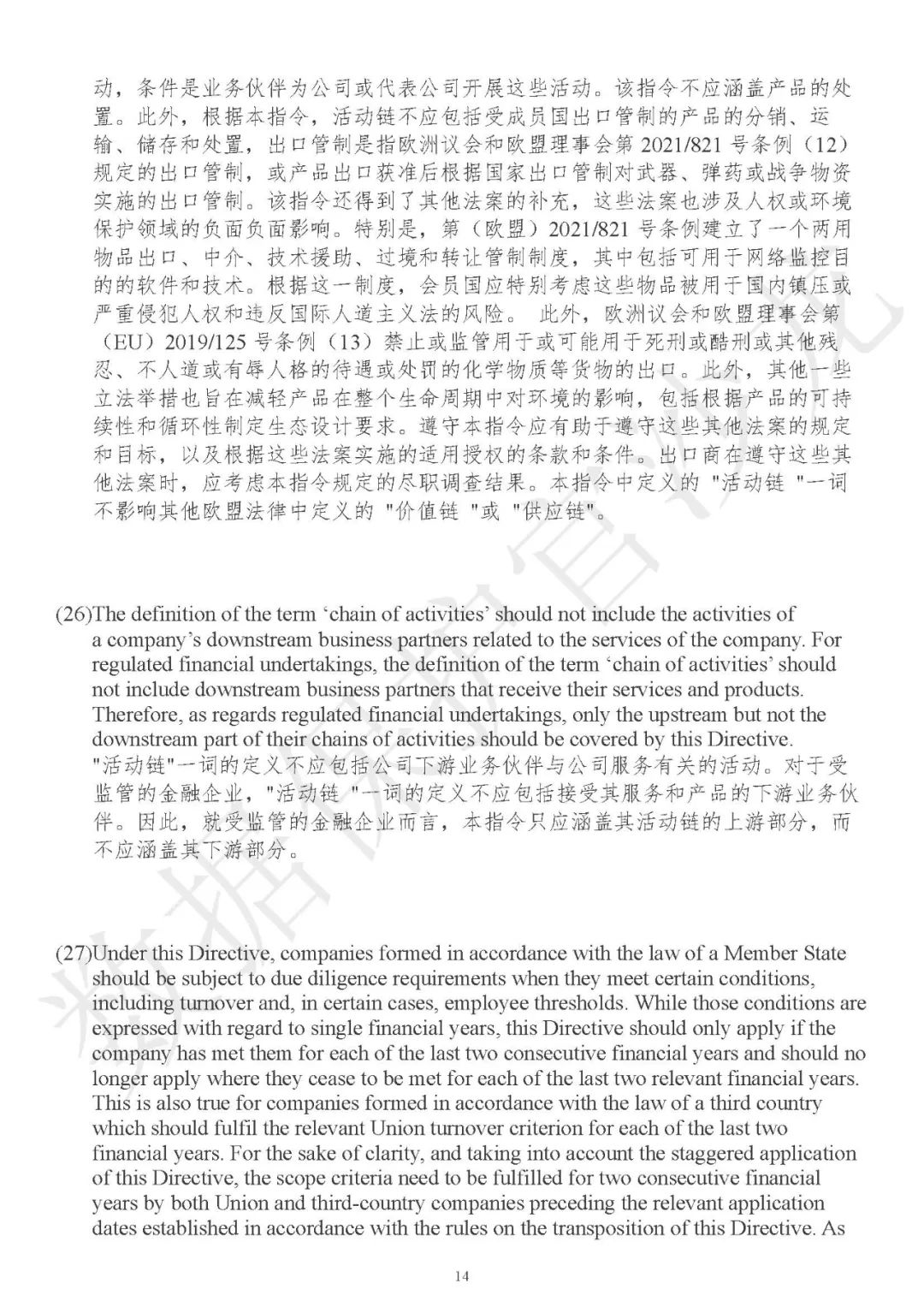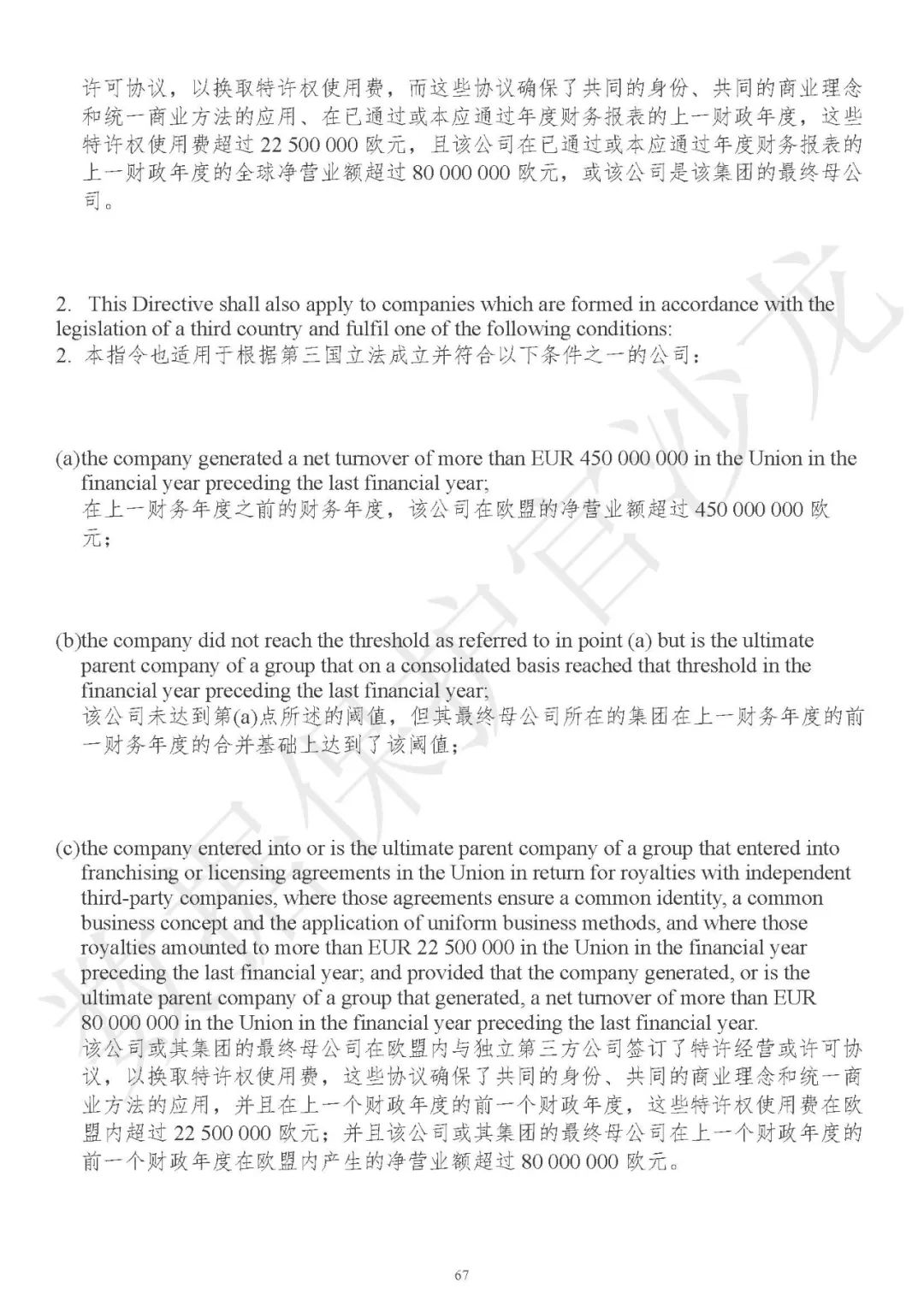 今天和大家分享的是欧盟《企业可持续发展尽职调查指令》生效版本的全文翻译。