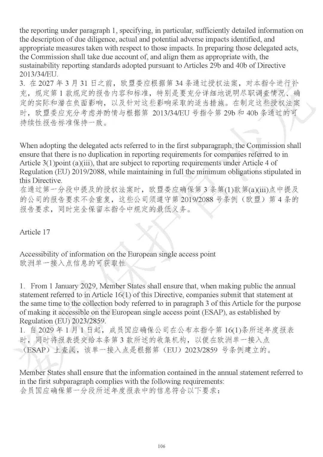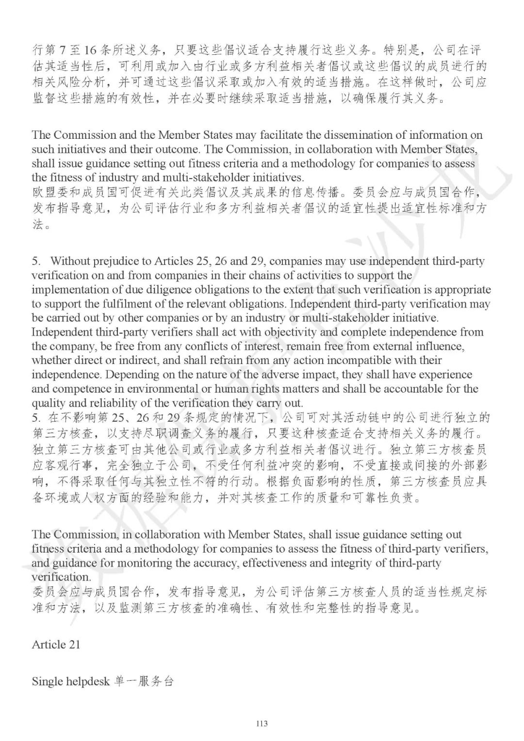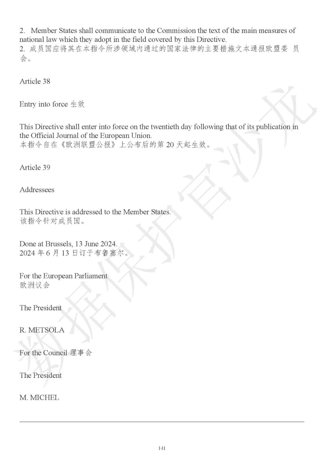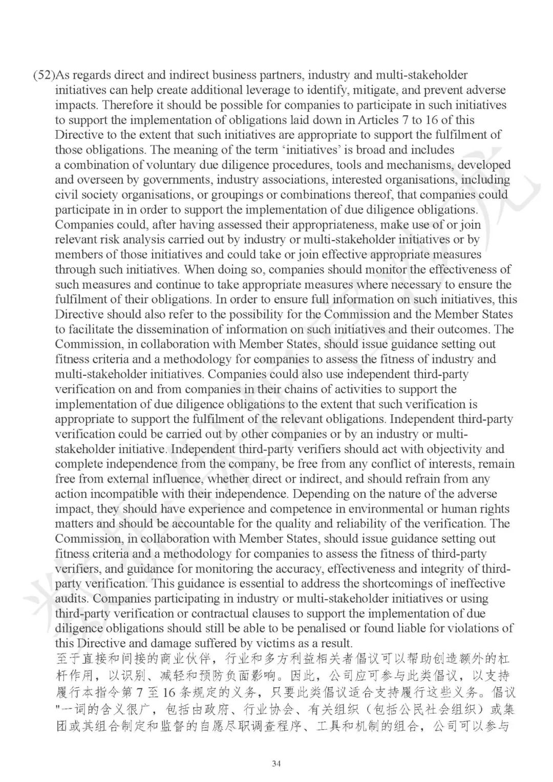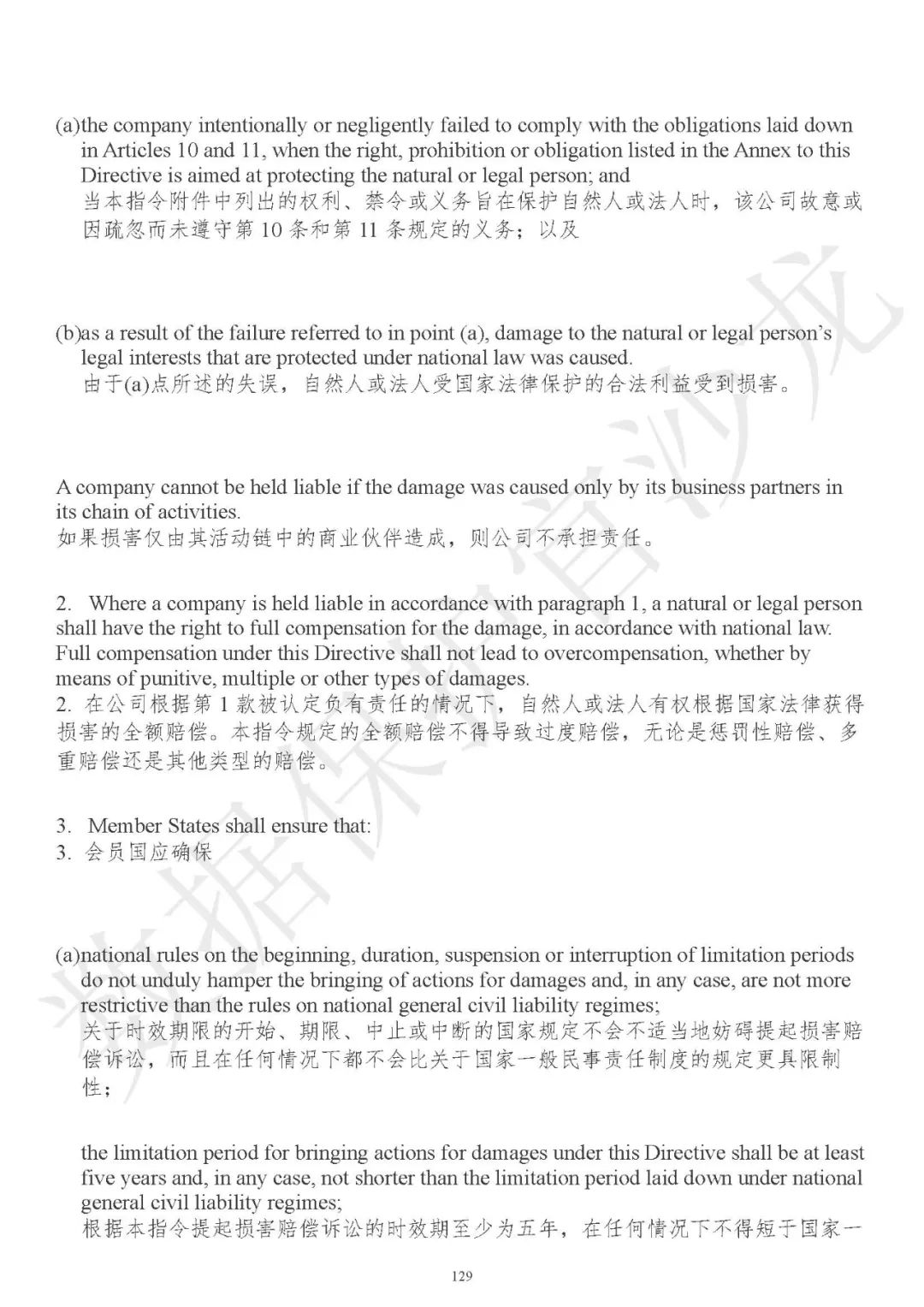 今天和大家分享的是欧盟《企业可持续发展尽职调查指令》生效版本的全文翻译。