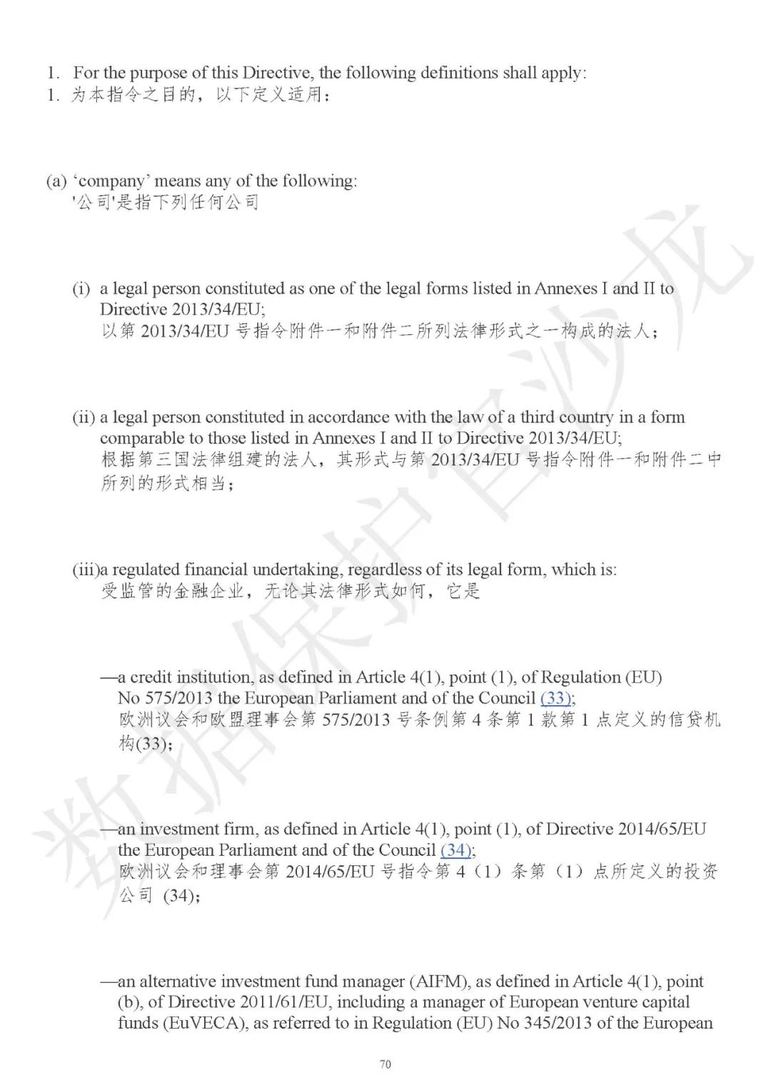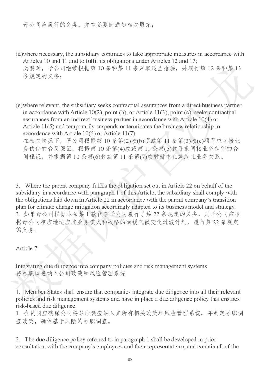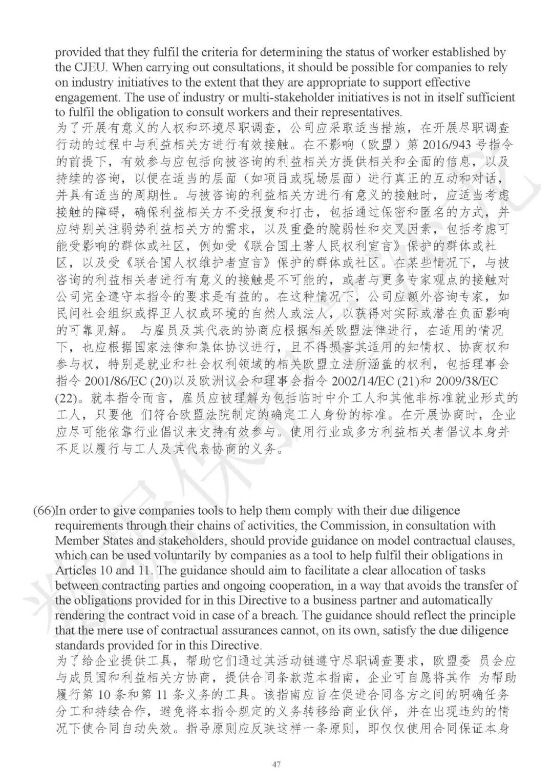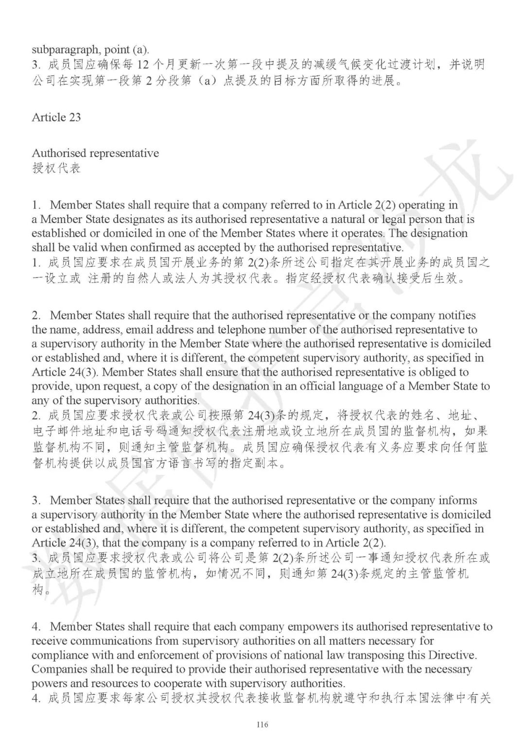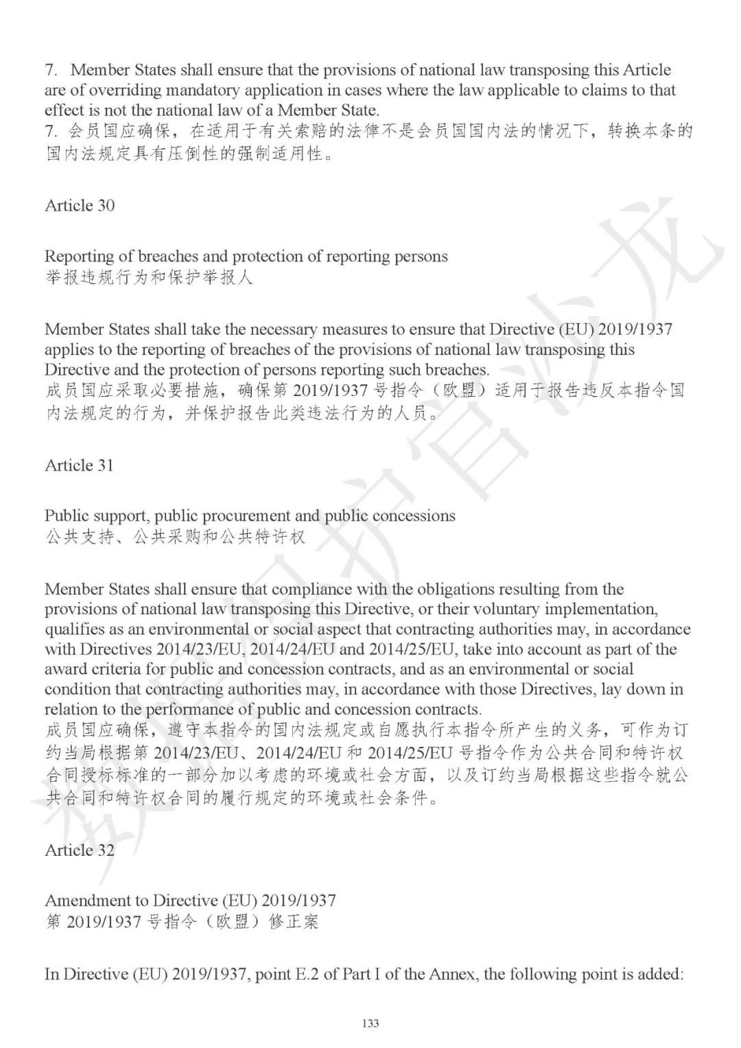 今天和大家分享的是欧盟《企业可持续发展尽职调查指令》生效版本的全文翻译。