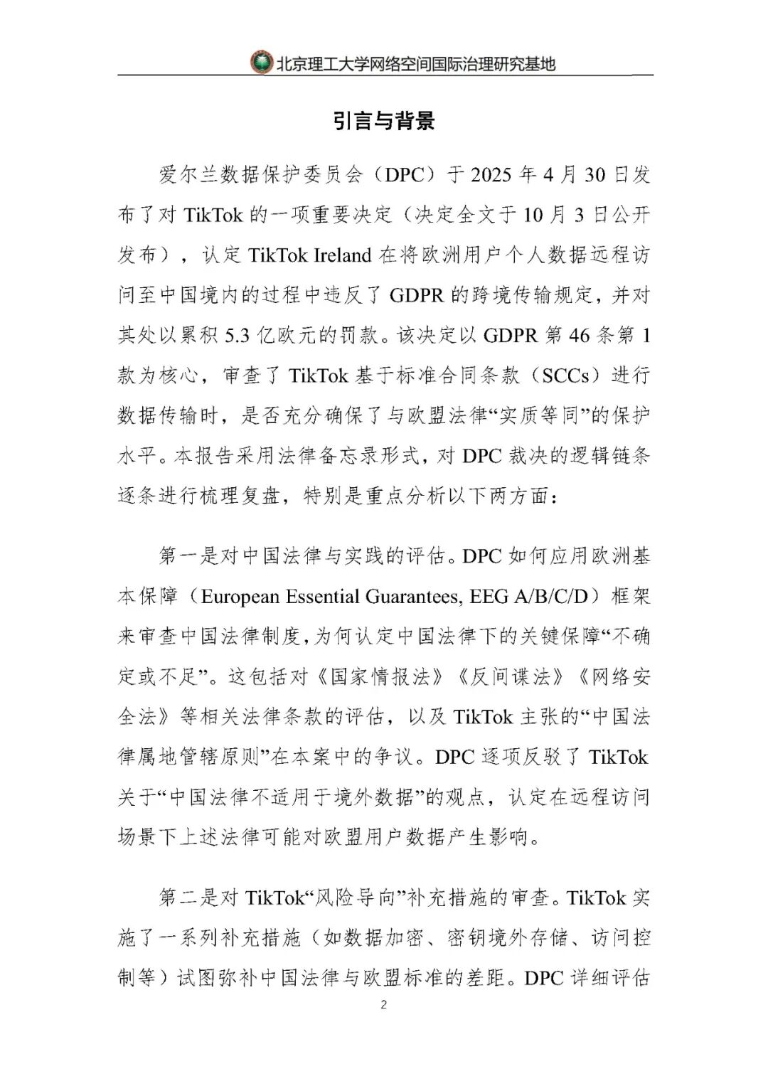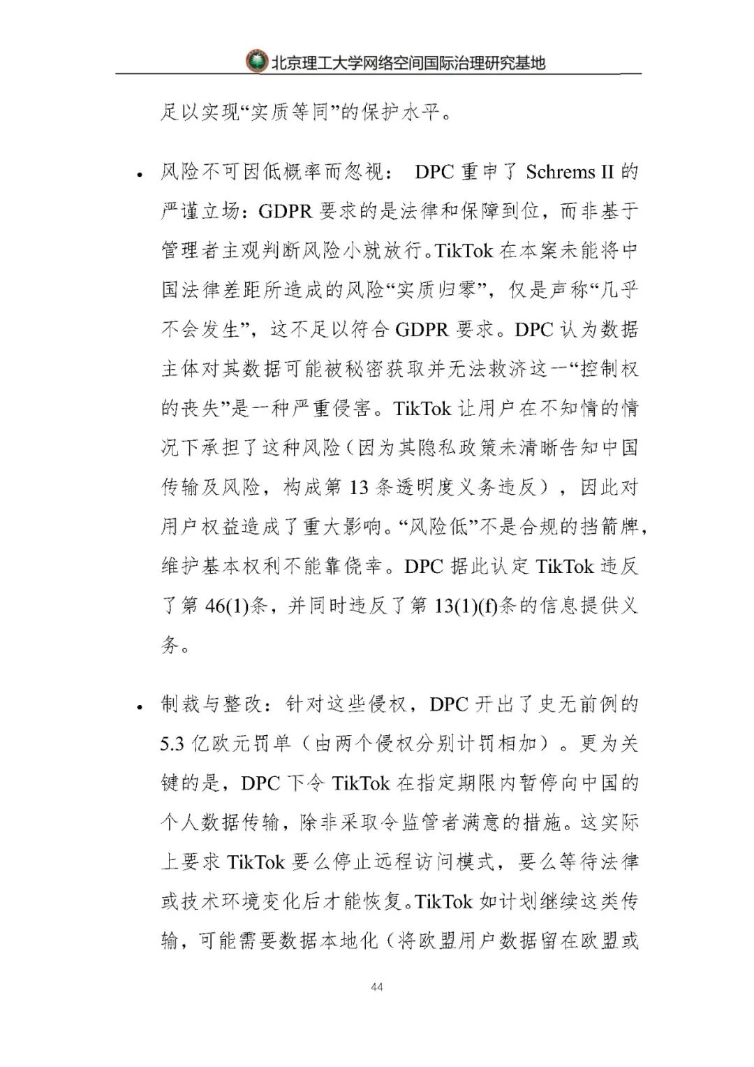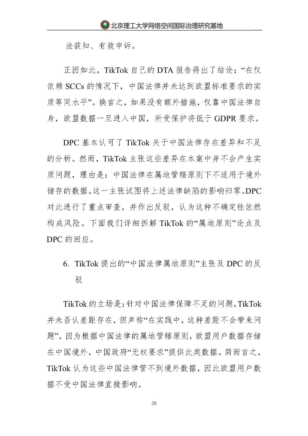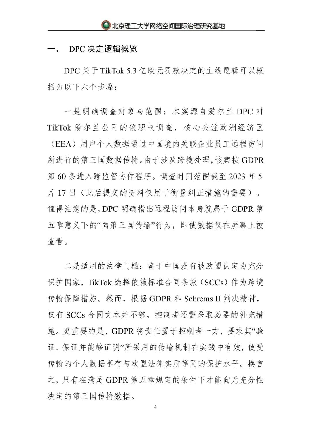 近日,爱尔兰数据保护委员会(DPC)公布了对TikTok公司("TikTok")将欧洲经济区用户个人数据传输至中华人民共和国违反GDPR的决定全文。在之前的分析【爱尔兰DPC对TT的5.3亿罚单与NOYB投诉分析和应对建议】之后,北理工团队利用国庆假期对该决定做了法律分析复盘。