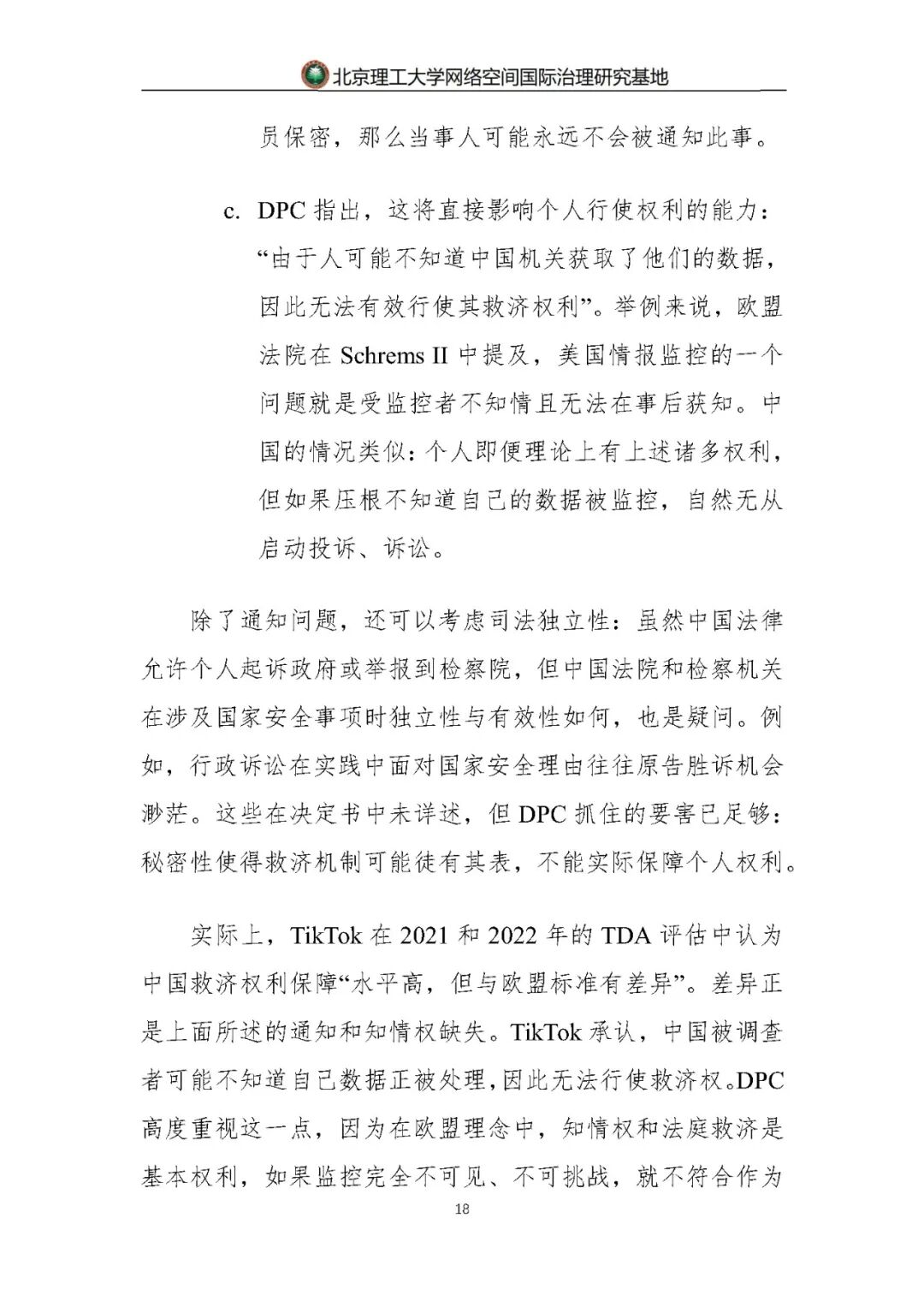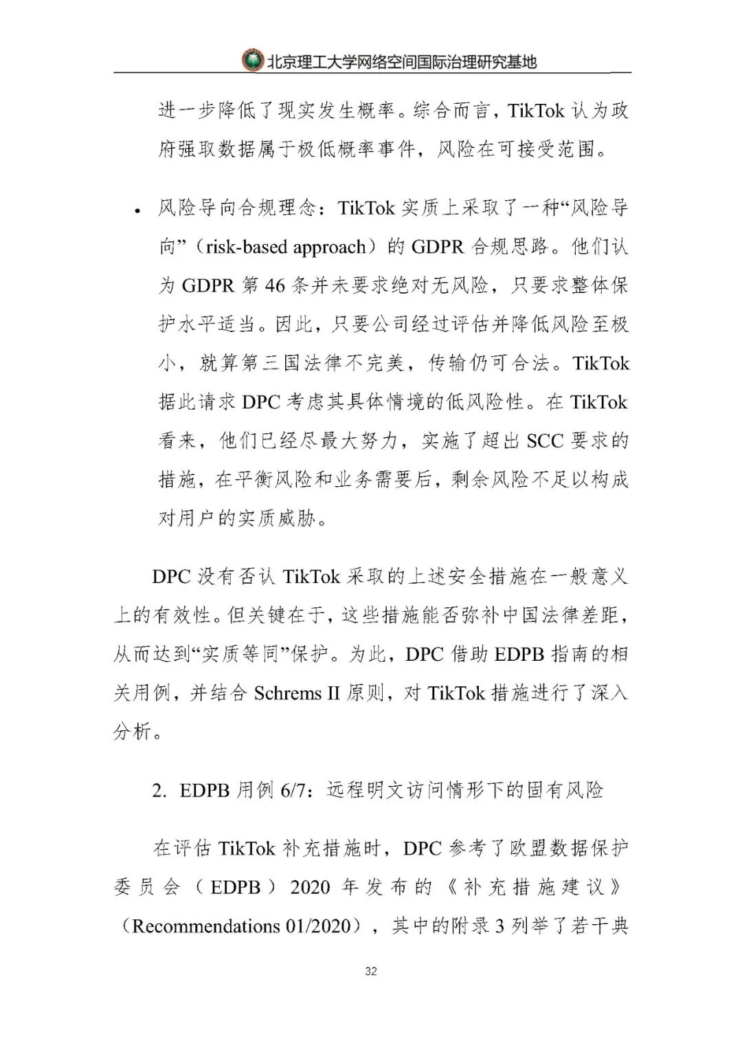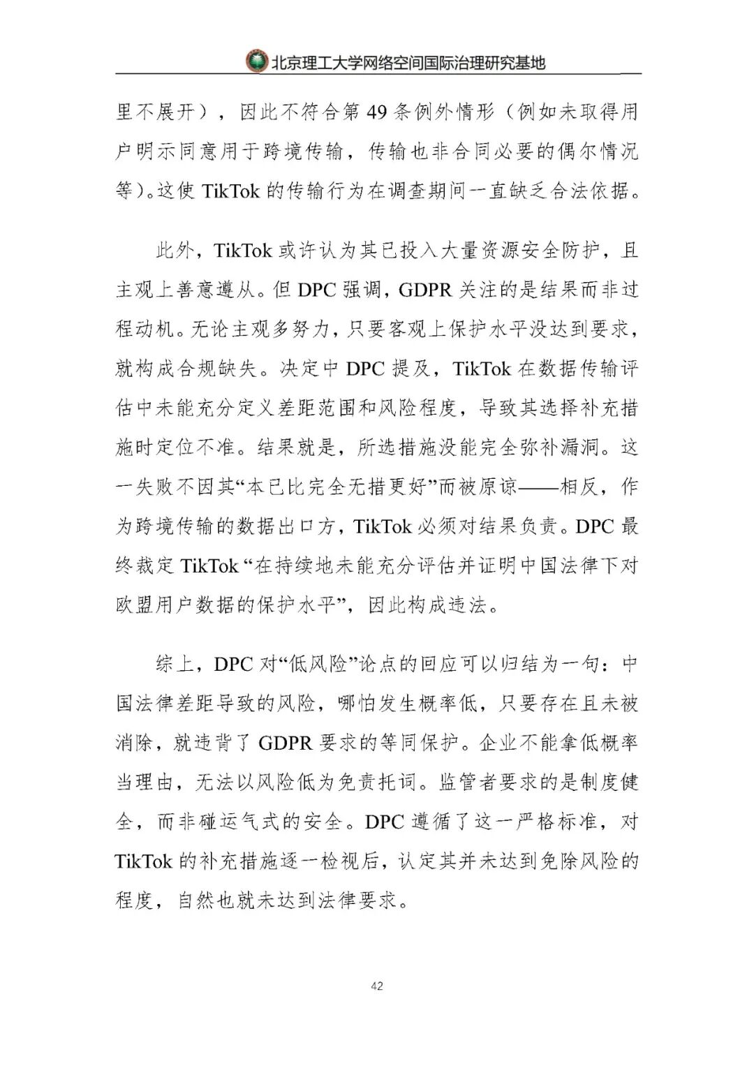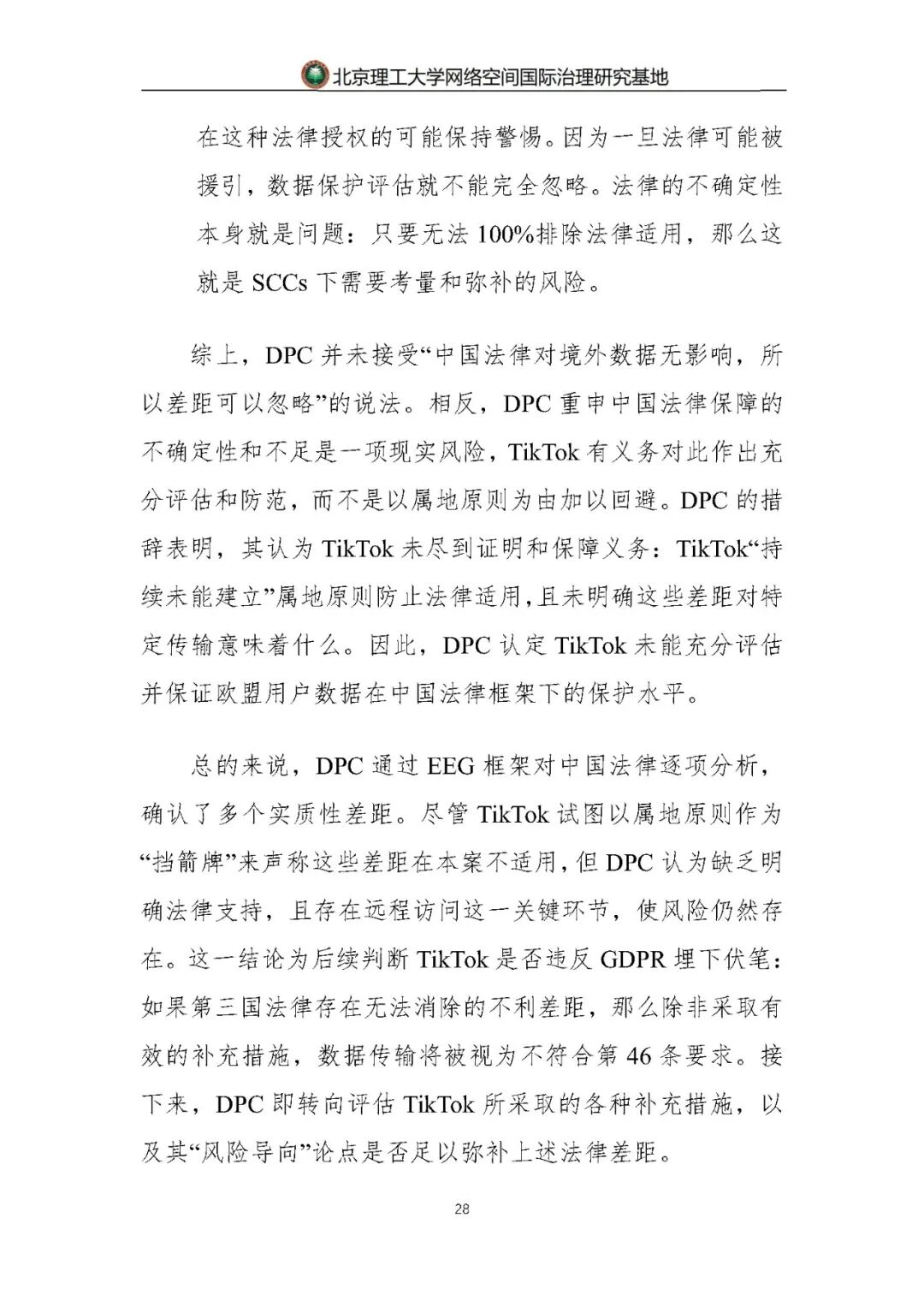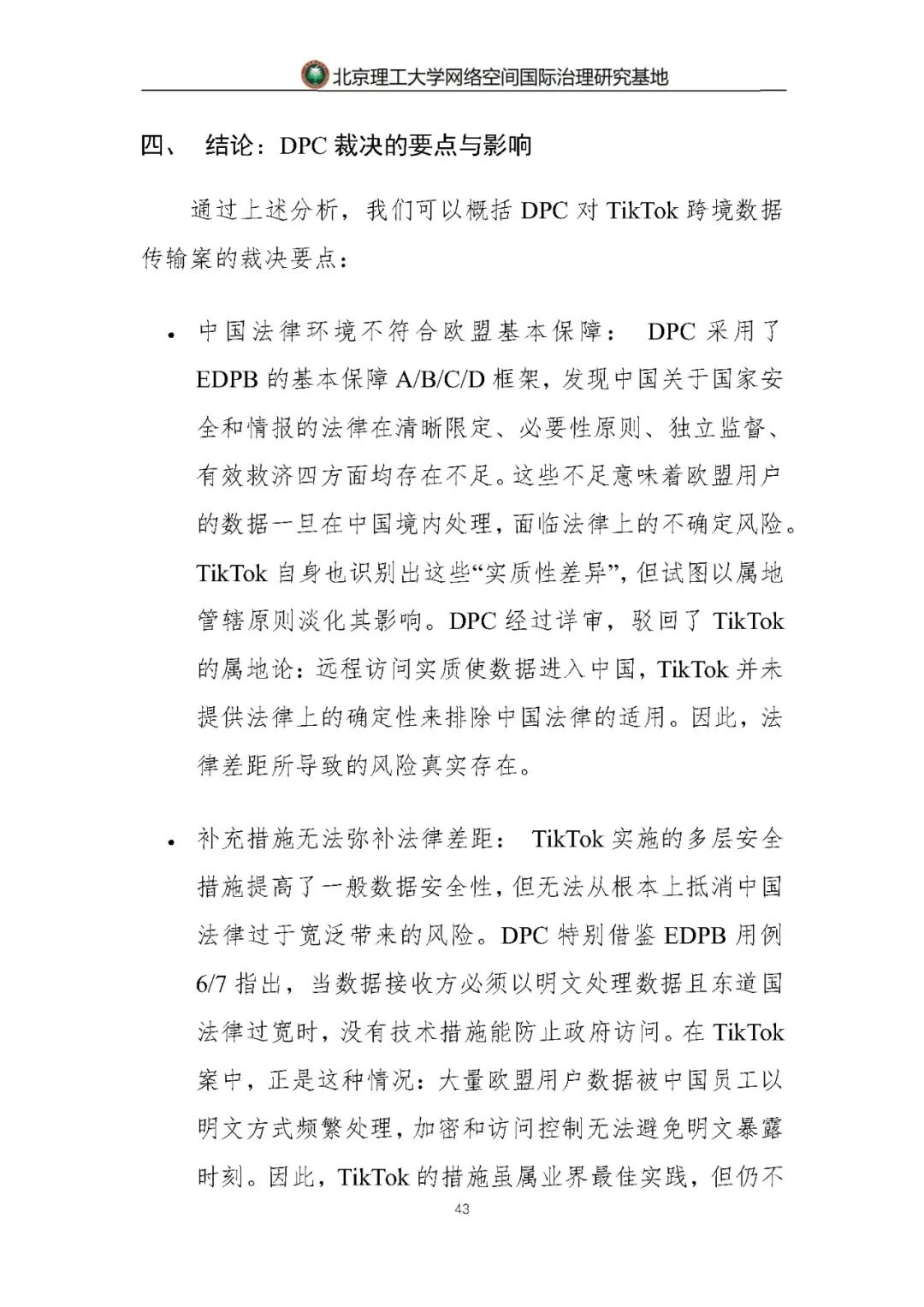 近日,爱尔兰数据保护委员会(DPC)公布了对TikTok公司("TikTok")将欧洲经济区用户个人数据传输至中华人民共和国违反GDPR的决定全文。在之前的分析【爱尔兰DPC对TT的5.3亿罚单与NOYB投诉分析和应对建议】之后,北理工团队利用国庆假期对该决定做了法律分析复盘。
