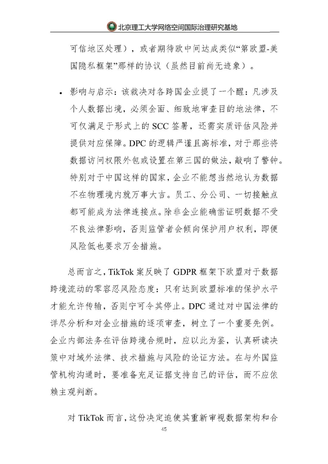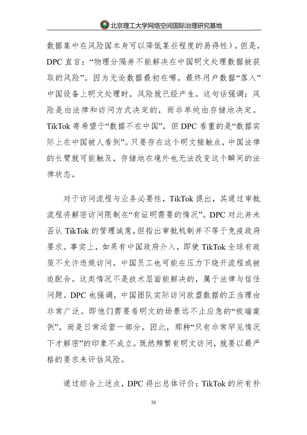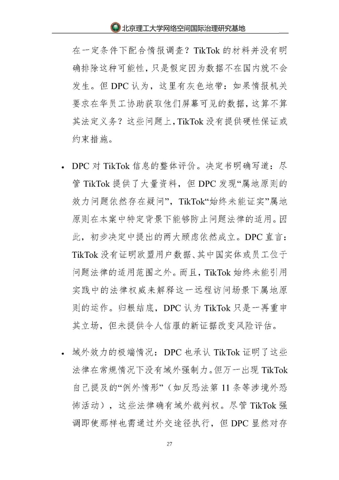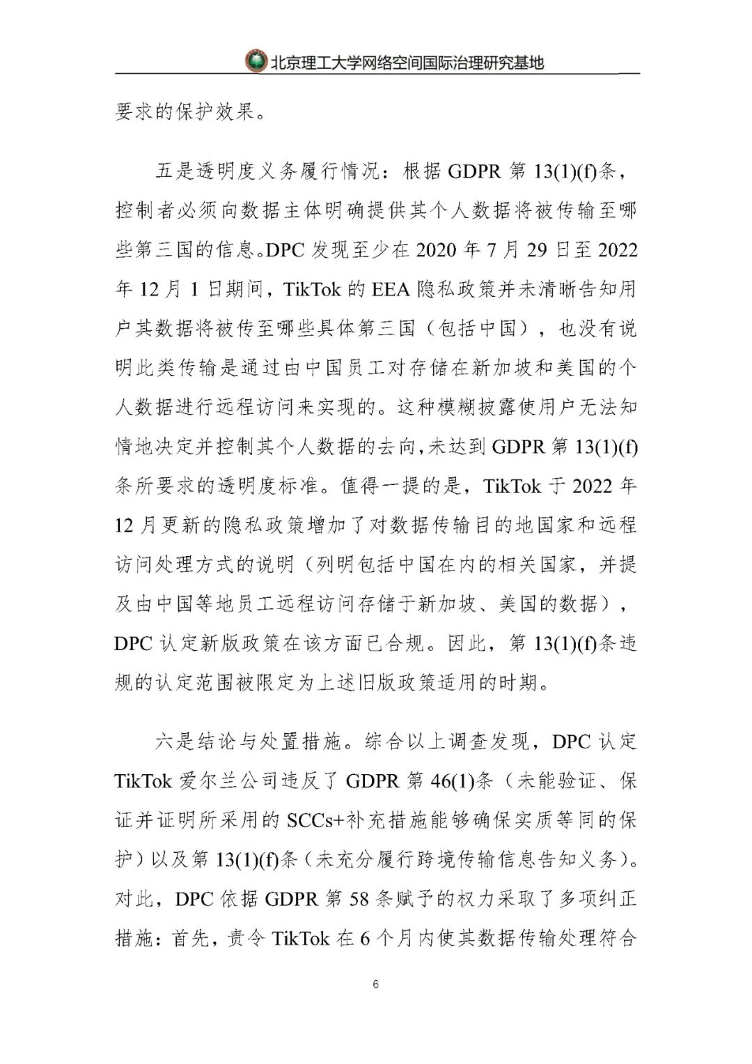近日,爱尔兰数据保护委员会(DPC)公布了对TikTok公司("TikTok")将欧洲经济区用户个人数据传输至中华人民共和国违反GDPR的决定全文。在之前的分析【爱尔兰DPC对TT的5.3亿罚单与NOYB投诉分析和应对建议】之后,北理工团队利用国庆假期对该决定做了法律分析复盘。