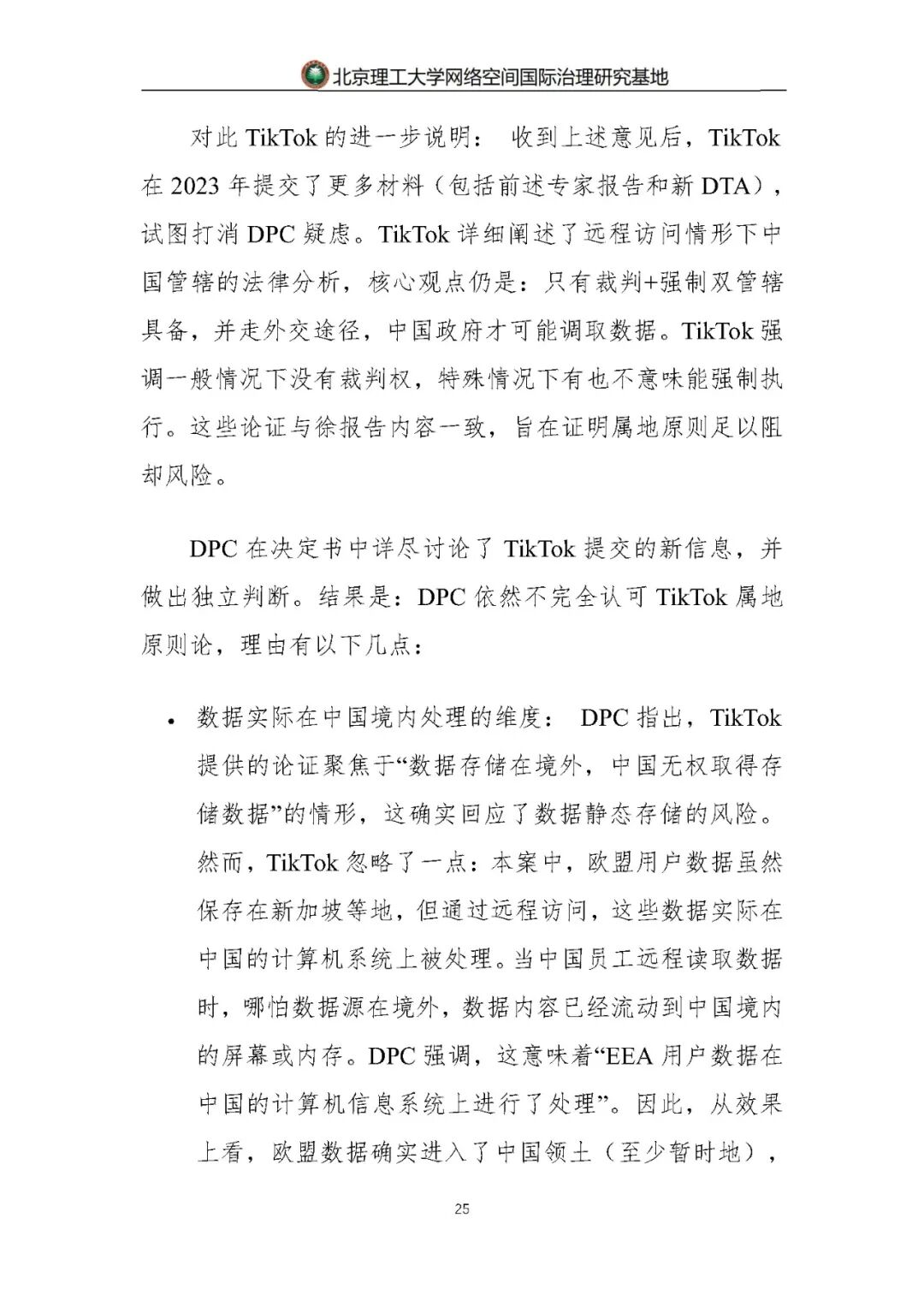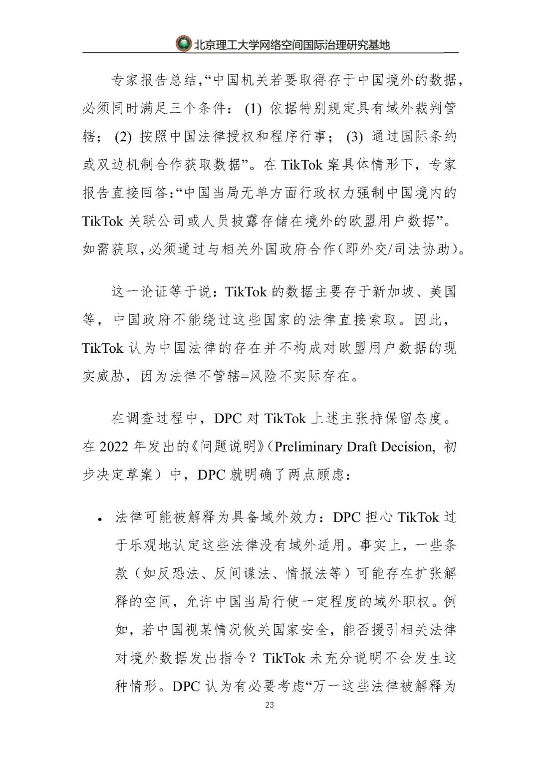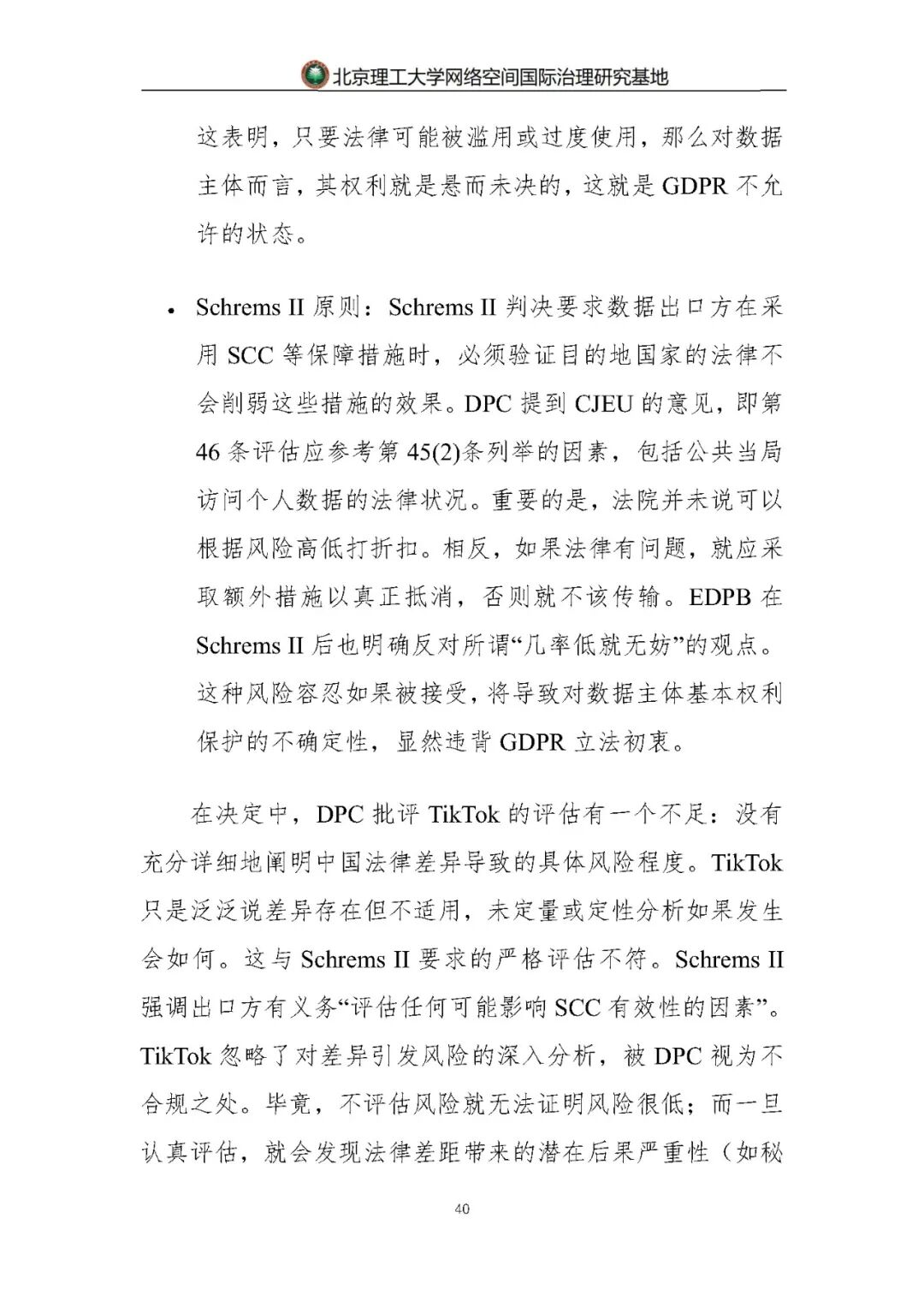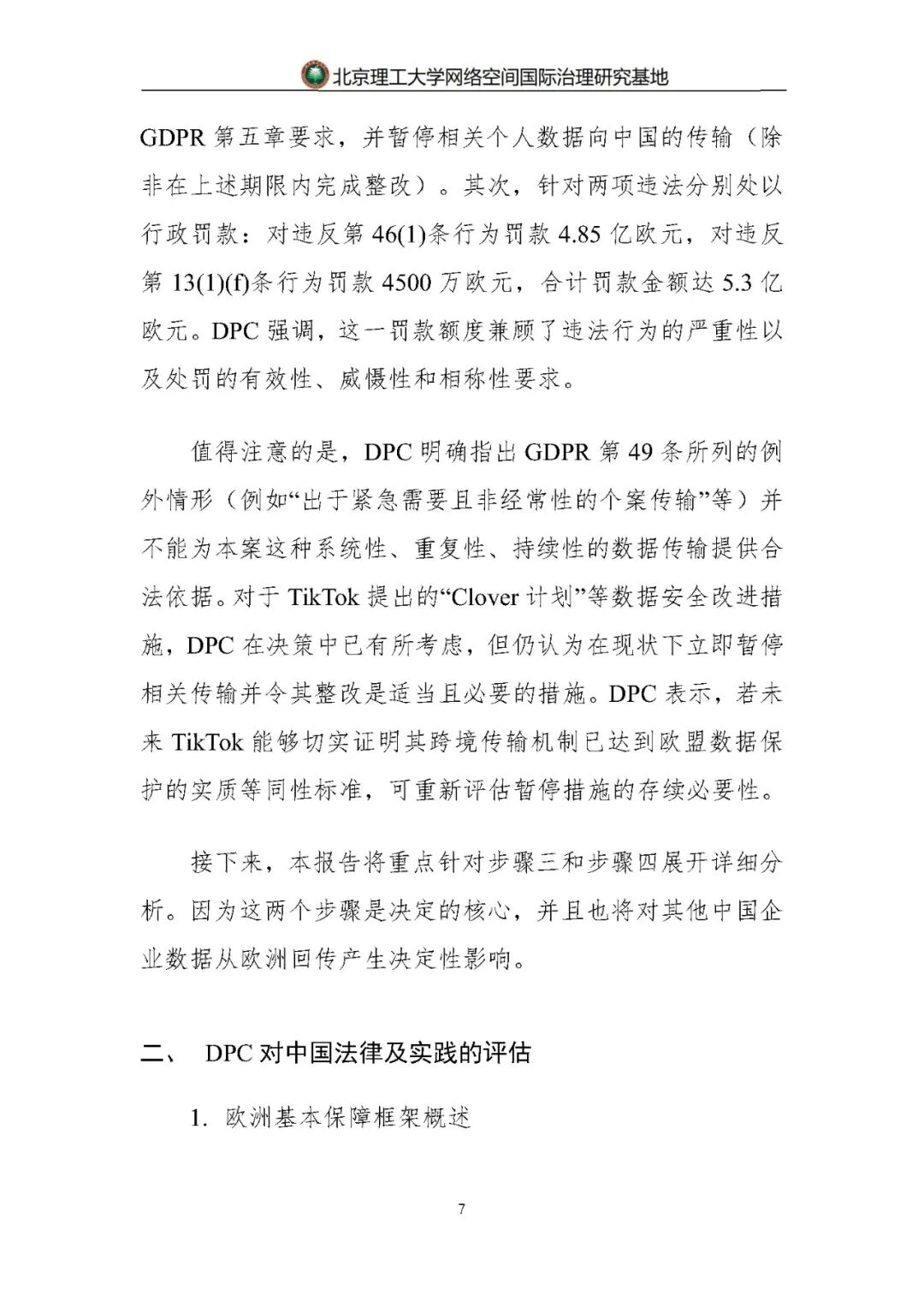 近日,爱尔兰数据保护委员会(DPC)公布了对TikTok公司("TikTok")将欧洲经济区用户个人数据传输至中华人民共和国违反GDPR的决定全文。在之前的分析【爱尔兰DPC对TT的5.3亿罚单与NOYB投诉分析和应对建议】之后,北理工团队利用国庆假期对该决定做了法律分析复盘。
