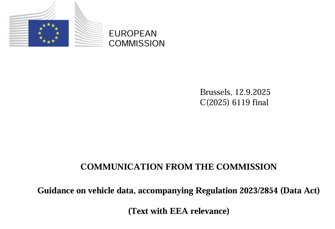 2025年9月12日,欧盟发布《数据法案》车辆数据相关指引,本车辆数据指引为汽车行业利益相关者就如何实施《数据法案》第二章提供了定制化建议。本指引旨在阐释《数据法案》中与本指引第19段所定义的车辆数据相关的关键义务,重点围绕属于《数据法案》第二章适用范围的数据以及适用的数据访问规则展开。本指引仅涉及汽车行业,包括原始设备制造商(OEMs)、供应商、售后市场服务提供商和保险提供商。因此,本指引内容不能自动推及其他行业或公共部门。