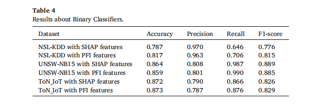 特征融合策略:当单一方法筛选的特征存在偏差时,融合 PFI 和 SHAP 的结果(如取两者交集),进一步提升特征集的稳健性。例如,在 NSL-KDD 中,融合特征使模型 precision 从 0.921 提升至 0.971,减少误报。