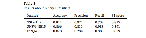 多数据集检测性能:SPIP 框架基于 LSTM 的二元分类器在三个数据集上均表现出稳定的检测能力,准确率、Precision、Recall 及 F1-score 指标整体优于传统方法,且在复杂攻击场景中适应性更强,相关指标数据如下图所示: