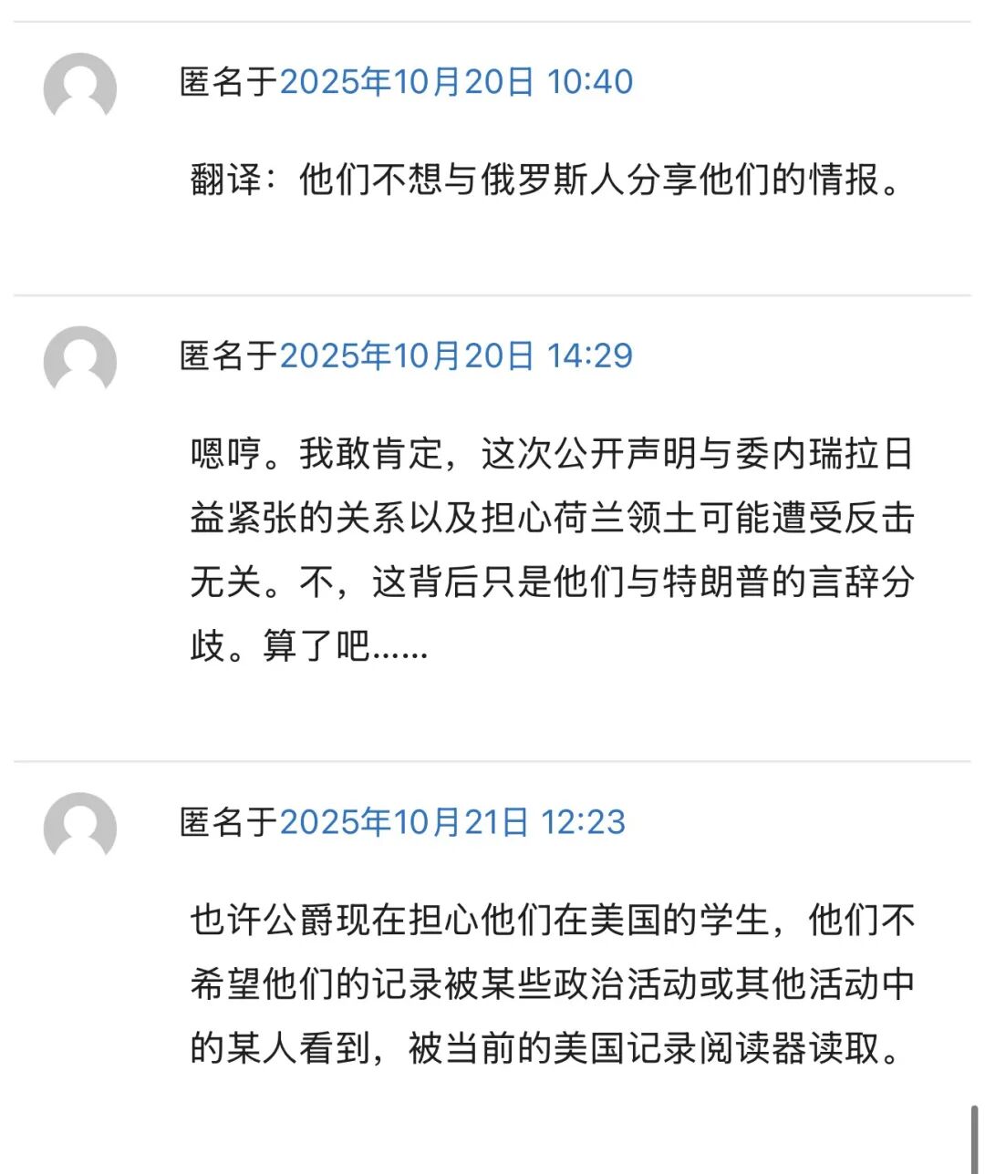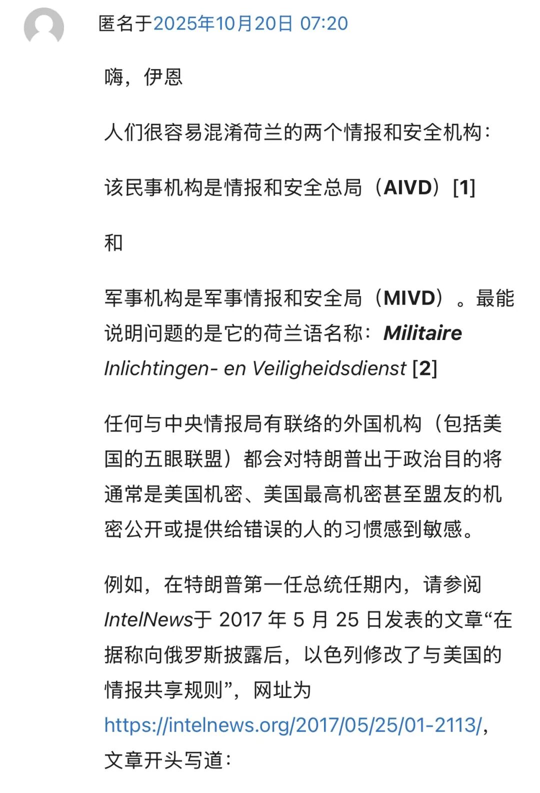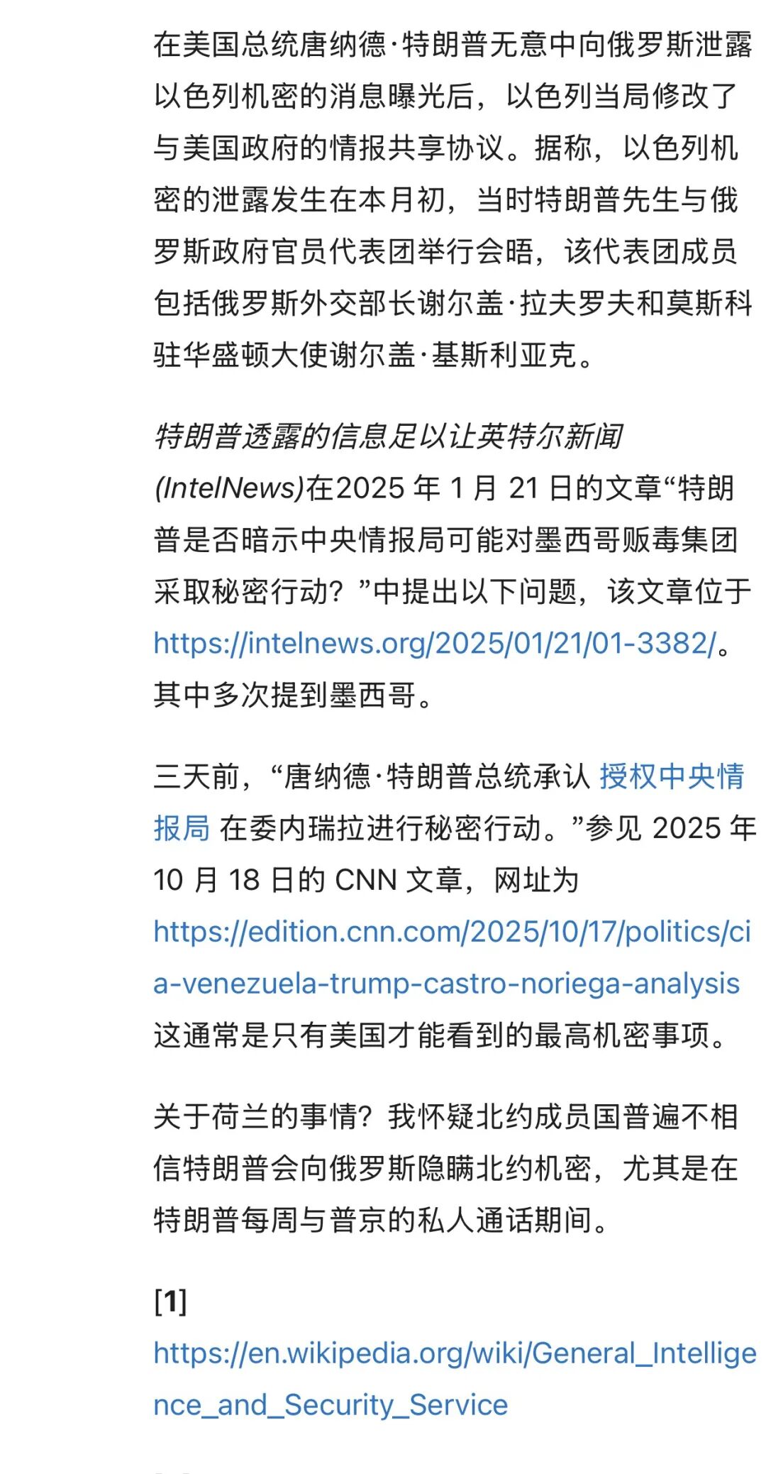 两位负责人均强调,荷兰与美国情报组织间的机构关系依然“良好”,但同时表示,荷兰在选择与美国情报机构(特别是中央情报局 CIA 和国家安全局 NSA)共享信息时变得更加谨慎。