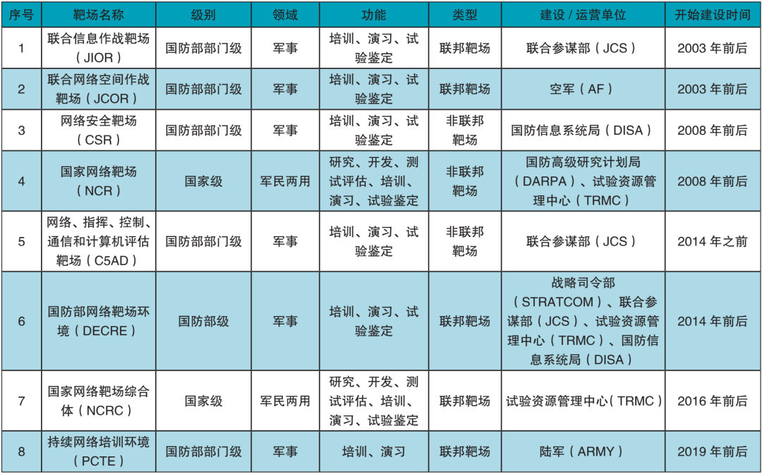 表 美国主要网络靶场概况