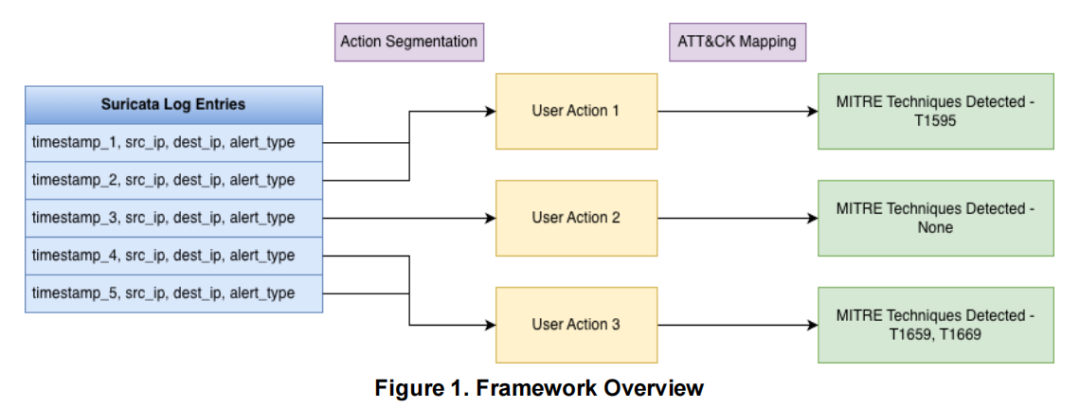 - 提出了一种基于LLM的IDS日志行为分段与高层策略自动推断框架,实现从原始网络流量到MITRE ATT&CK技术的端到端推理。