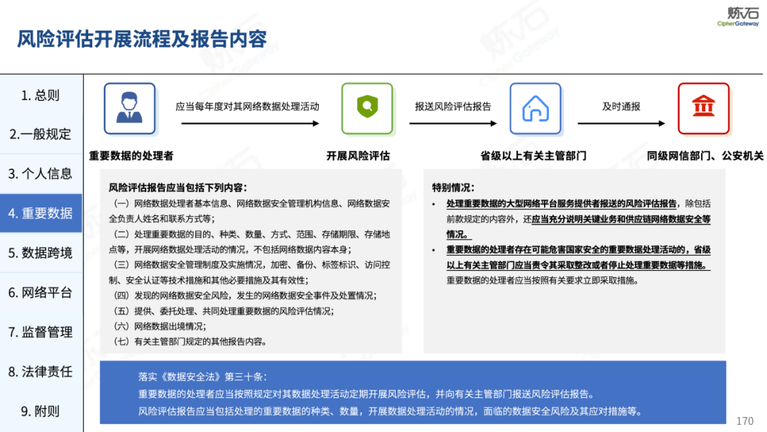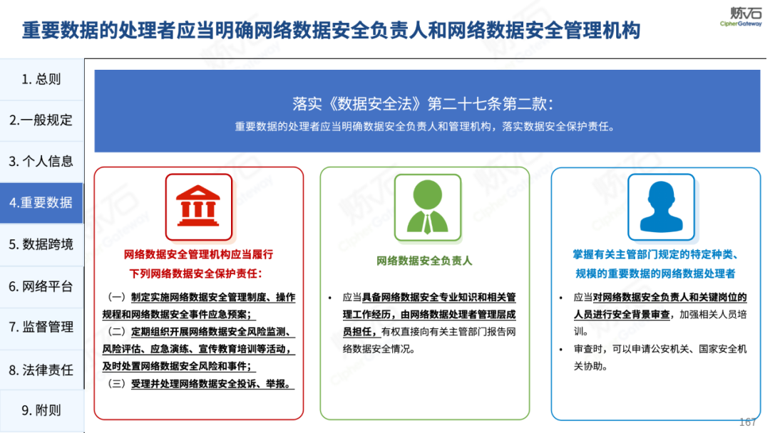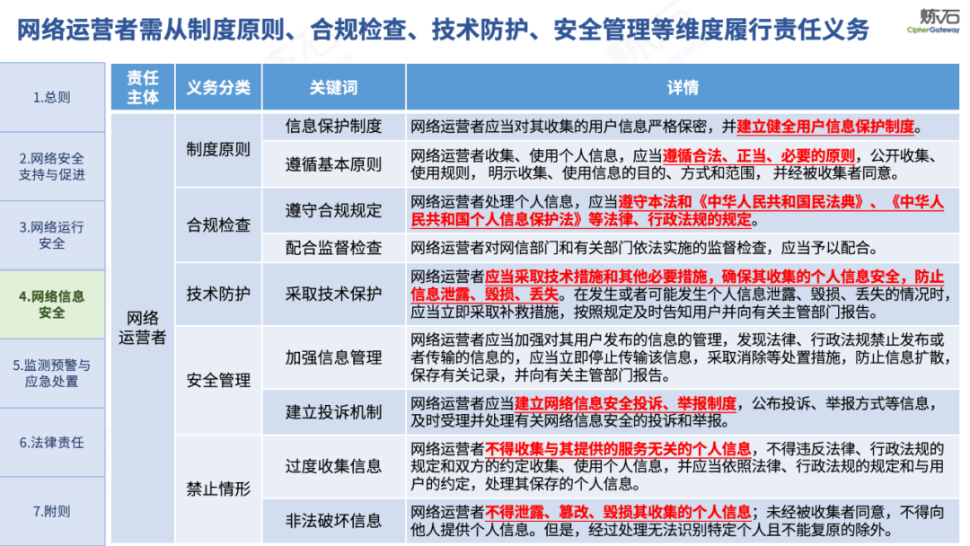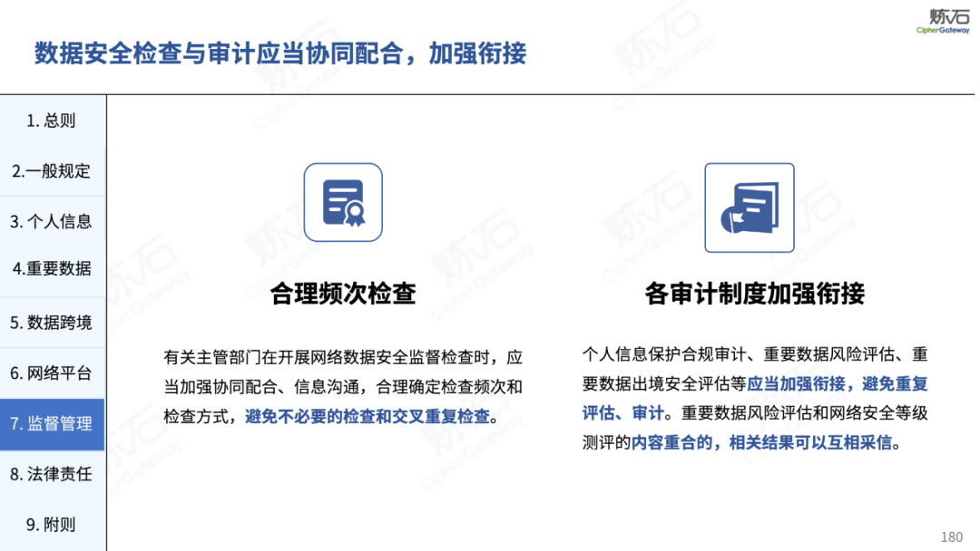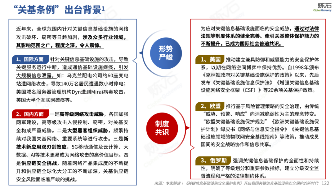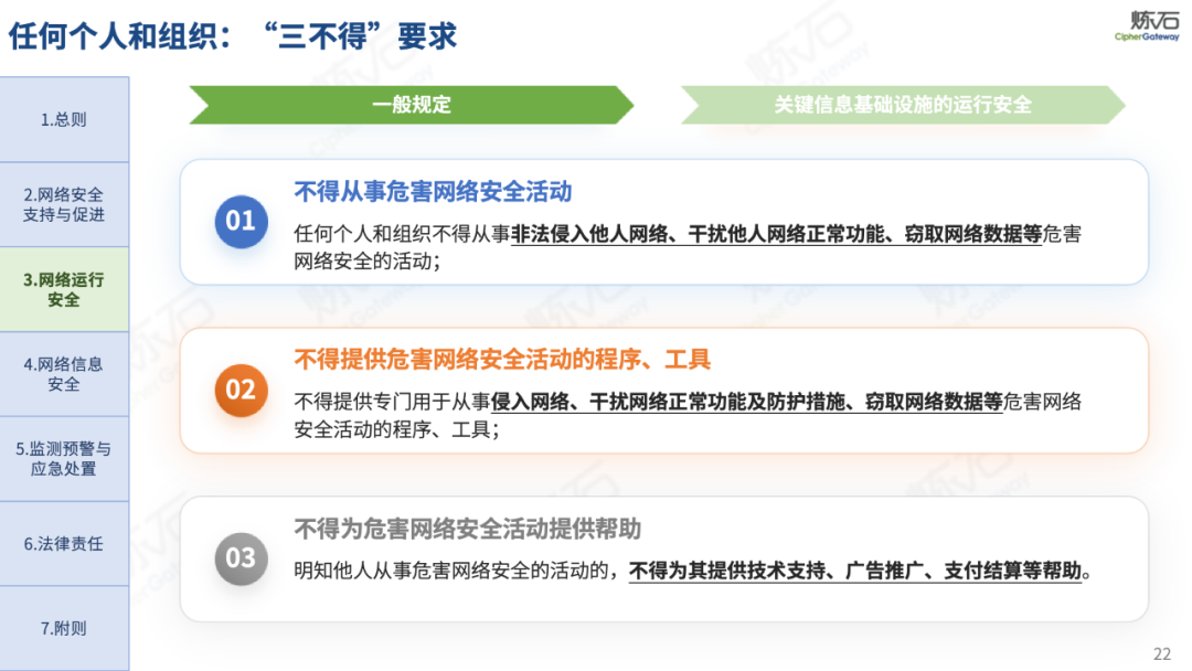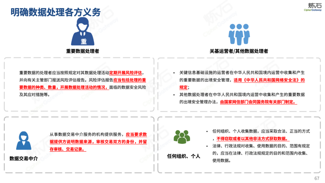 炼石通过幻灯片图解形式,对《网络安全法》的新法框架、修订重点与合规要求进行了系统梳理,并进一步图解了“三法三条例”,即《密码法》《数据安全法》《个人信息保护法》《关键信息基础设施安全保护条例》《商用密码管理条例》《网络数据安全管理条例》。旨在帮助读者更好地理解相关法规的主要内容,为网络和数据安全合规及实战建设提供参考。由于作者水平有限,欢迎业界同仁共同探讨完善。