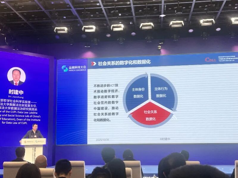 10月30日,由北京金融法院承办的2025金融科技大会金融科技法治平行论坛举办,中国政法大学数据法治实验室主任、数据法治研究院院长时建中以《数字金融创新与新型困境风险》为题发表主旨演讲。