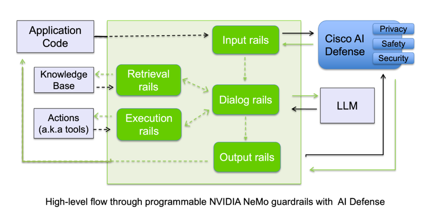 以下内容摘自思科网站(https://blogs.cisco.com/ai/cisco-ai-defense-integrates-with-nvidia-nemo-guardrails)