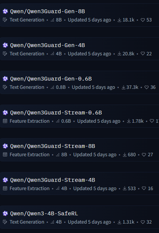 BERT的问题很难从根本上解决,只能另寻新路。作为一个非常重要的发展领域,很多模型厂商都在投入,于是出现了一些Guard模型(架构上是GPT模型),包括llama guard,wild guard等。阿里也发布了Qwen3Guard的模型,包含多个尺寸,还有一个流模型的支持: