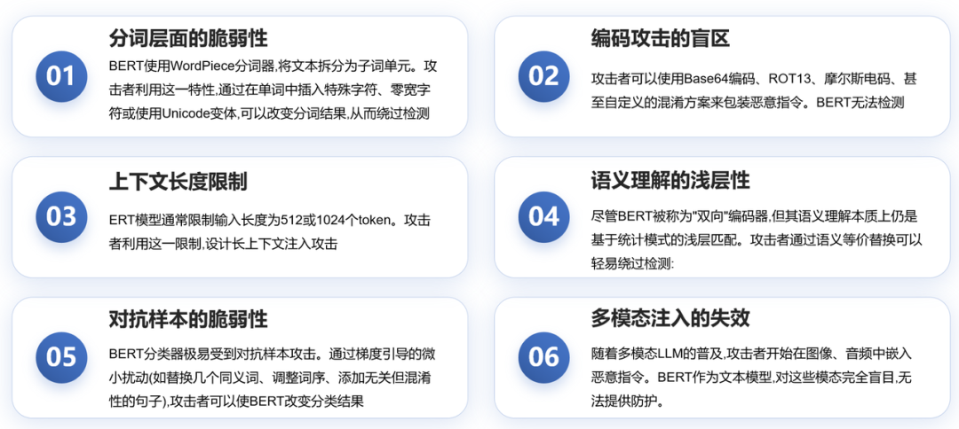 但BERT模型的问题也非常多,简单地说,容易被绕过,不支持多模态,只分类不解释,以下是一些问题的总结: