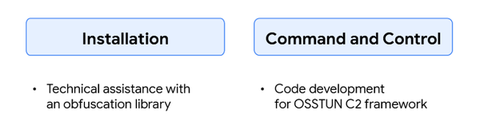 为了支持他们的活动,该组织寻求C++和Golang代码方面的技术支持,用于开发多个工具,其中包括该组织开发的名为OSSTUN的C2框架。此外,该组织还被发现向Gemini寻求代码混淆方面的帮助,并提及了两个公开可用的代码混淆库。
