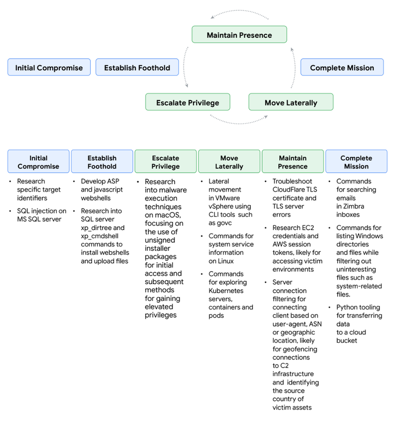 图 8:UNC4899(又名 PUKCHONG)在整个攻击生命周期中对 Gemini 的滥用