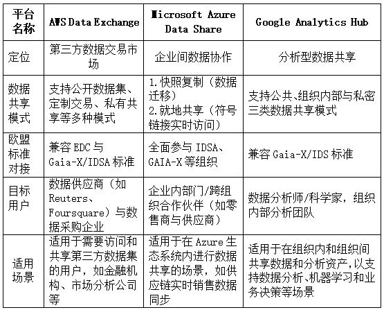 AWS Data Exchange聚焦商业化数据流通,构建完整的数据交易生态,支持第三方供应商销售标准化数据产品。Microsoft Azure Data Share专注于Azure生态内的数据复制与共享,适用于需要共享数据进行精细管理和控制的企业。Google Analytics Hub则强调分析型数据共享,可为内部分析团队提供低门槛的模型共享能力。