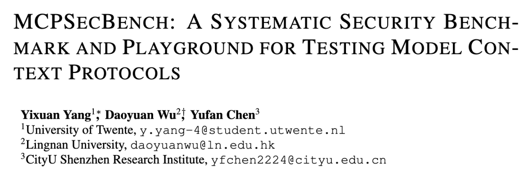 原文标题:MCPSecBench: A Systematic Security Benchmark and Playground for Testing Model Context Protocols