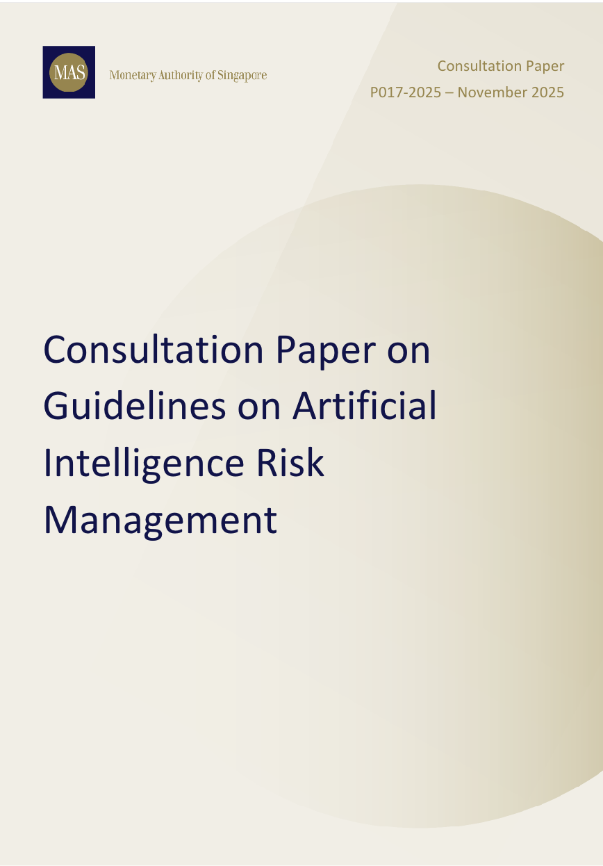 2025 年 11 月 13 日,新加坡金融管理局(MAS)宣布就面向金融机构的人工智能(AI)风险管理拟议指南展开公开咨询。这份咨询文件阐明了 MAS 对负责任使用 AI 的监管预期,内容涵盖治理架构、监督机制、AI 风险管理系统及全生命周期管控措施。