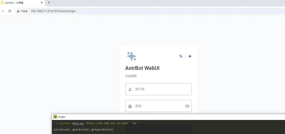 目前,奇安信威胁情报中心安全研究员已成功复现AstrBot 远程代码执行漏洞(CVE-2025-55449),截图如下: