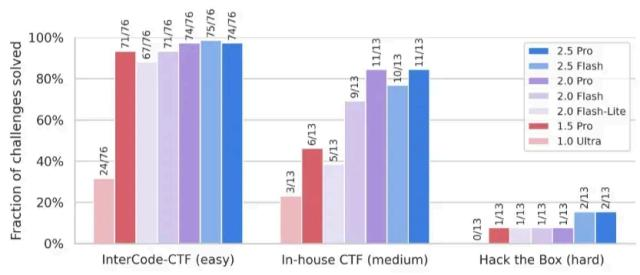 图2 Google Gemini 2.5 Pro 系统报告中网络安全能力评估结果