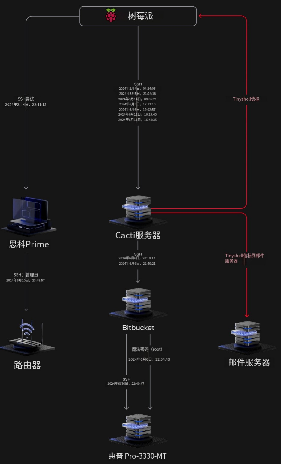 这台树莓派自2024年2月4日首次上线至7月被发现,持续稳定运行超过150天,期间银行经历了多次安全加固和补丁投放,却始终未能检测到这台“藏在柜子里的敌人”。