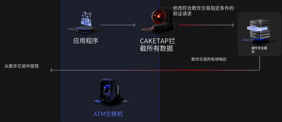 - ATM 服务器构造交易请求报文 → 进入内核网络栈 → 被 CAKETAP 的 Netfilter 钩子捕获