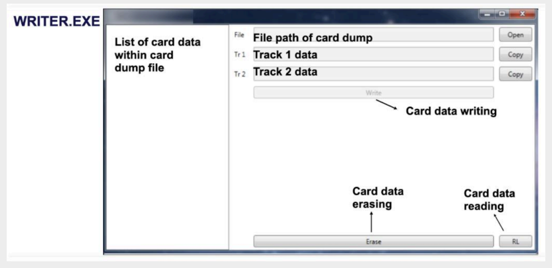 - 克隆卡制作团伙事先从妥协的主机(通常是 ATM 交换服务器或数据库节点)导出磁道数据(Track1/Track2)及对应卡号、到期日、CVV。使用 MSR606/MSRX6 等磁卡读写器批量写入空白磁条卡。芯片卡情况下,同时写入从 WINGHOOK/SLAPSTICK 窃取的完整芯片数据(包括用于生成 ARQC 的会话密钥)。每名骡子携带的卡包通常包含 80-200 张不同 BIN 段的卡,用于连续试错。