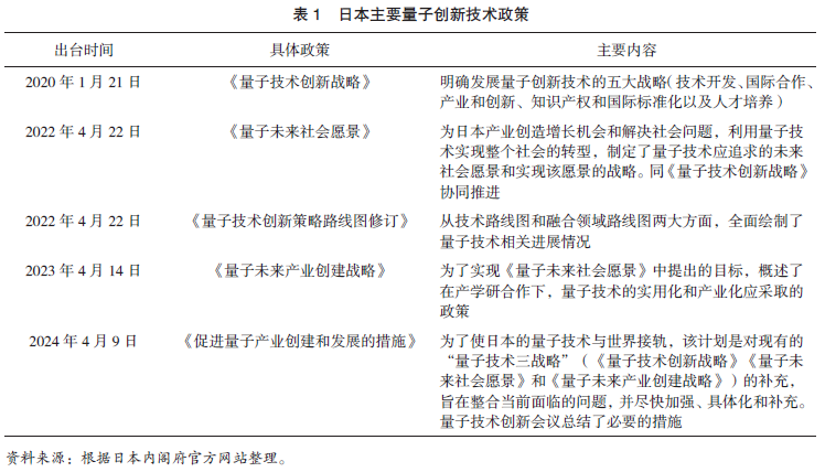 2020年1月,日本综合创新战略推进会议正式发布《量子技术创新战略》,明确发展量子创新技术的五大战略,并在全国范围内开展综合性、战略性举措的计划。此后,日本政府通过多层次政策框架持续推进量子技术创新布局,旨在加速量子技术的研发与应用,如表1所示。