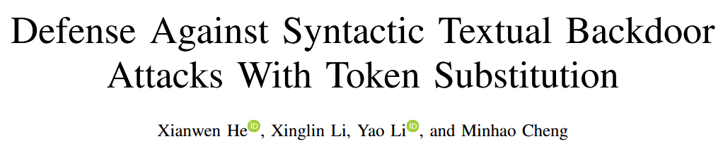原文标题:Defense Against Syntactic Textual Backdoor Attacks With Token Substitution