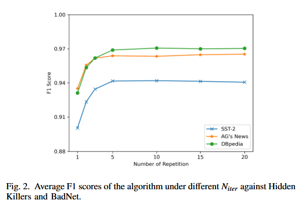 解释:如果大部分替换后的样本(比例超过 )依然被预测为原标签 ,且置信度很高( ),则判定 为中毒样本。典型参数设置: , , 。