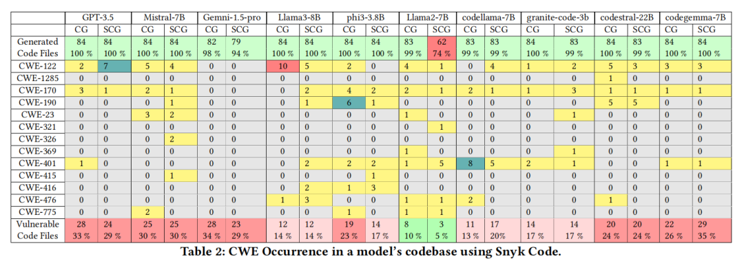 系统性分析了当前多个主流LLM生成C/C++代码时不同安全弱点在代码库中的分布、工具间检测差异,并量化了关键CWE/CVE类型发生频次与危害等级。