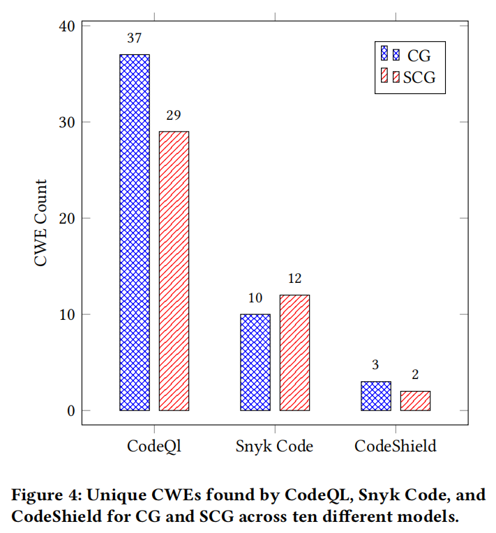 提出了系统化的实验流程和评测框架:以MITRE CWE为Prompt生成基线,结合CodeQL、Snyk Code和CodeShield三类静态安全分析工具,进行跨工具多维漏洞检测与结果归因。