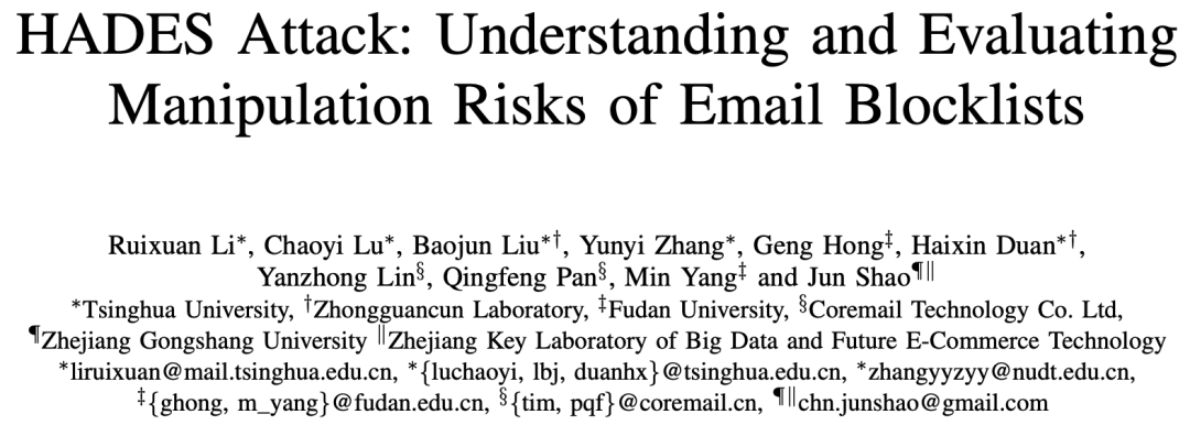 原文标题:HADES Attack: Understanding and Evaluating Manipulation Risks of Email Blocklists