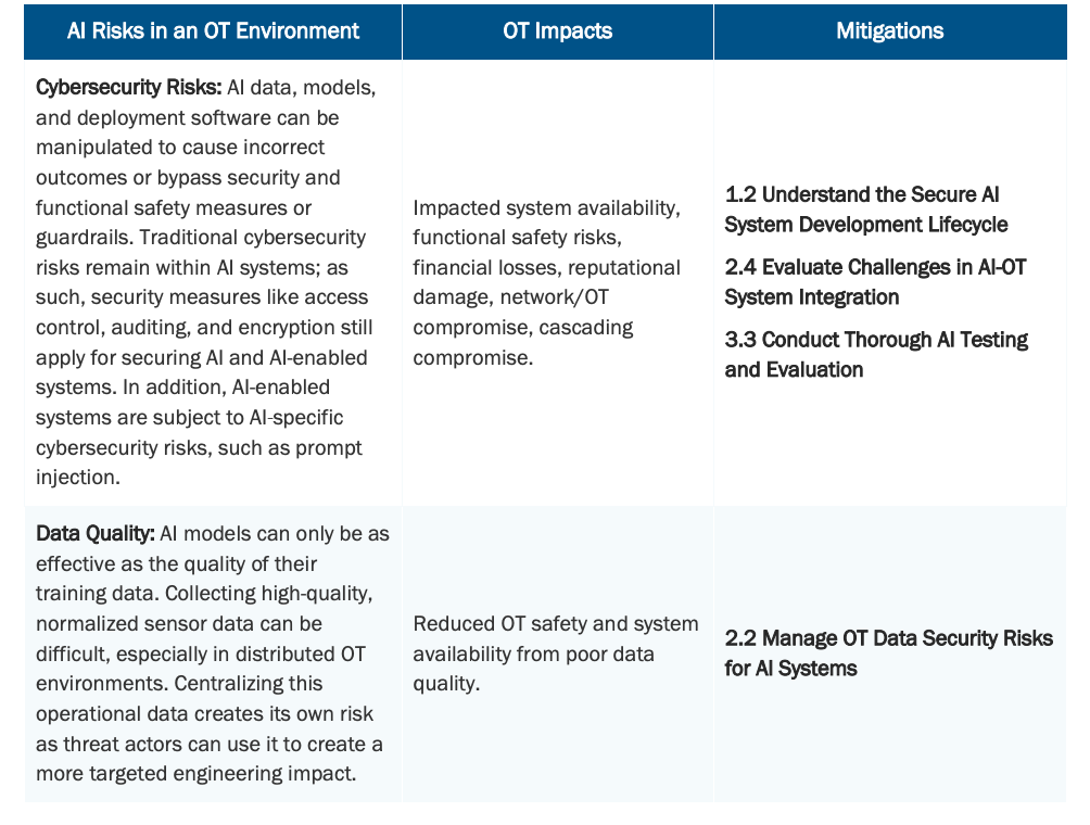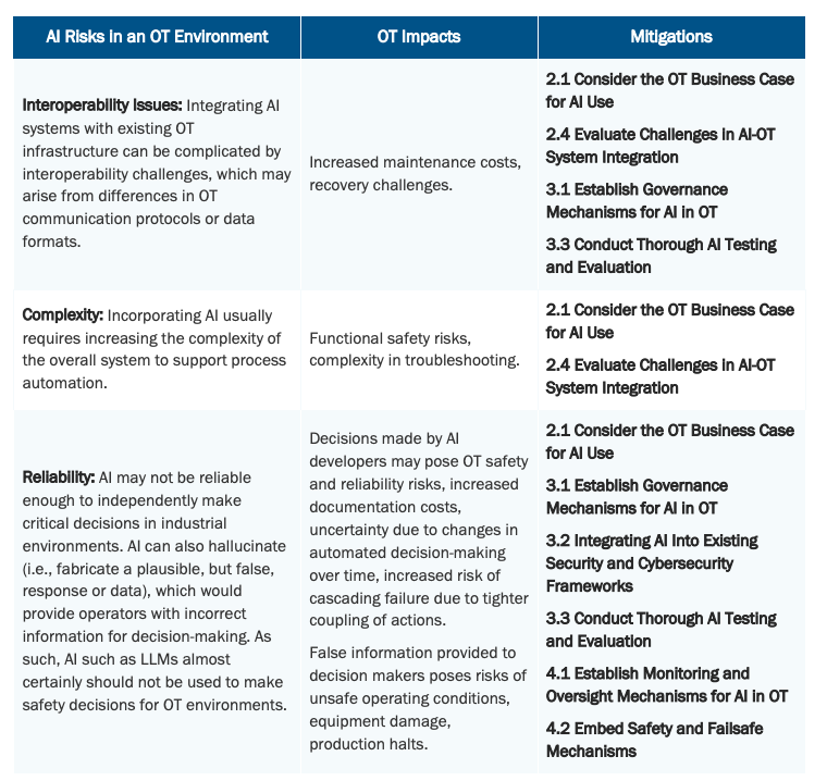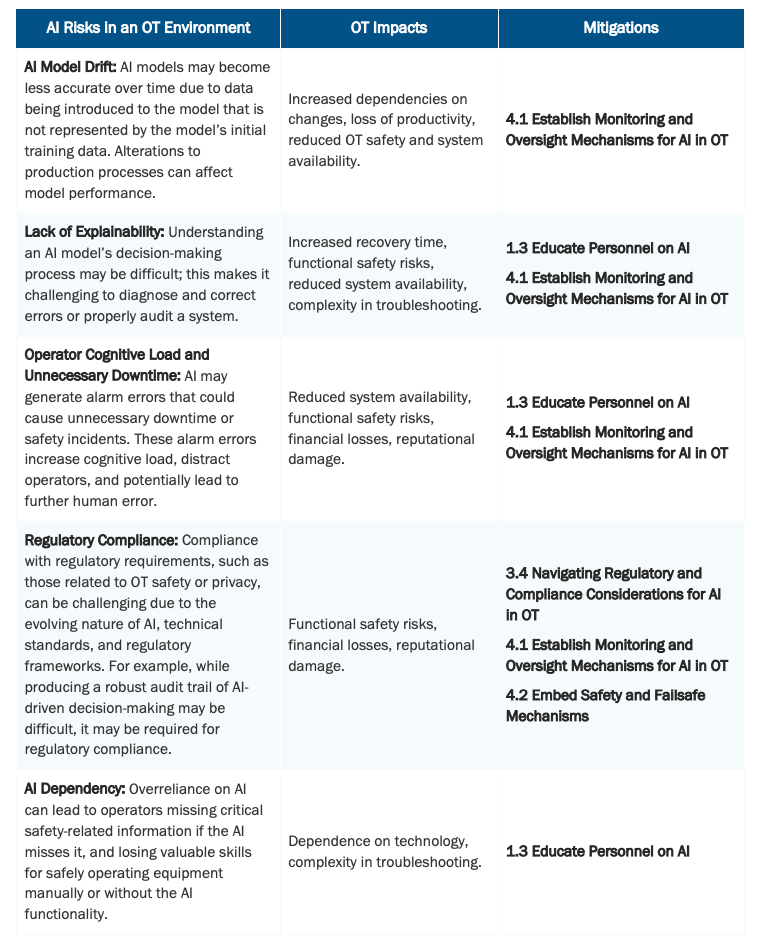 表2. OT环境中的AI风险与影响