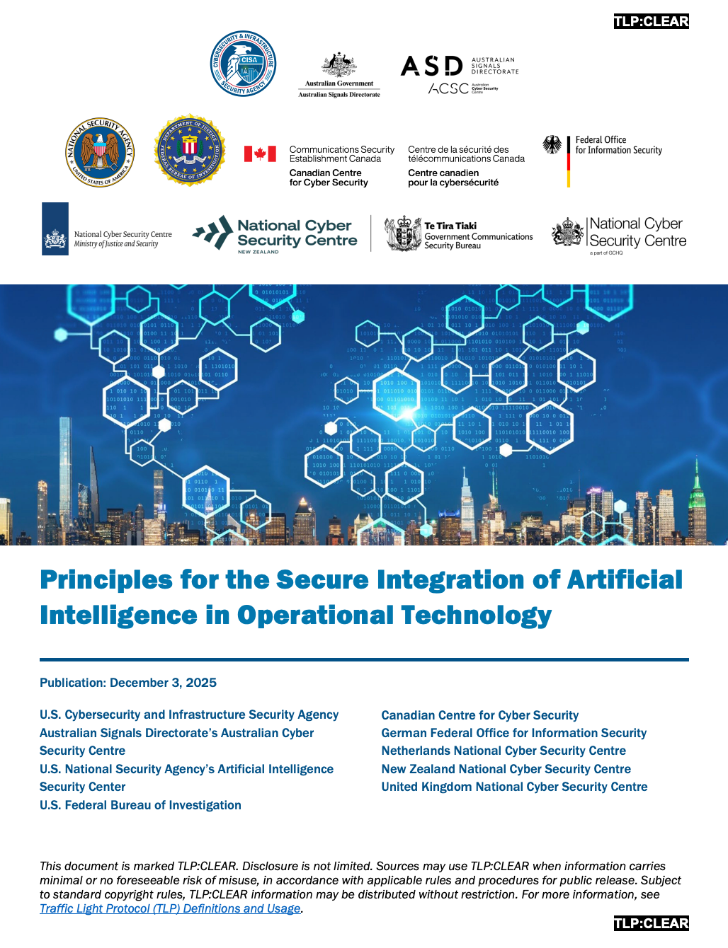 近日,由美国网络安全与基础设施安全局(CISA)与澳大利亚信号局下属的澳大利亚网络安全中心(ASD"s ACSC)联合编写,并协同美国国家安全局人工智能安全中心(NSA AISC)、联邦调查局(FBI)、加拿大网络安全中心(Cyber Centre)、 德国联邦信息安全办公室(BSI)、荷兰国家网络安全中心(NCSC-NL)、新西兰国家网络安全中心(NCSC-NZ)及英国国家网络安全中心(NCSC-UK)共同制定,下称“起草机构”。指南为关键基础设施所有者和运营者提供将人工智能融入运营技术环境的实用信息。