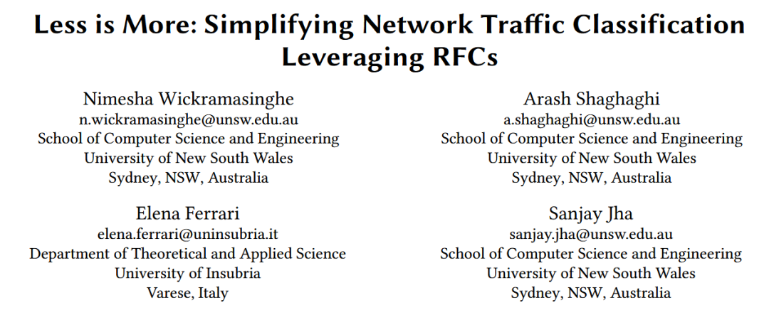 原文标题:Less is More: Simplifying Network Traffic Classification Leveraging RFCs